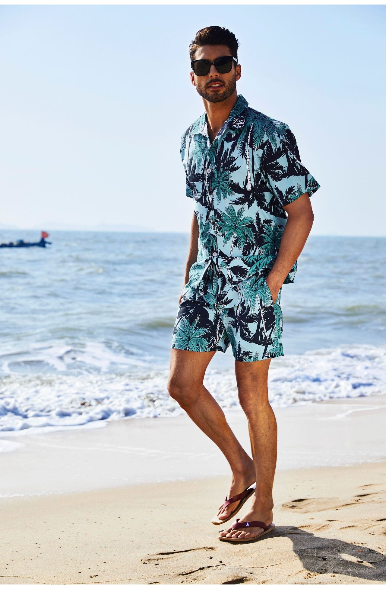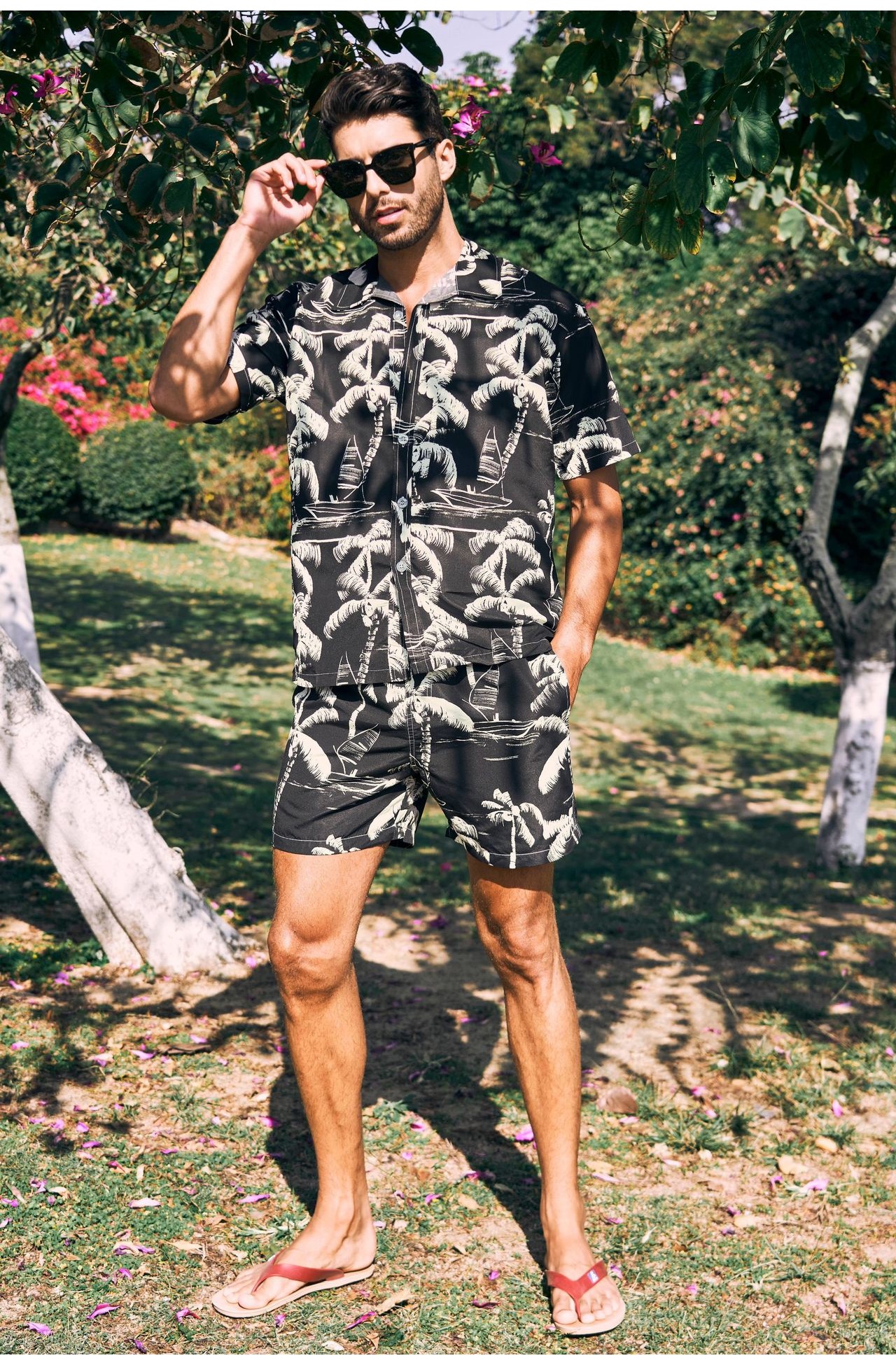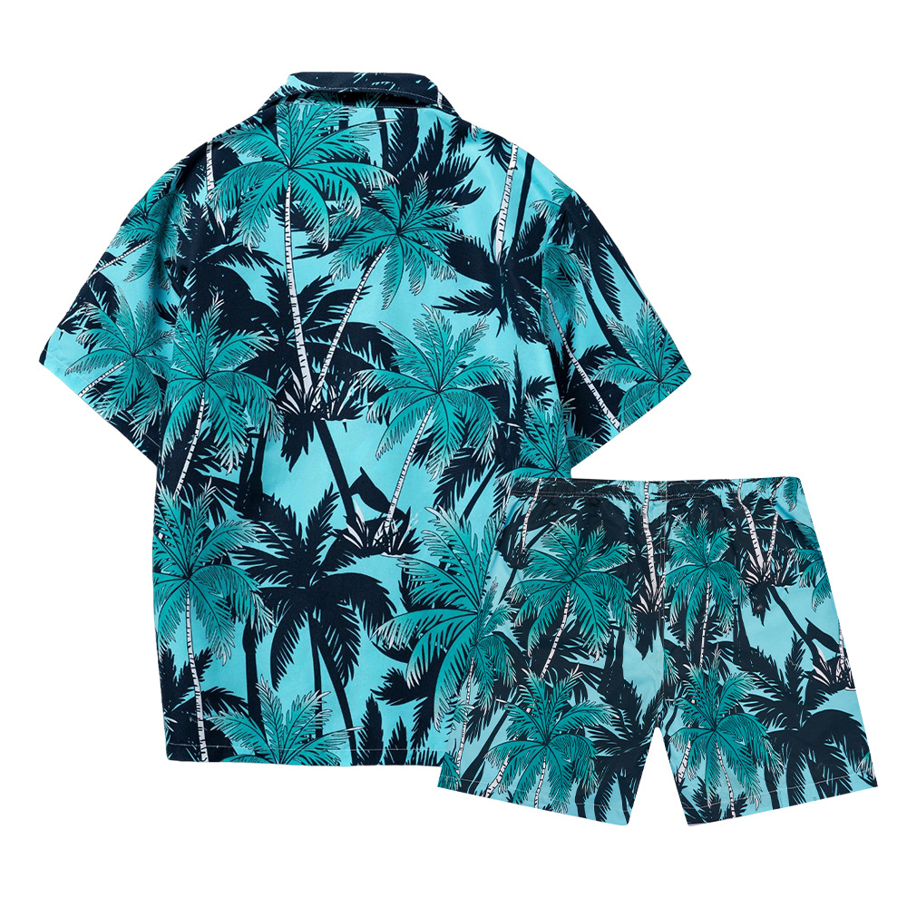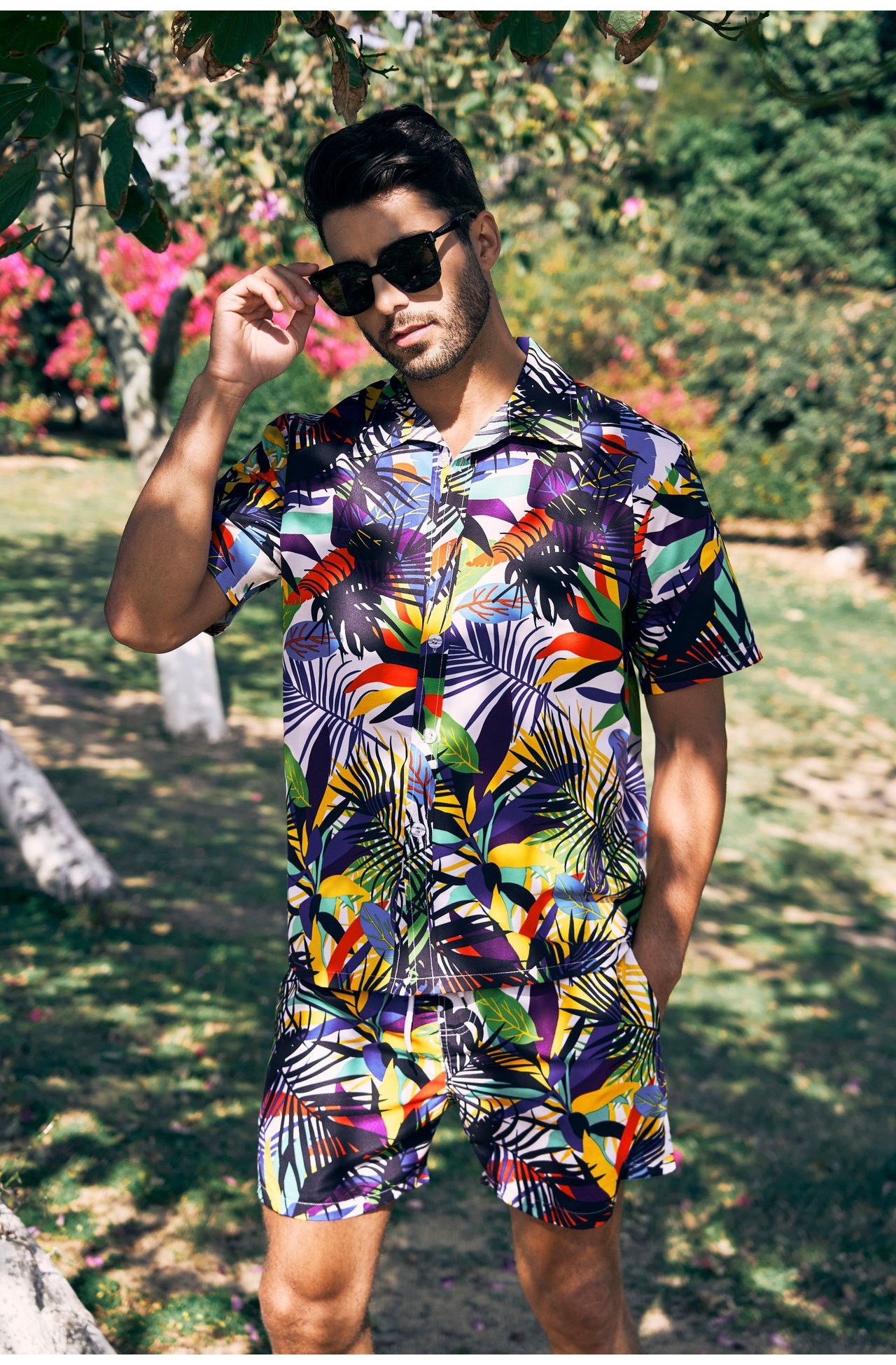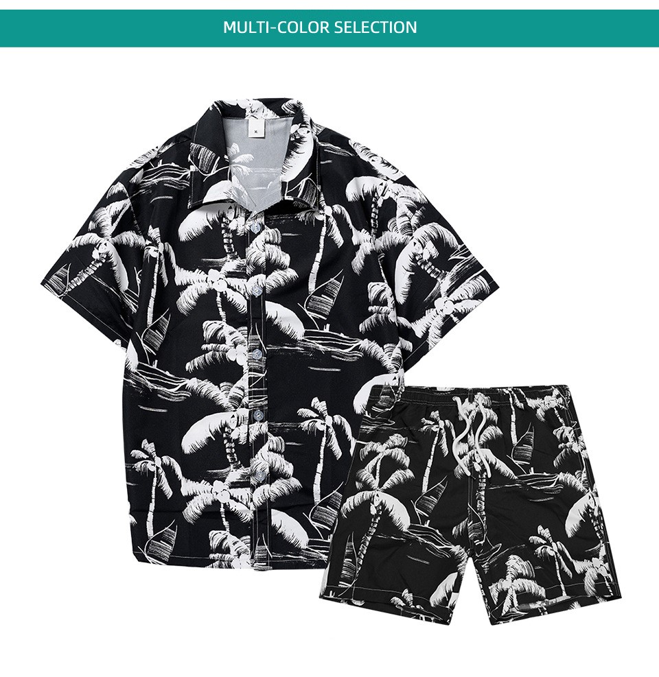 Men summer beach wear set fashion Hawaii printing short sleeve shirt loose plus size shorts 2 piece