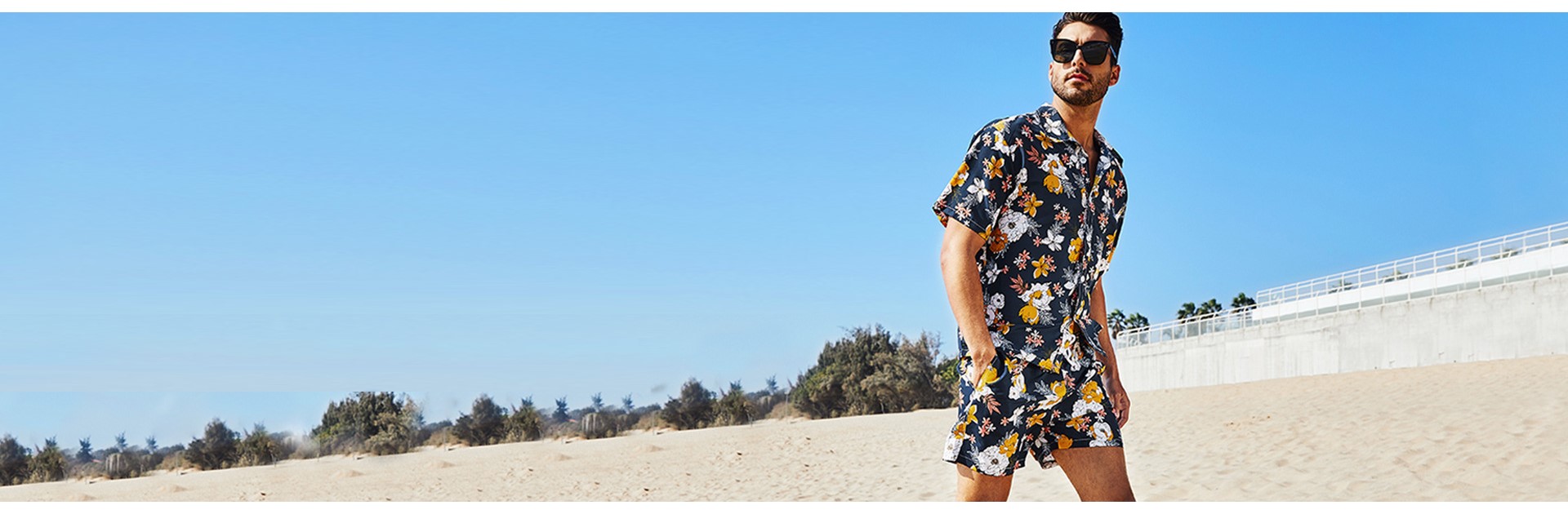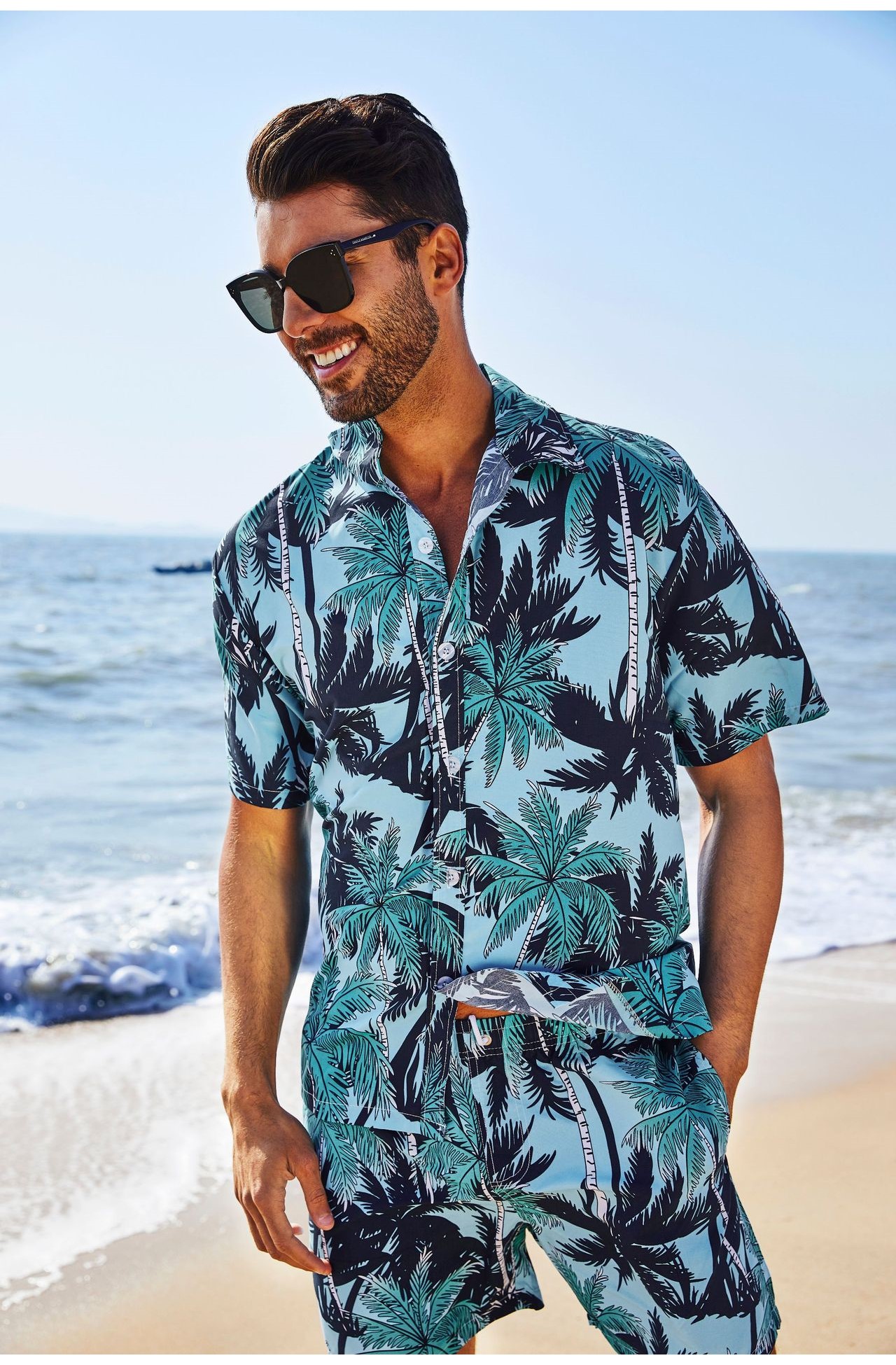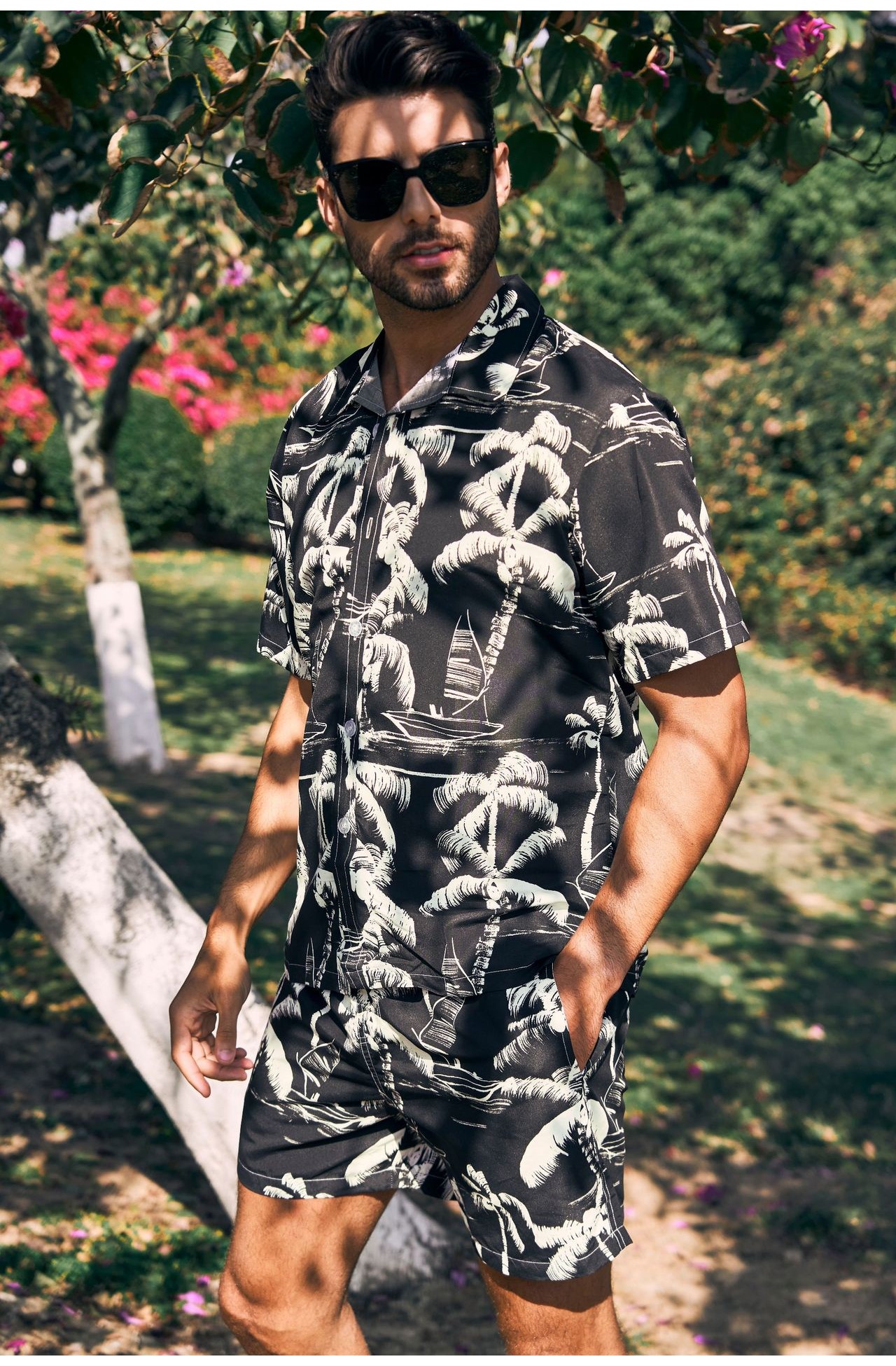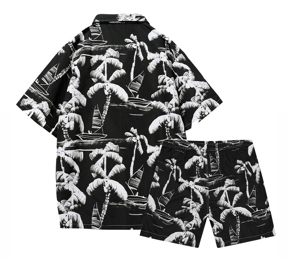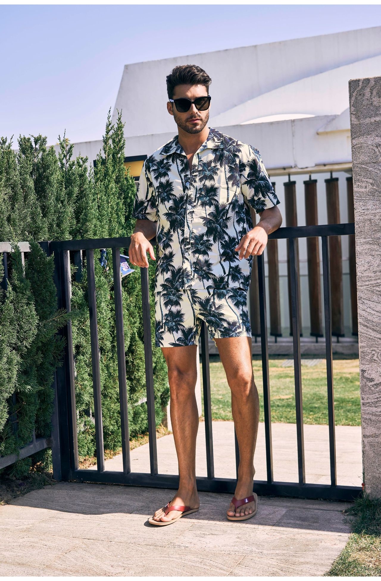 Men summer beach wear set fashion Hawaii printing short sleeve shirt loose plus size shorts 2 piece