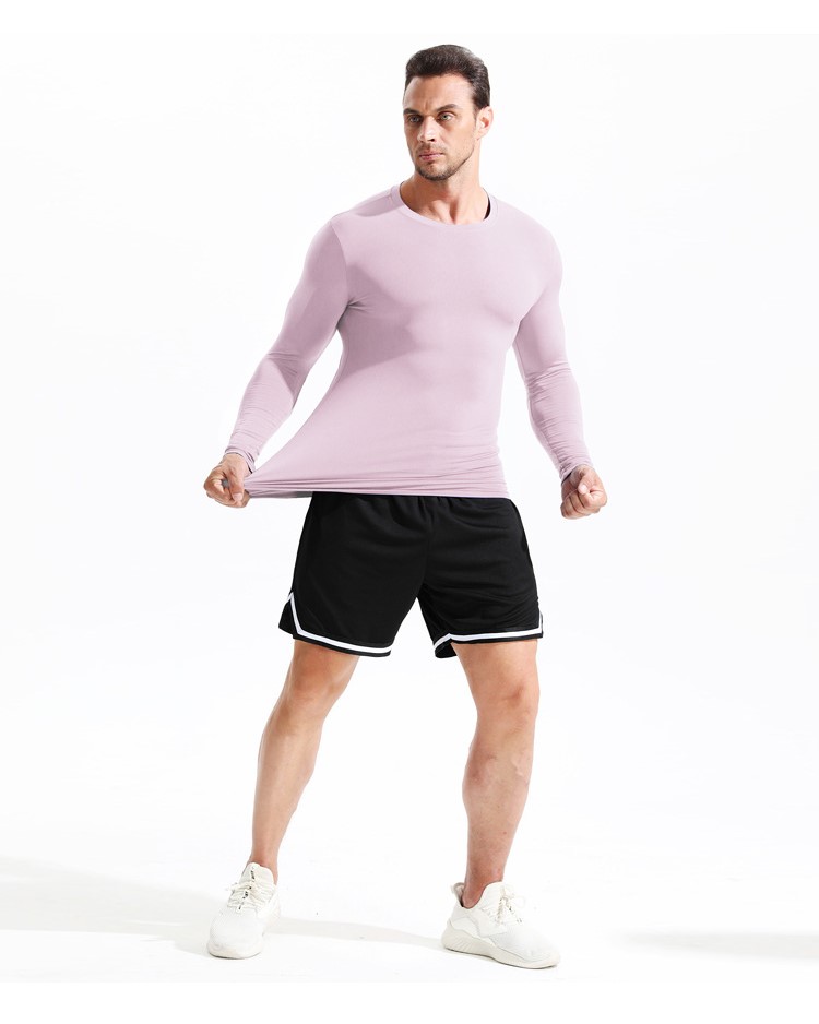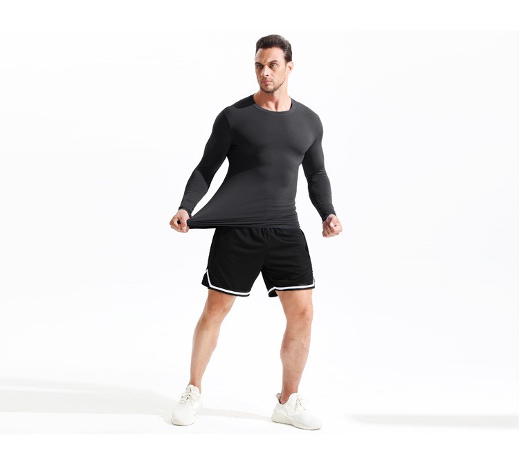 Men tights fitness sportswear elastic long sleeve quick dry breathable gym training sweatshirts