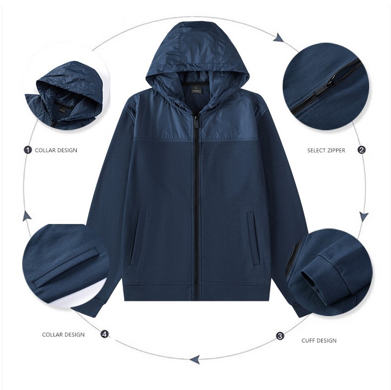 Men winter hooded jackets zip hoodies loose long sleeve sweatshirts loose patchwork cotton coat