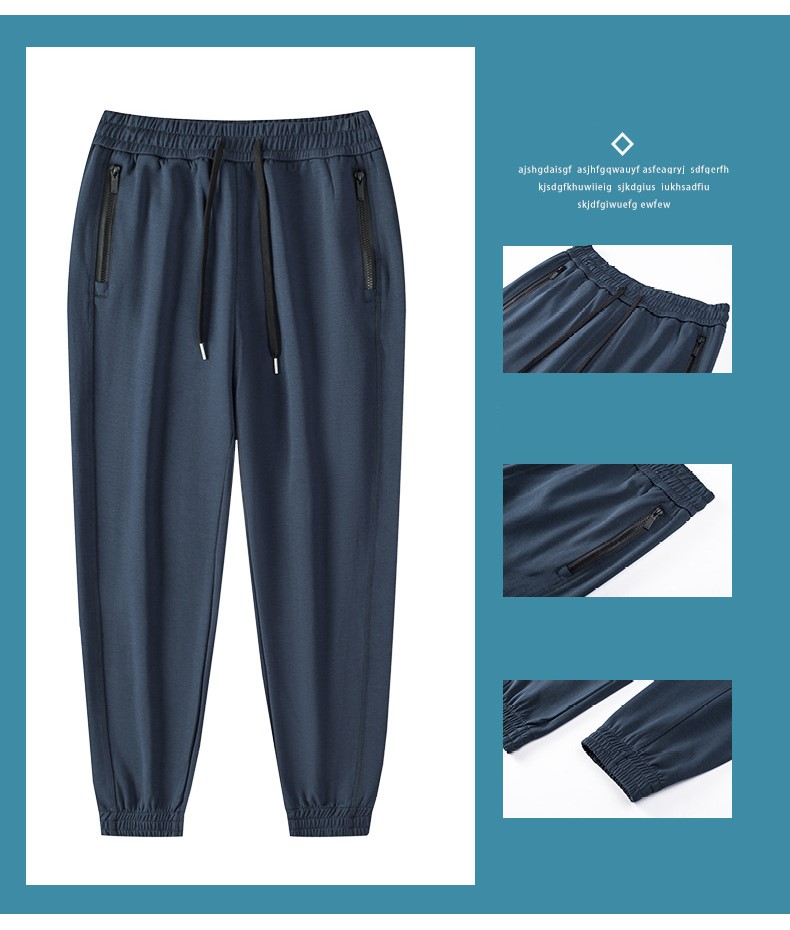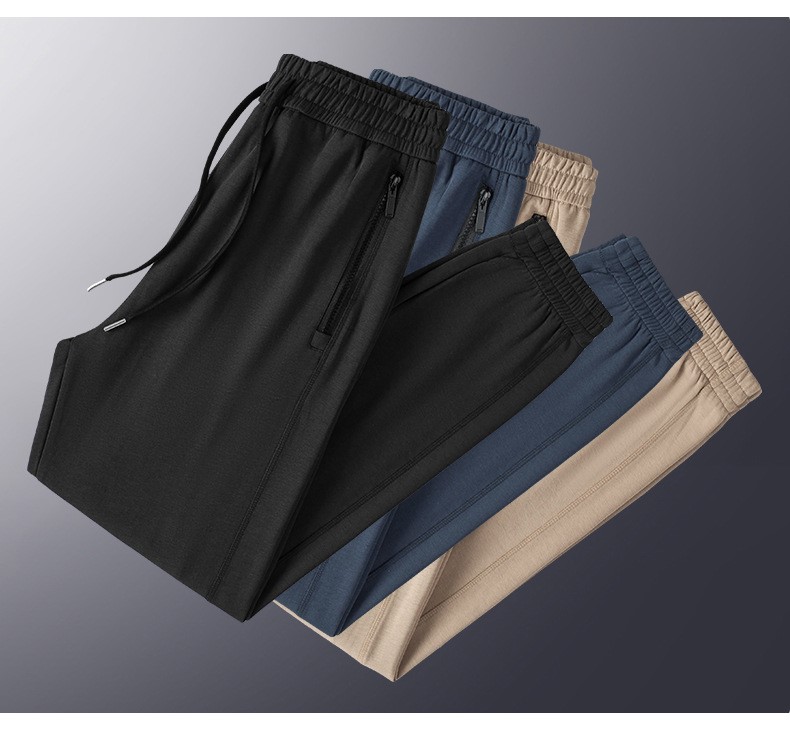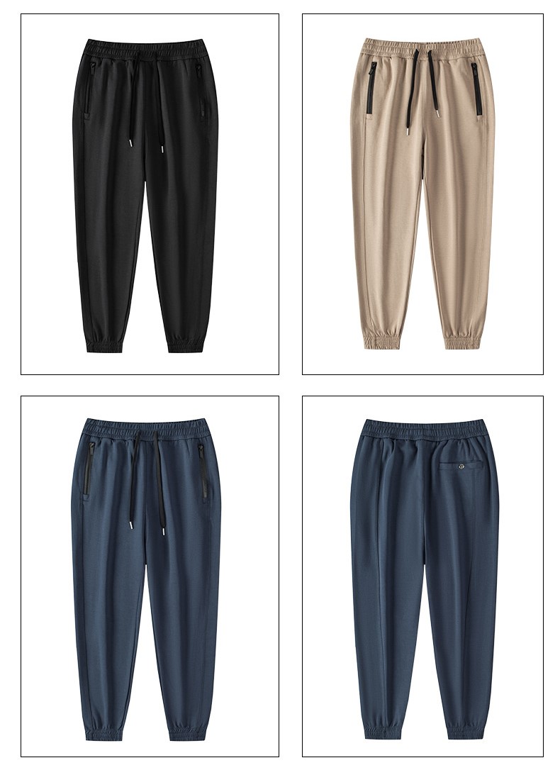 Men winter jogger pants knitted loose casual sports drawstring cotton sweatpants with zip pockets