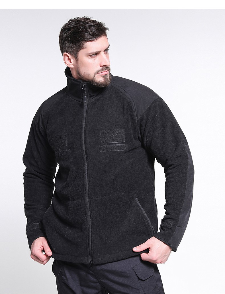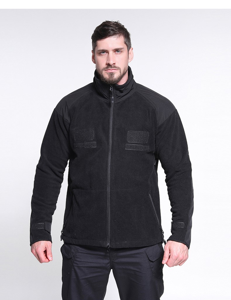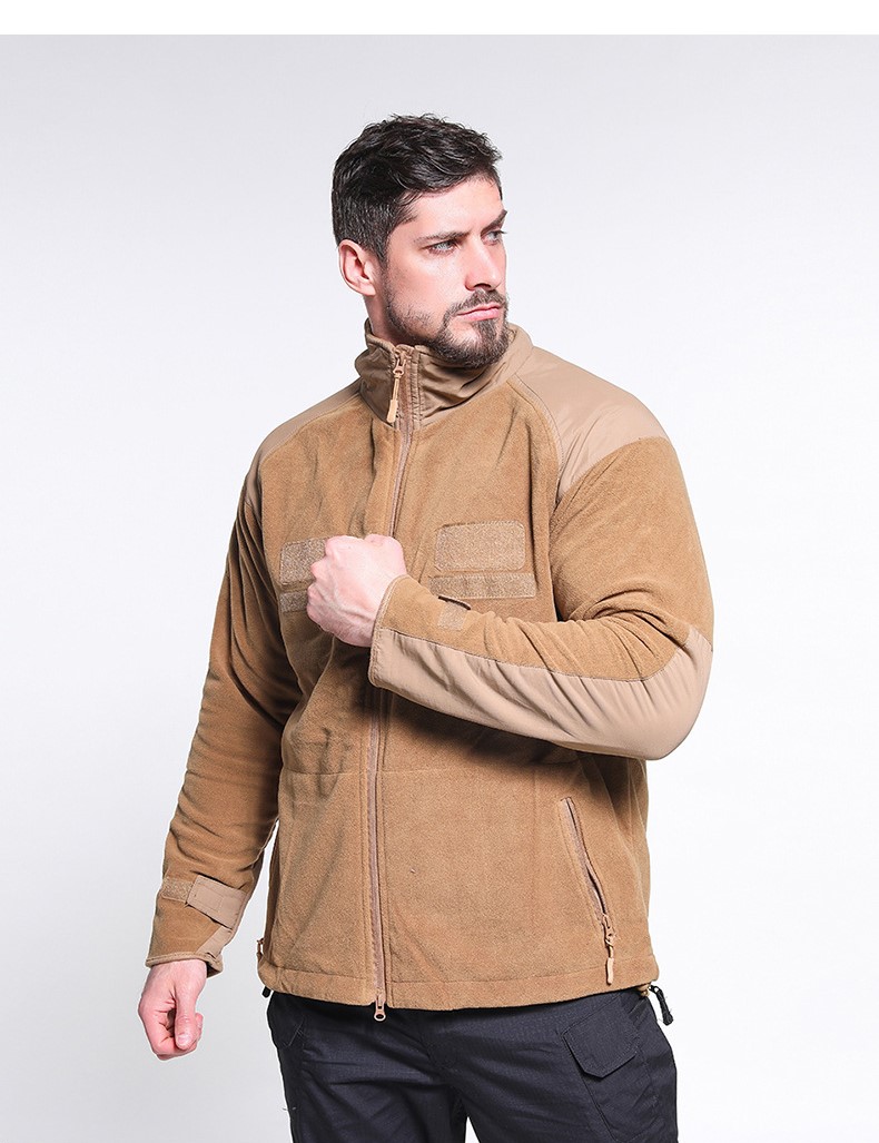 Men winter warm coat stand collar colorblock sweatshirts outdoor polar fleece full zip jacket