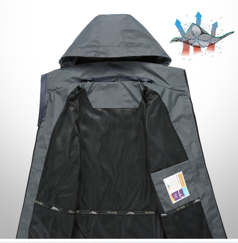 Men women softshell jackets rainproof loose zip outdoor coat removeable hooded mesh lining jacket