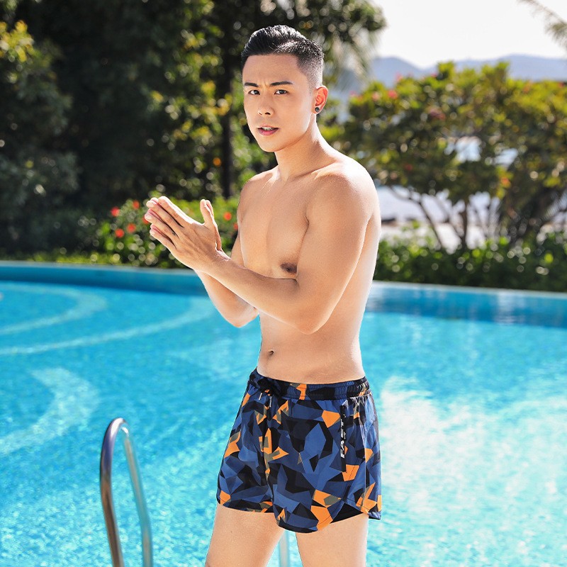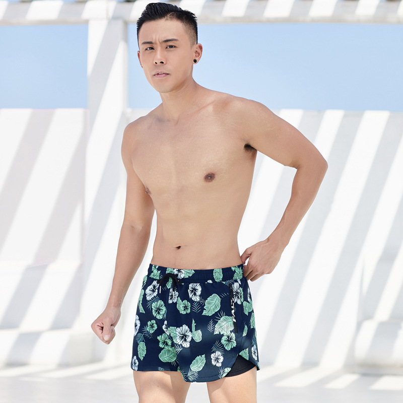 Mens beach shorts loose quick dry elastic drawstring pants with liner