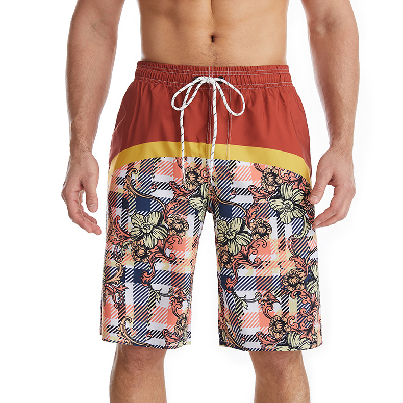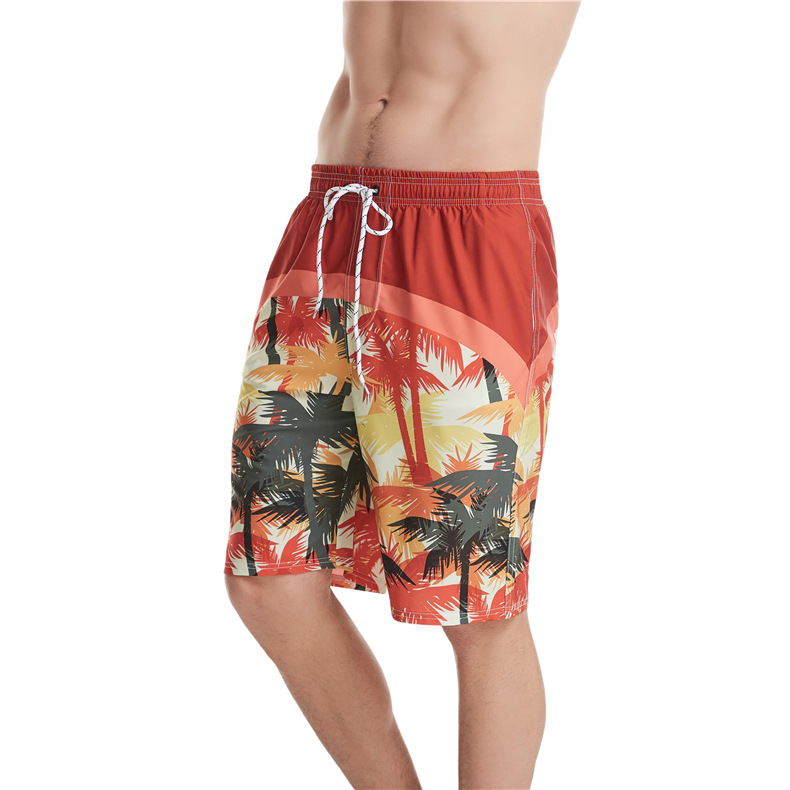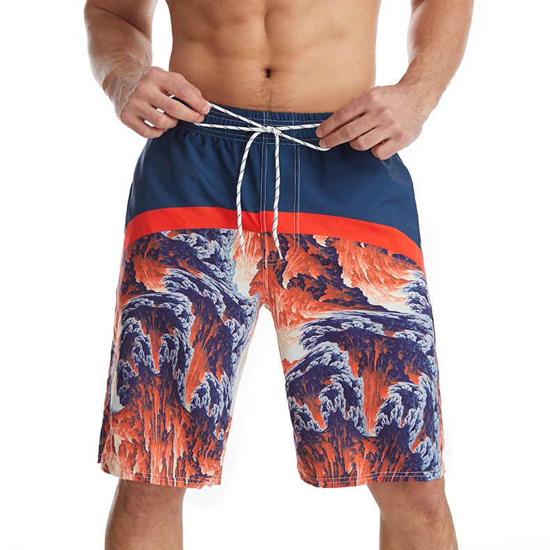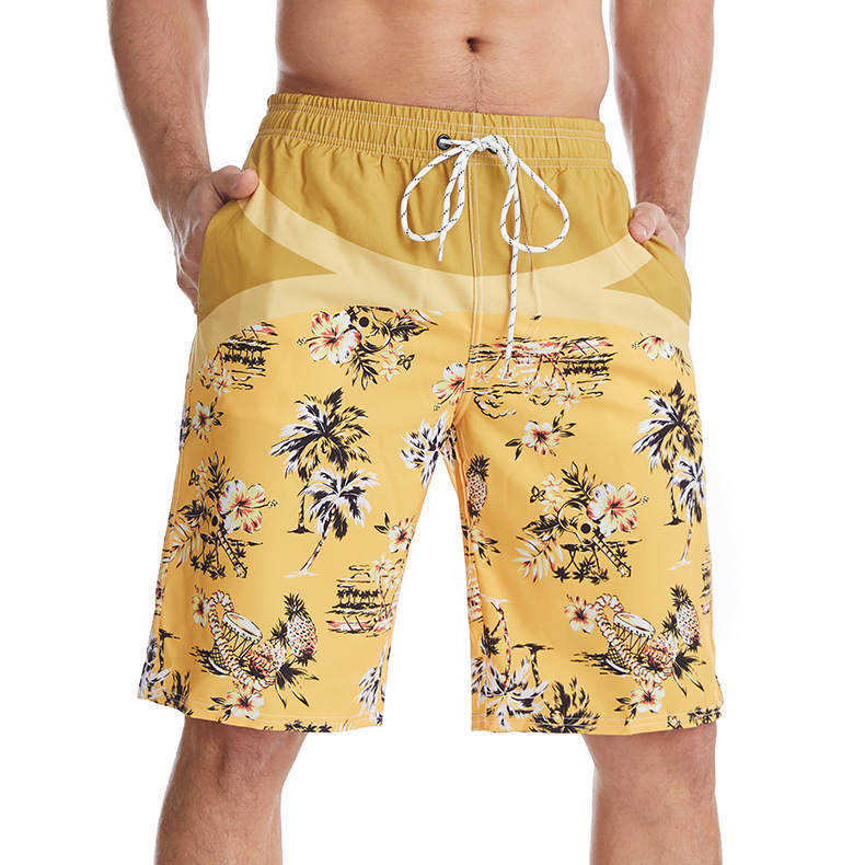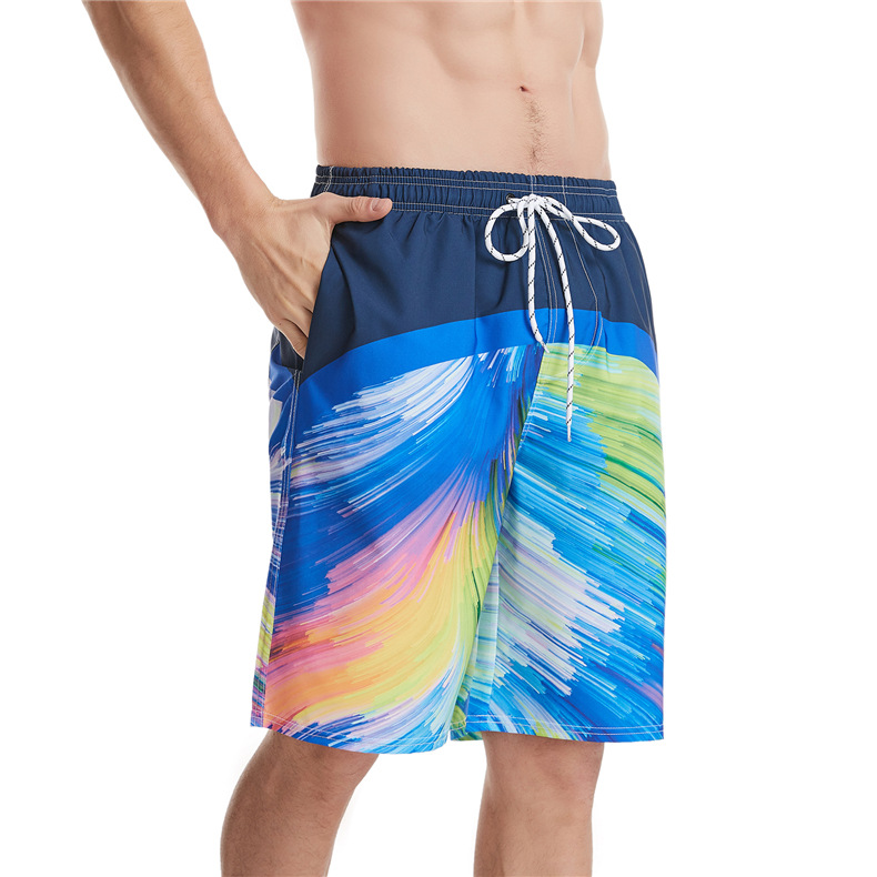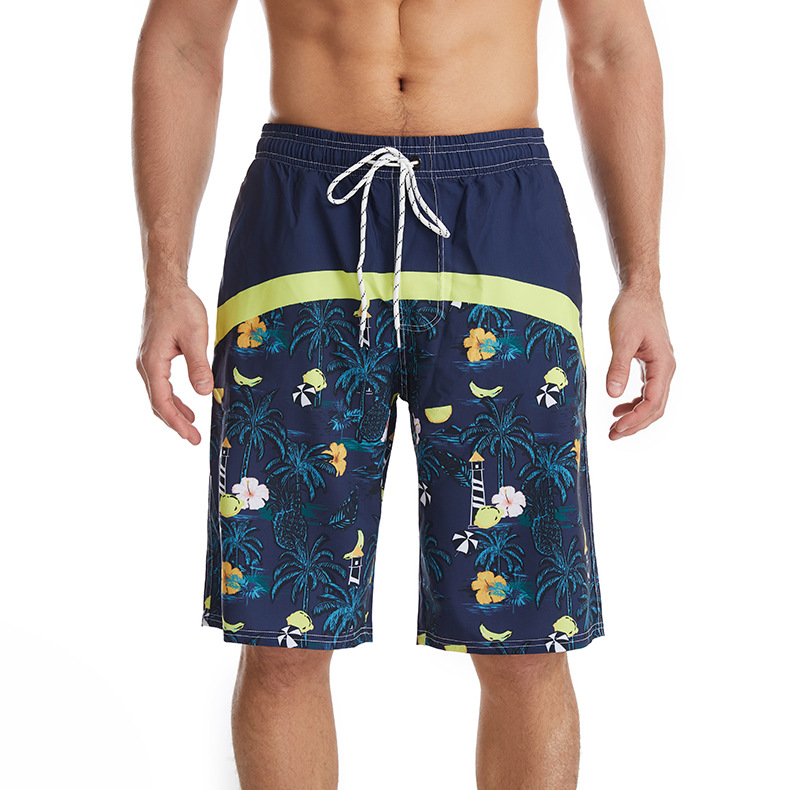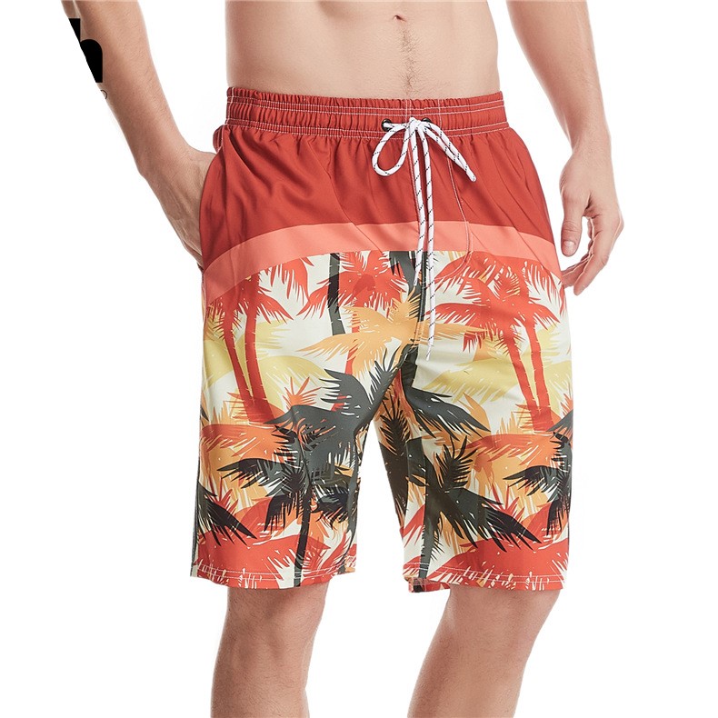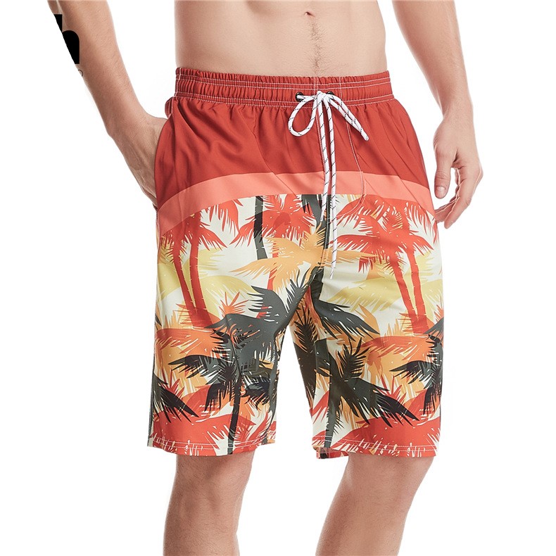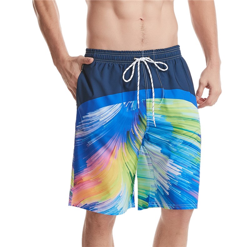 Mens beach shorts printed drawstring loose quick dry beachpants