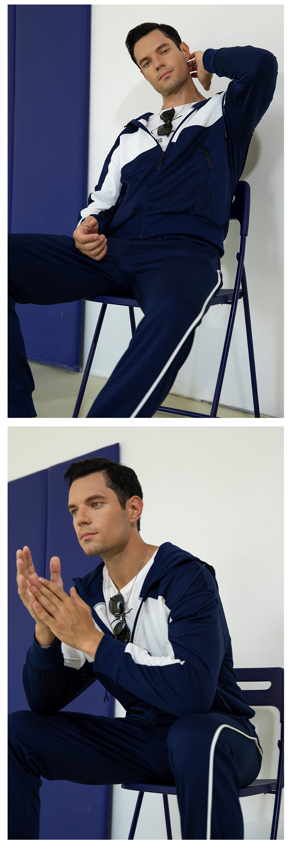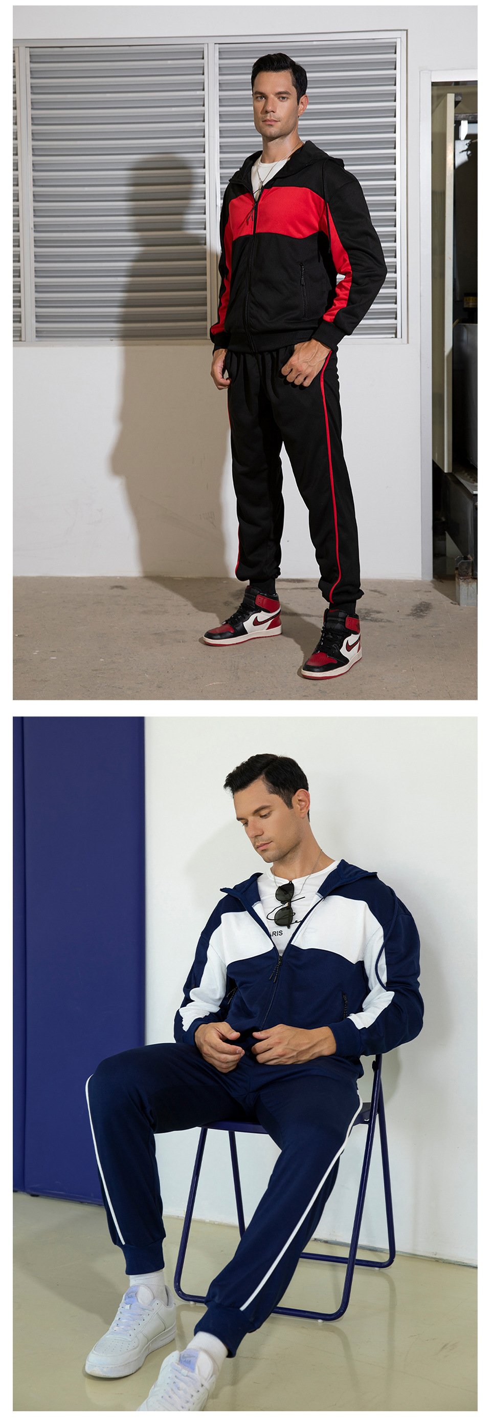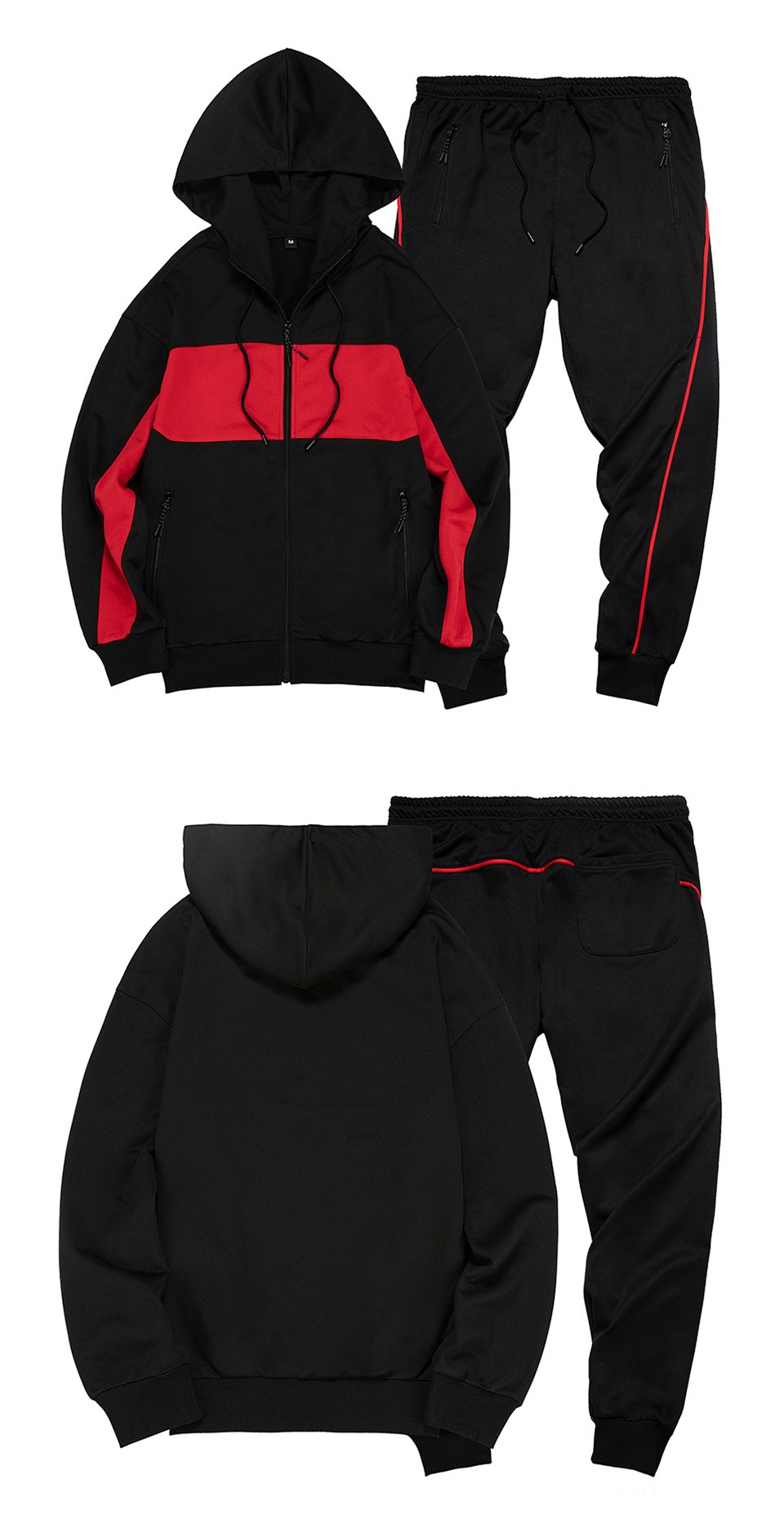 Mens casual fleece tracksuits color block zip hoodies jogger pants oversized loose sweatsuits