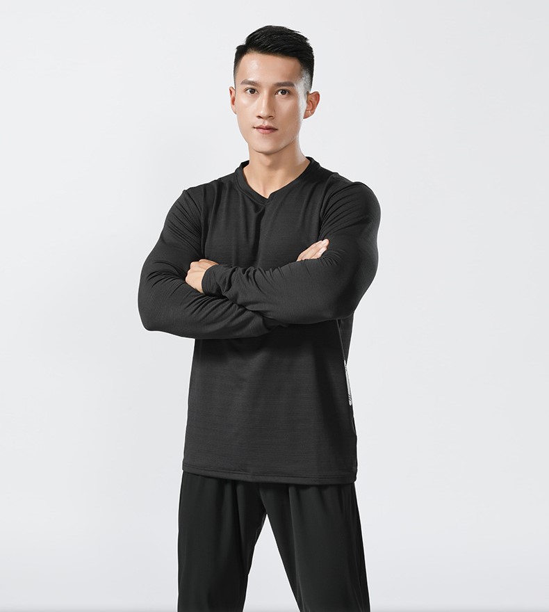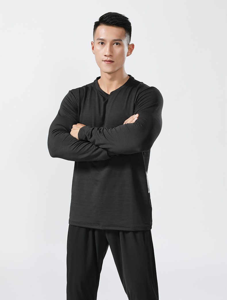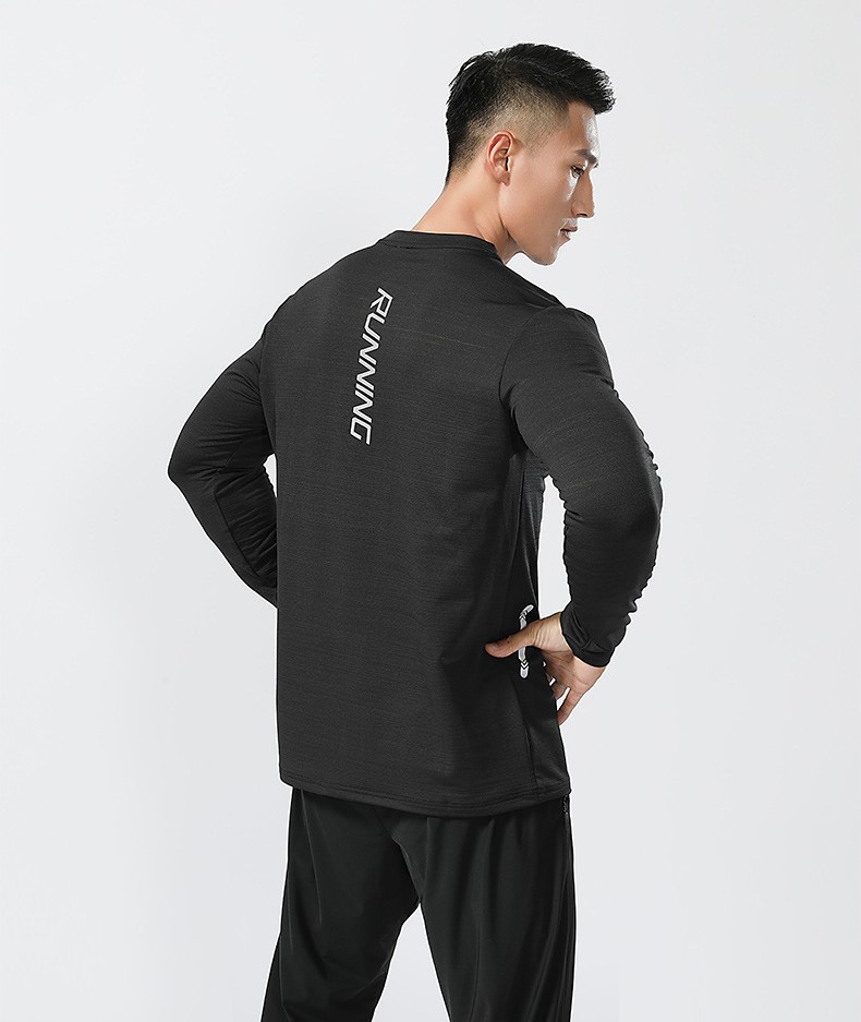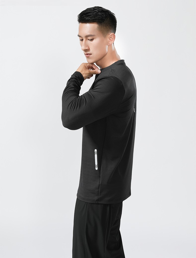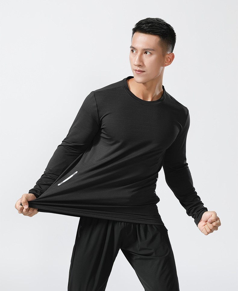 Mens crewneck long sleeve sweatshirts fitness undershirt elastic workout pullover shirts