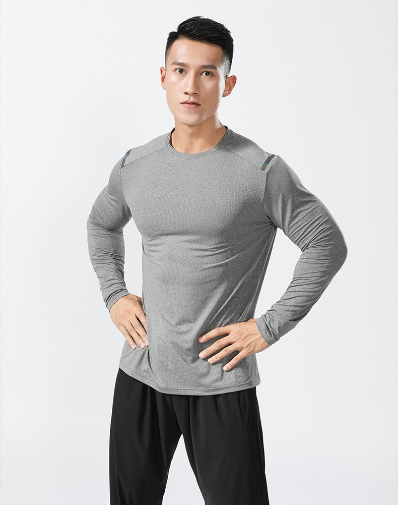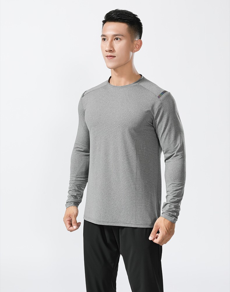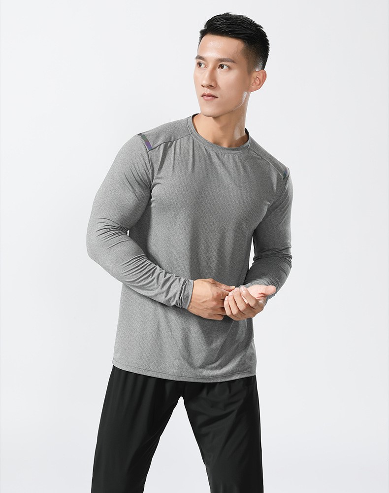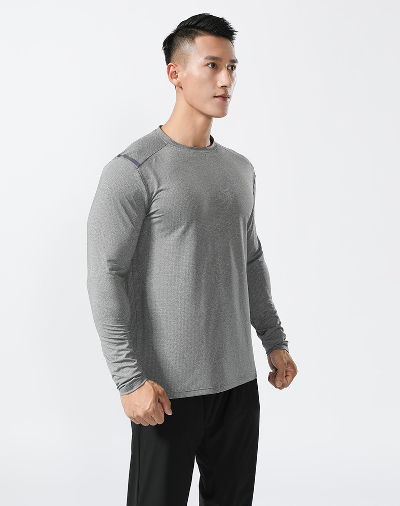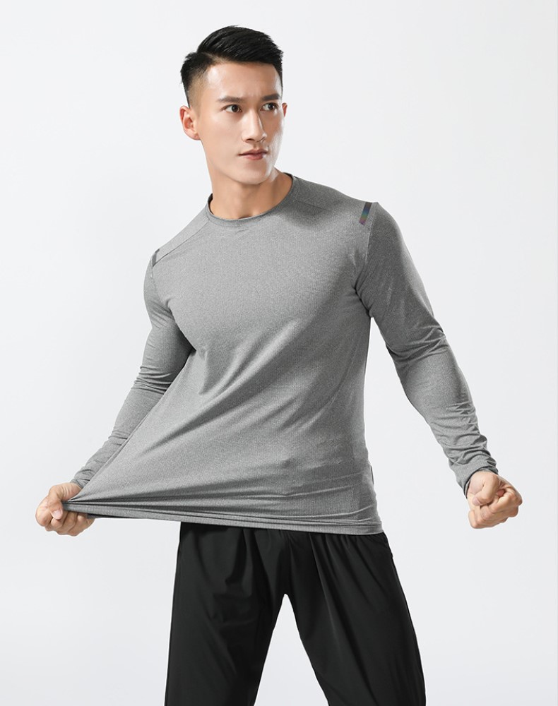 Mens crewneck sweatshirts quick-dry undershirt fitness outdoor long sleeve tshirts