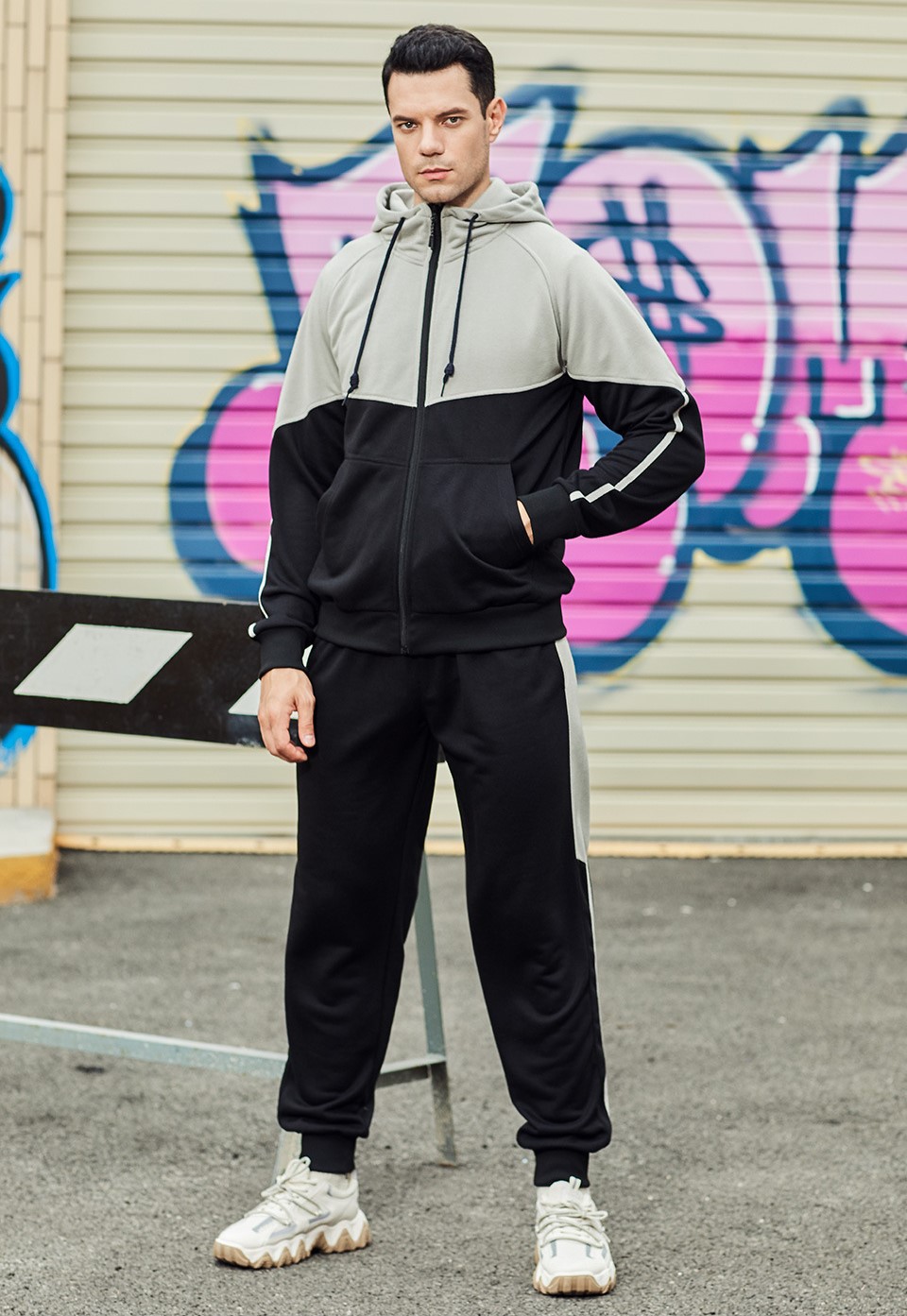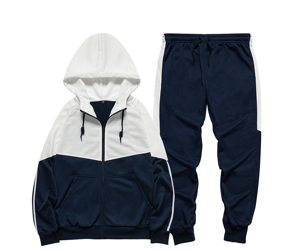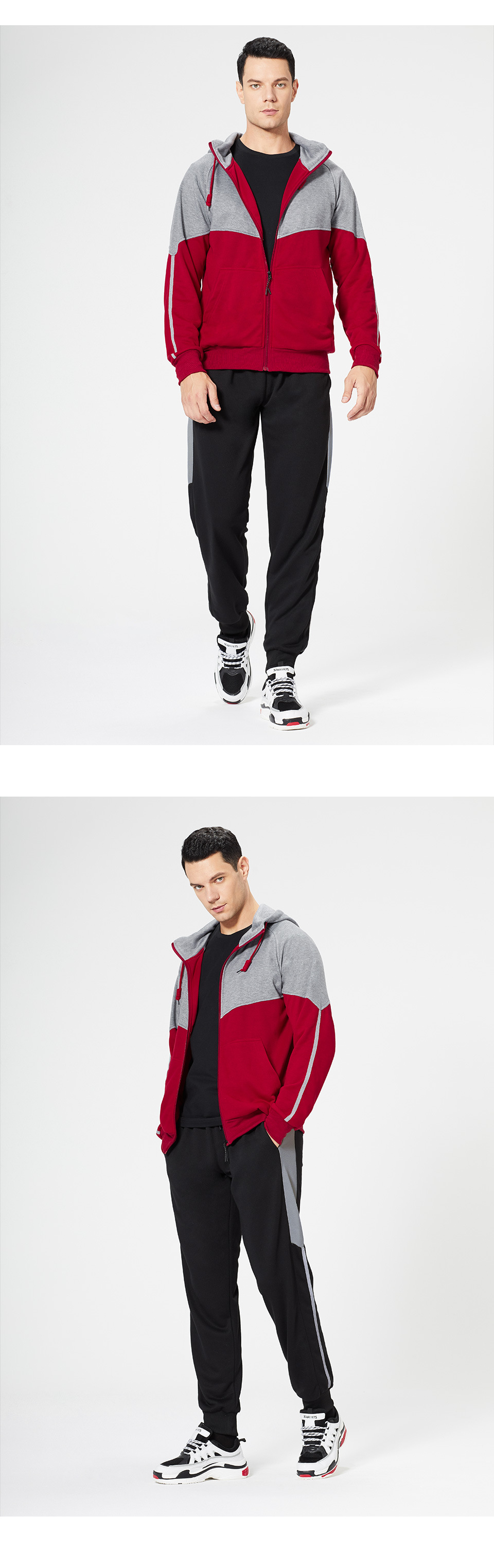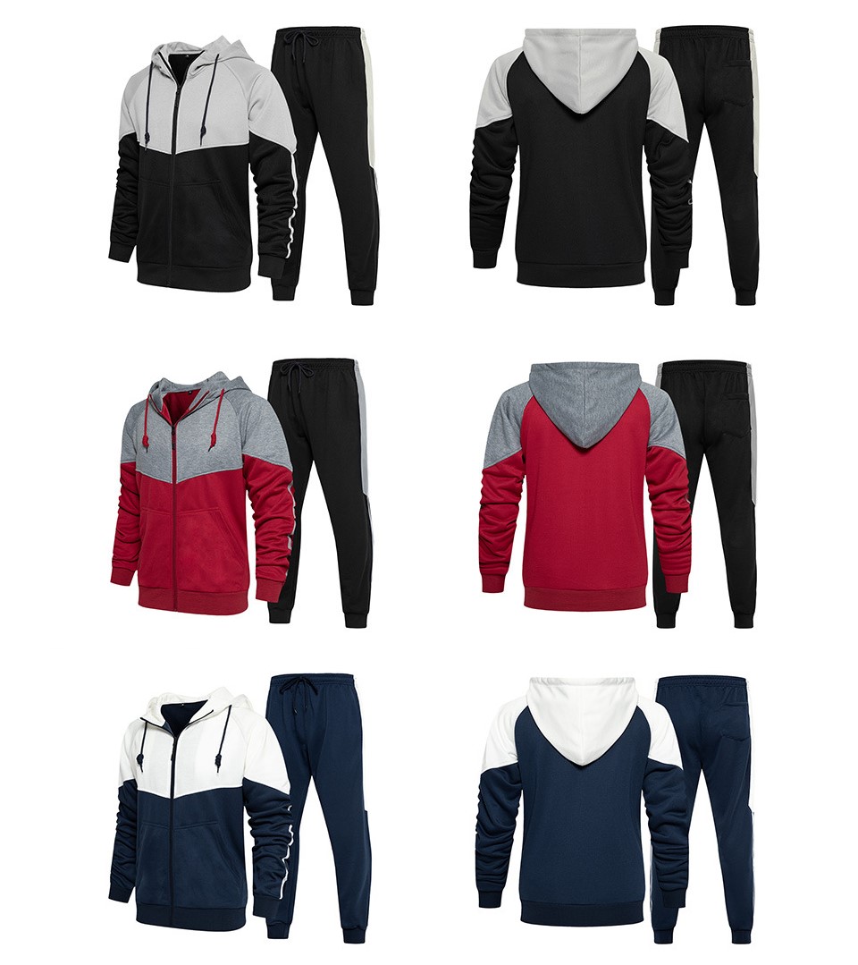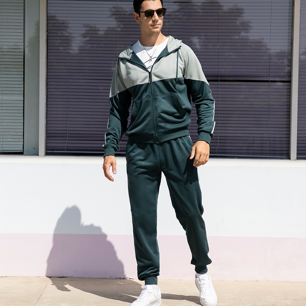 Mens french terry tracksuits color block zip up hoodies jogger sweatpants two piece sweatsuits