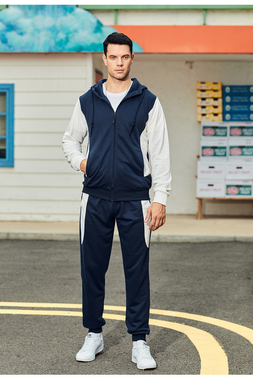 Mens hooded sweatshirts tunics color block fashion casual sports drawstring full zip hoodies