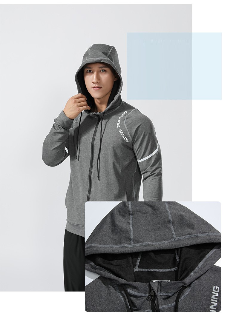 Mens hoodies outdoor coats sports hooded zip stripe jackets long sleeve cooling sweatshirts