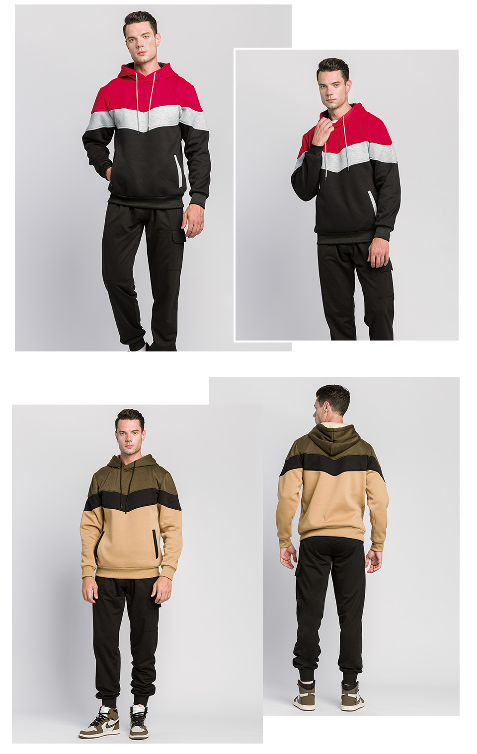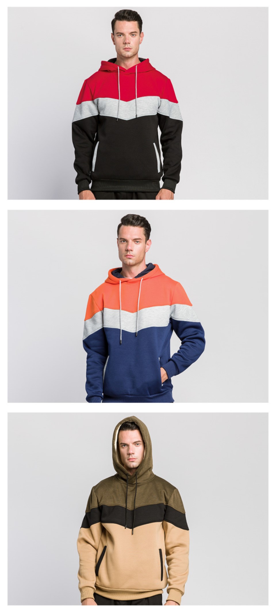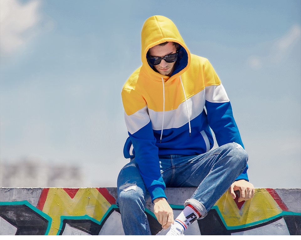 Mens pullover hoodies fashion color blocking outdoor casual fleece long sleeve sweatshirts
