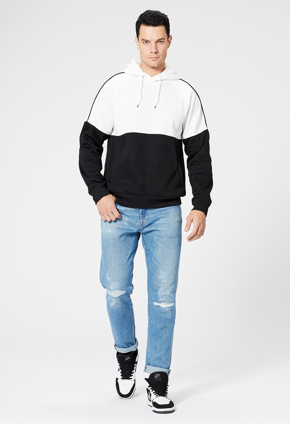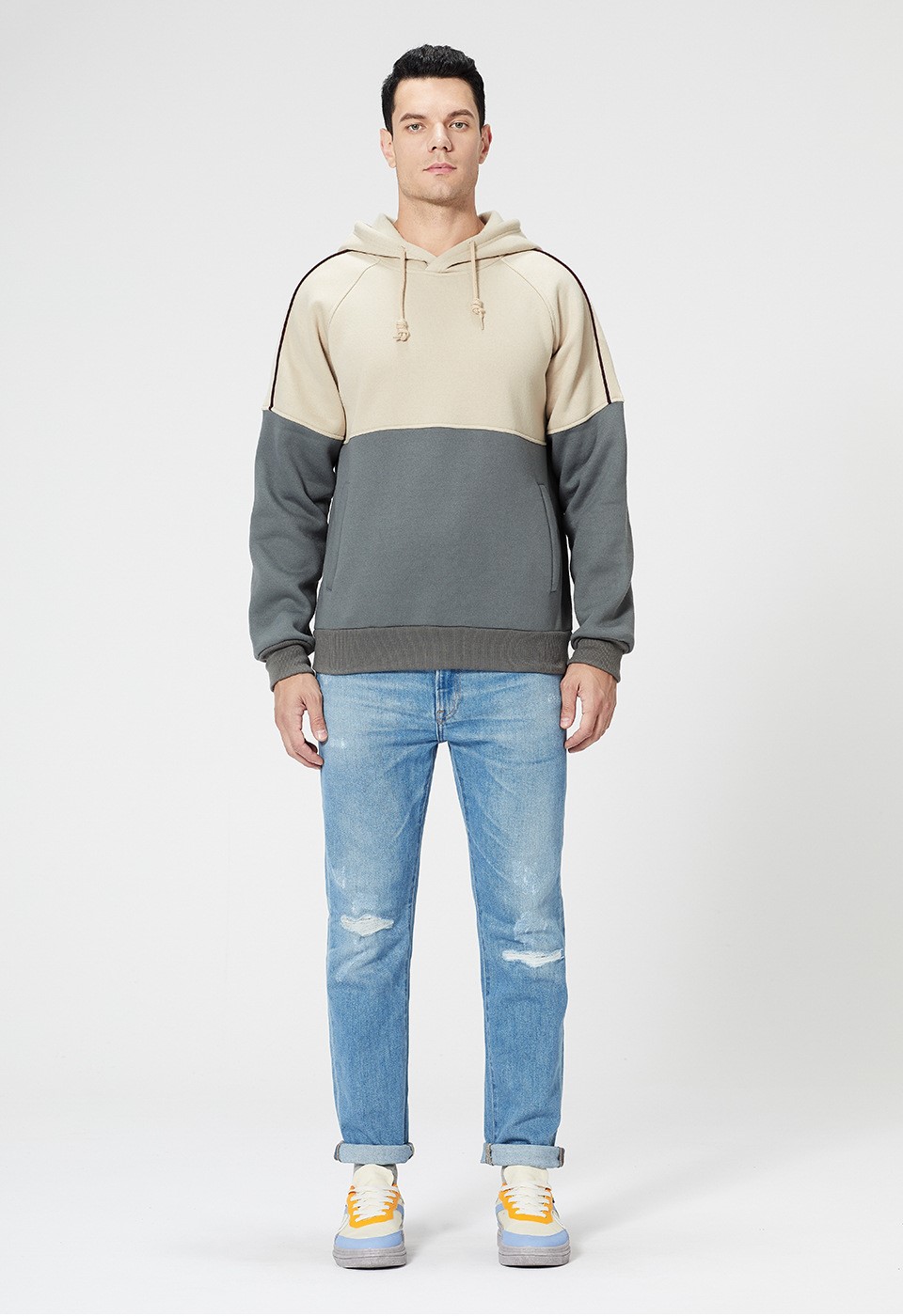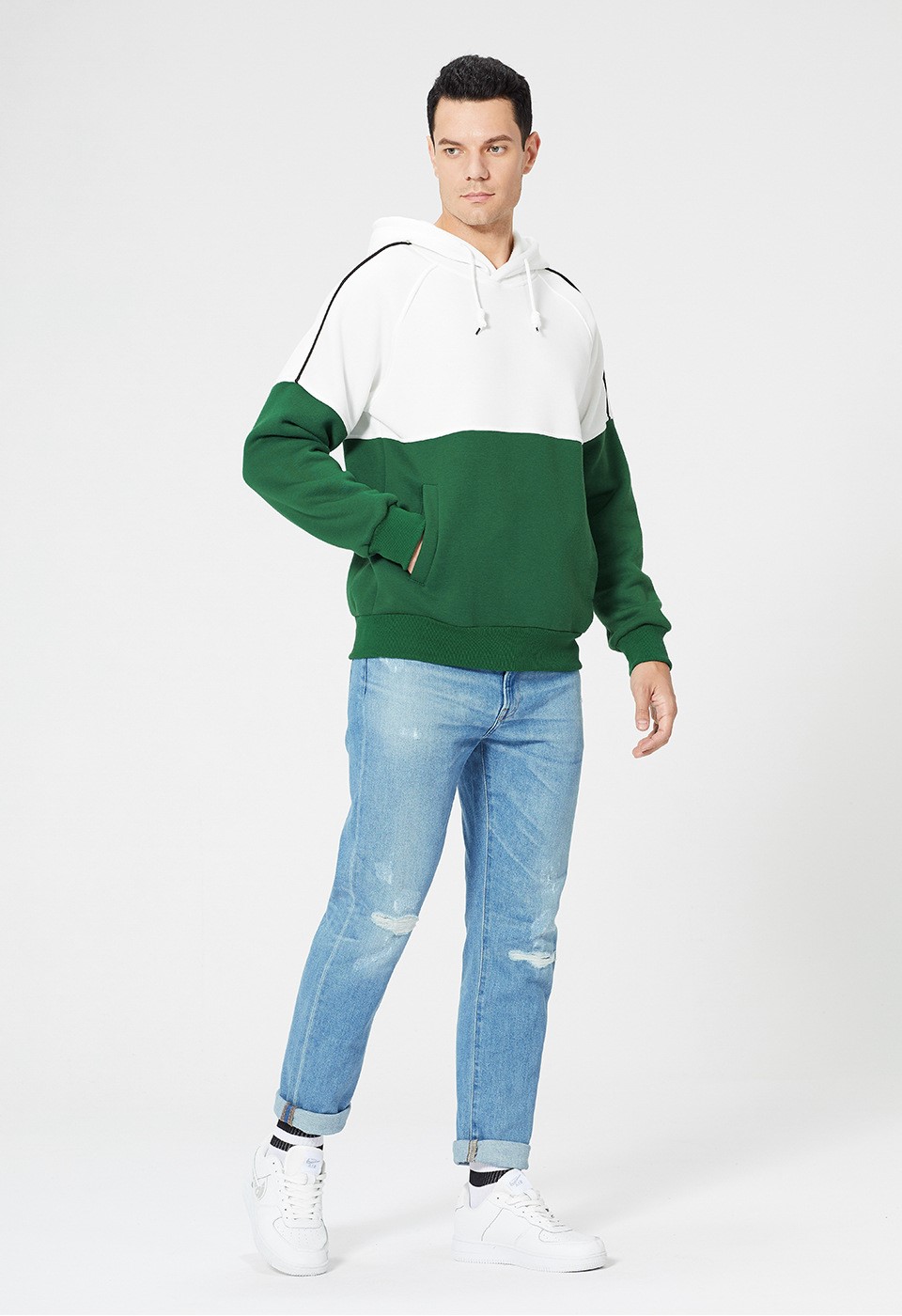 Mens pullover hoody loose color block piping sports casual sweatshirts