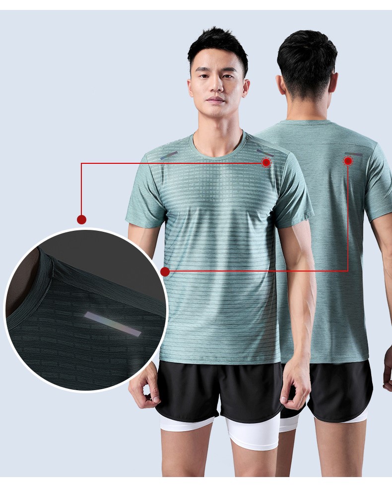Mens round neck fitness t-shirt outdoor running quick dry short sleeve tshirts