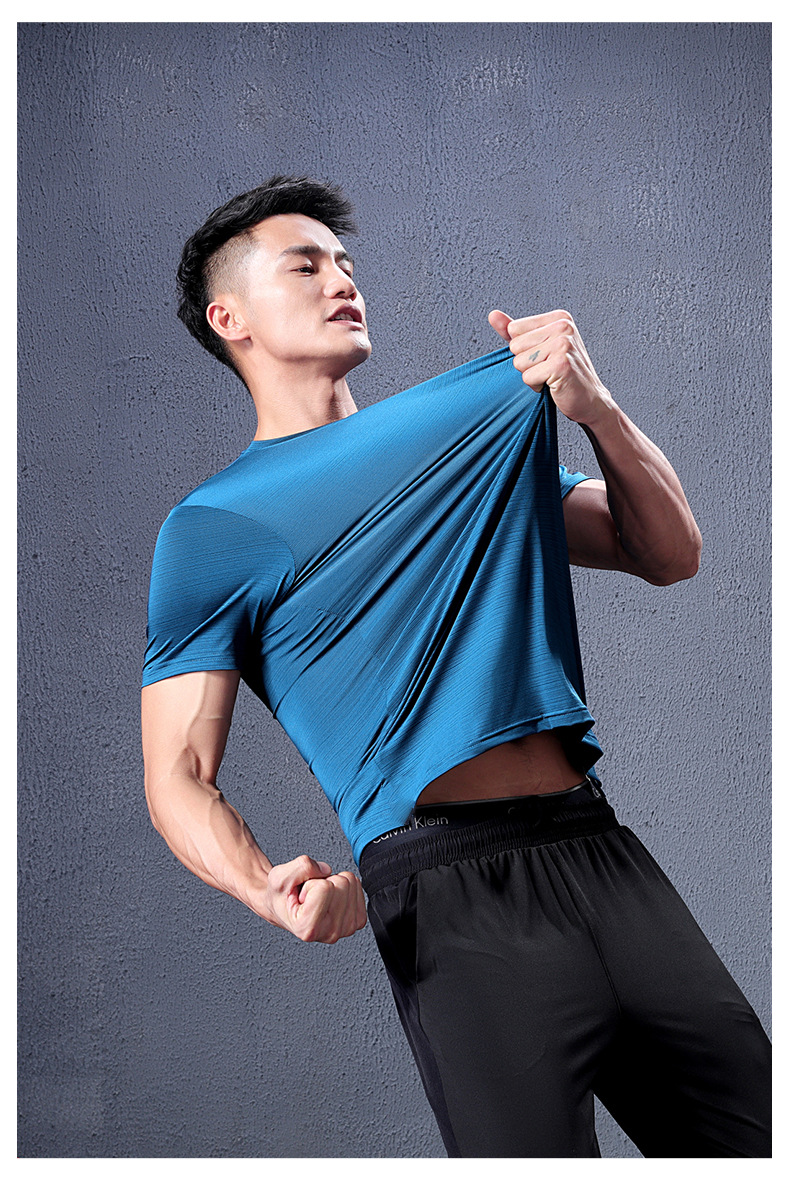Mens short sleeve round neck sports t shirt slim fit blank athletic running quick dry t-shirts