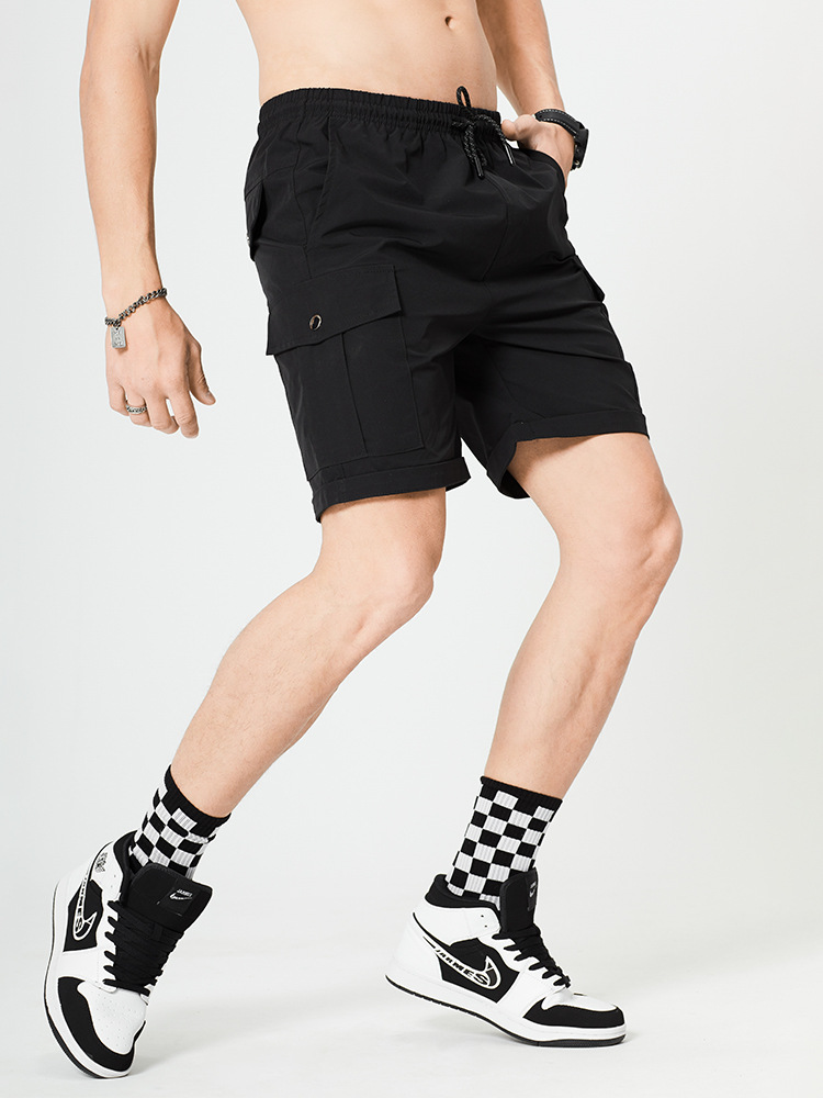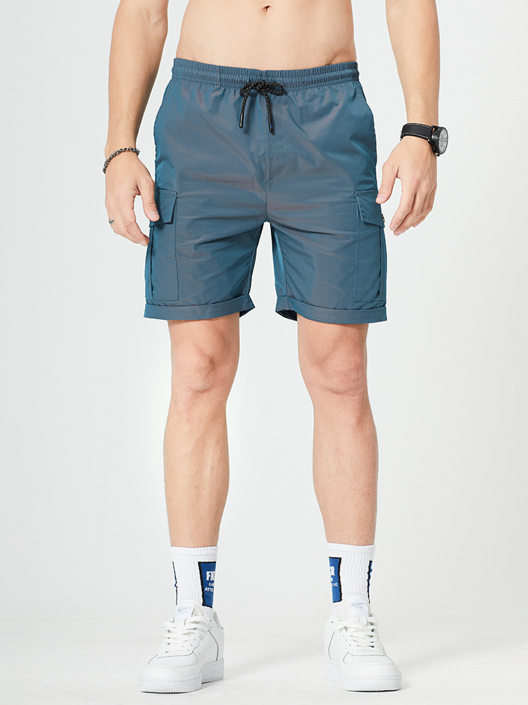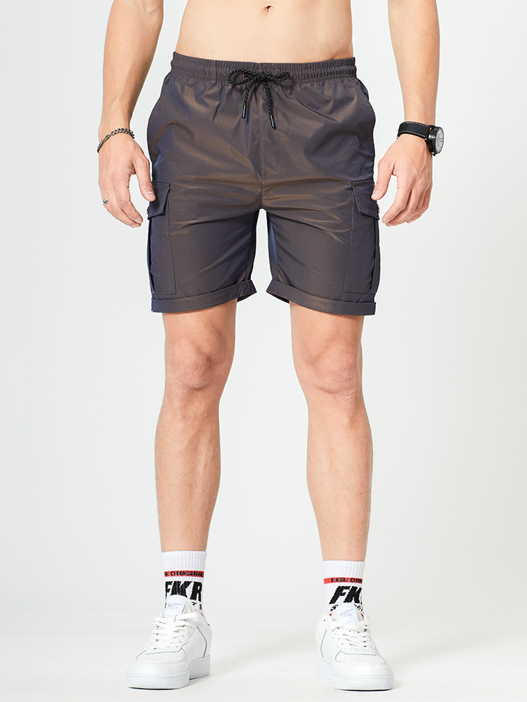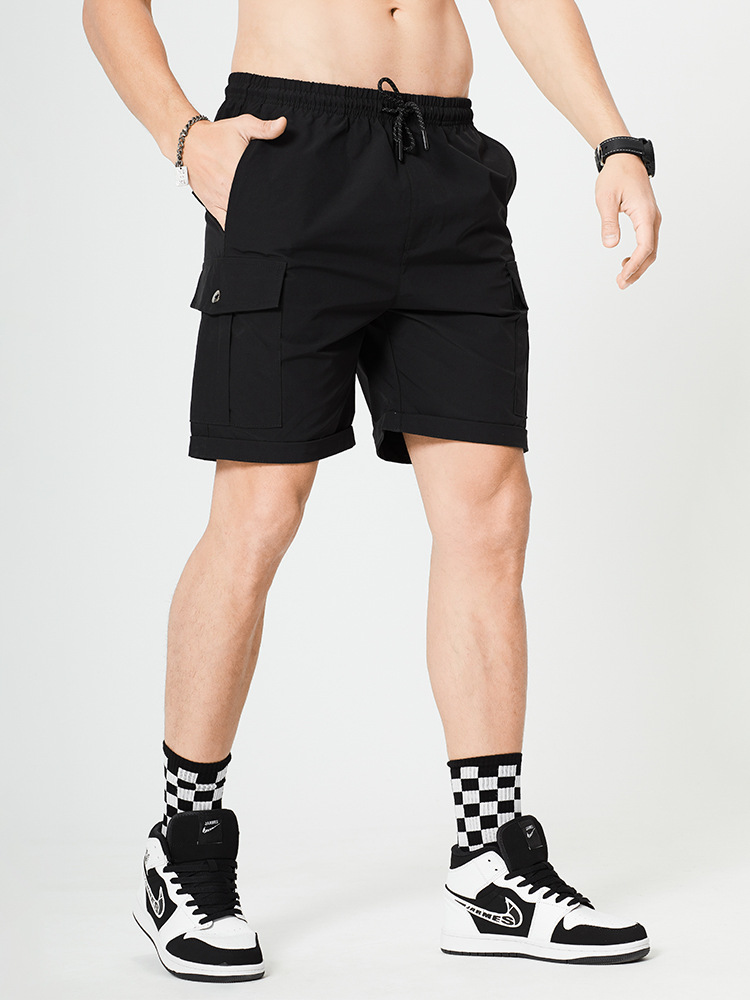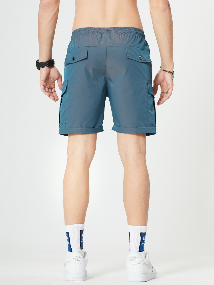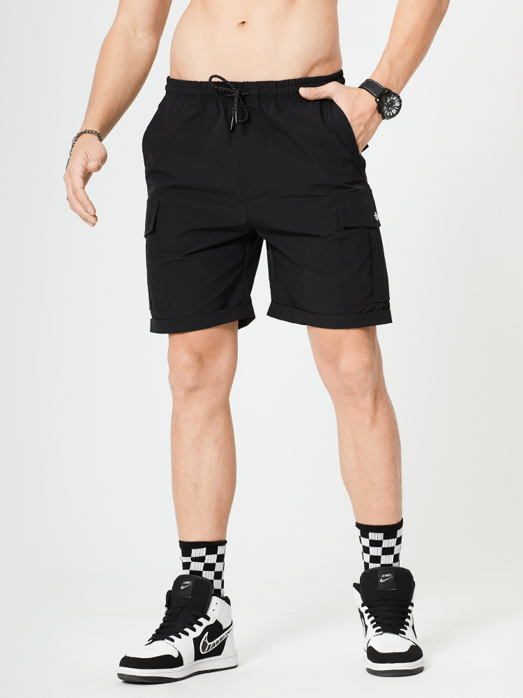 Mens shorts multi pockets drawstring fifth pants summer outdoor running active shorts