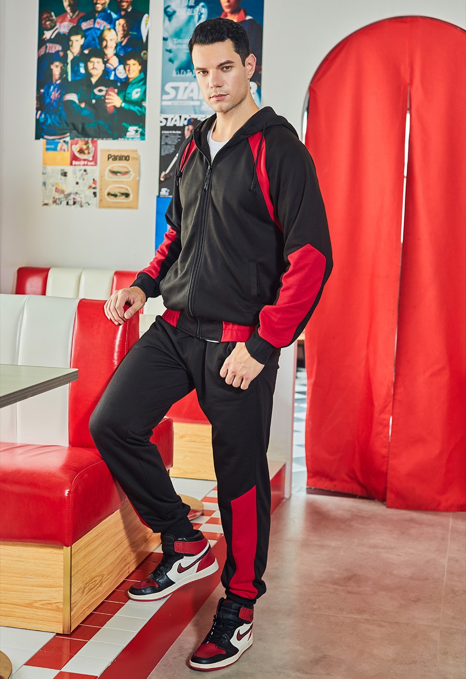 Mens sports hoodies color block full zip raglan sleeve loose outdoor sweatshirts