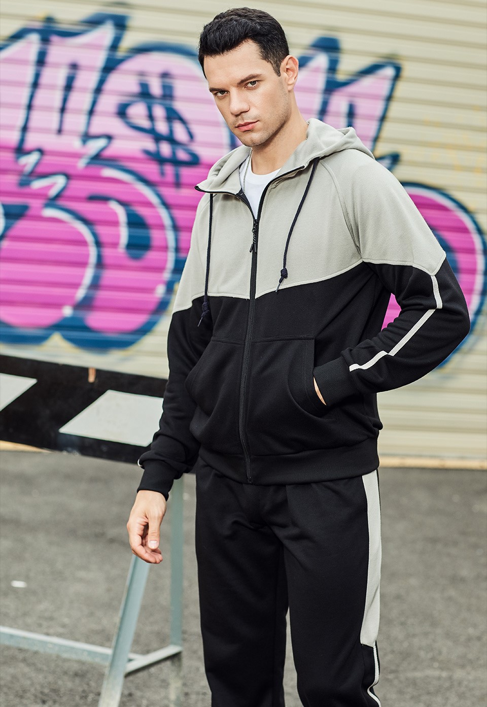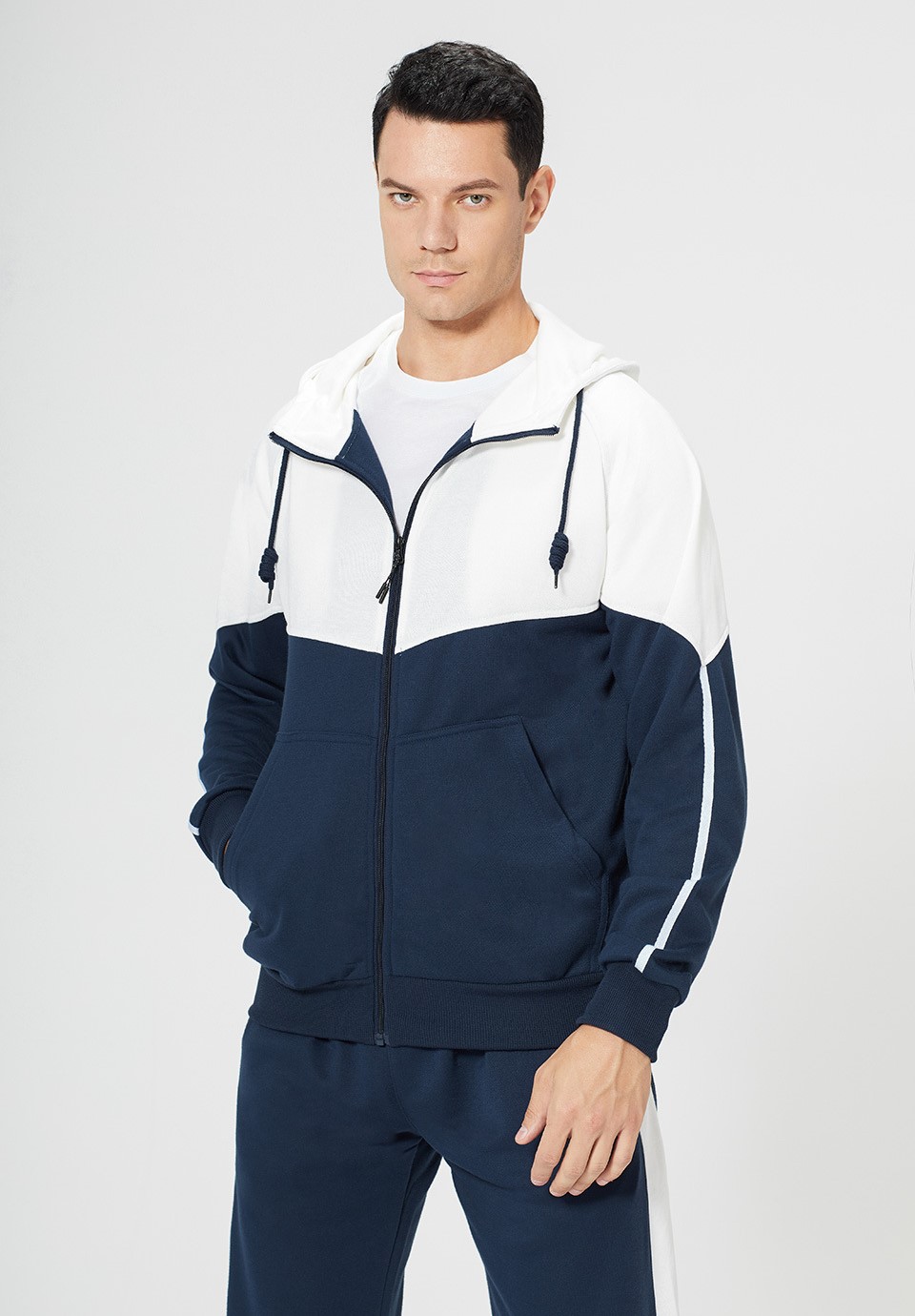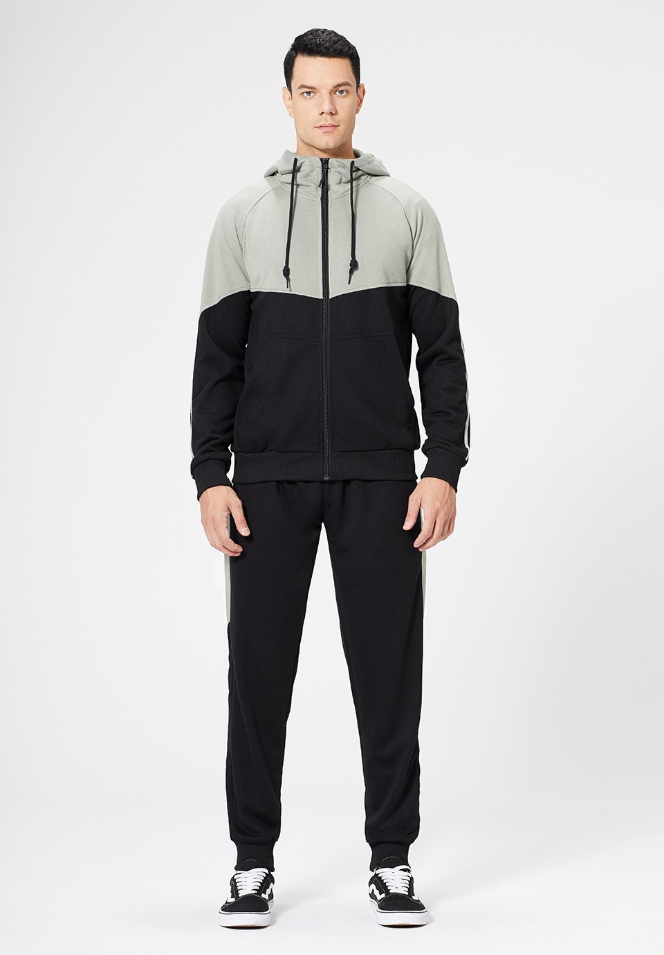 Mens sports hoodies color block stripe full zip sweatshirts hooded jackets