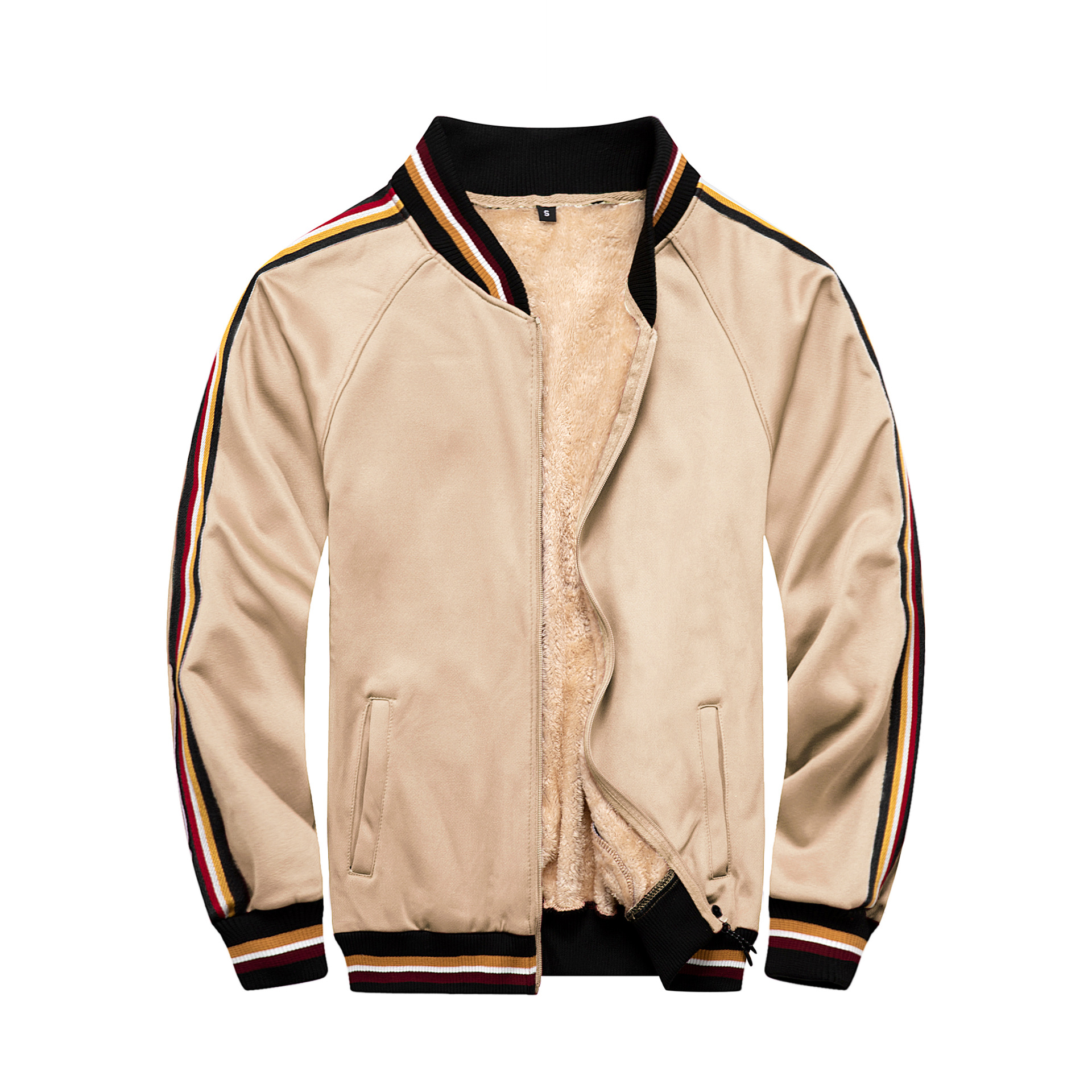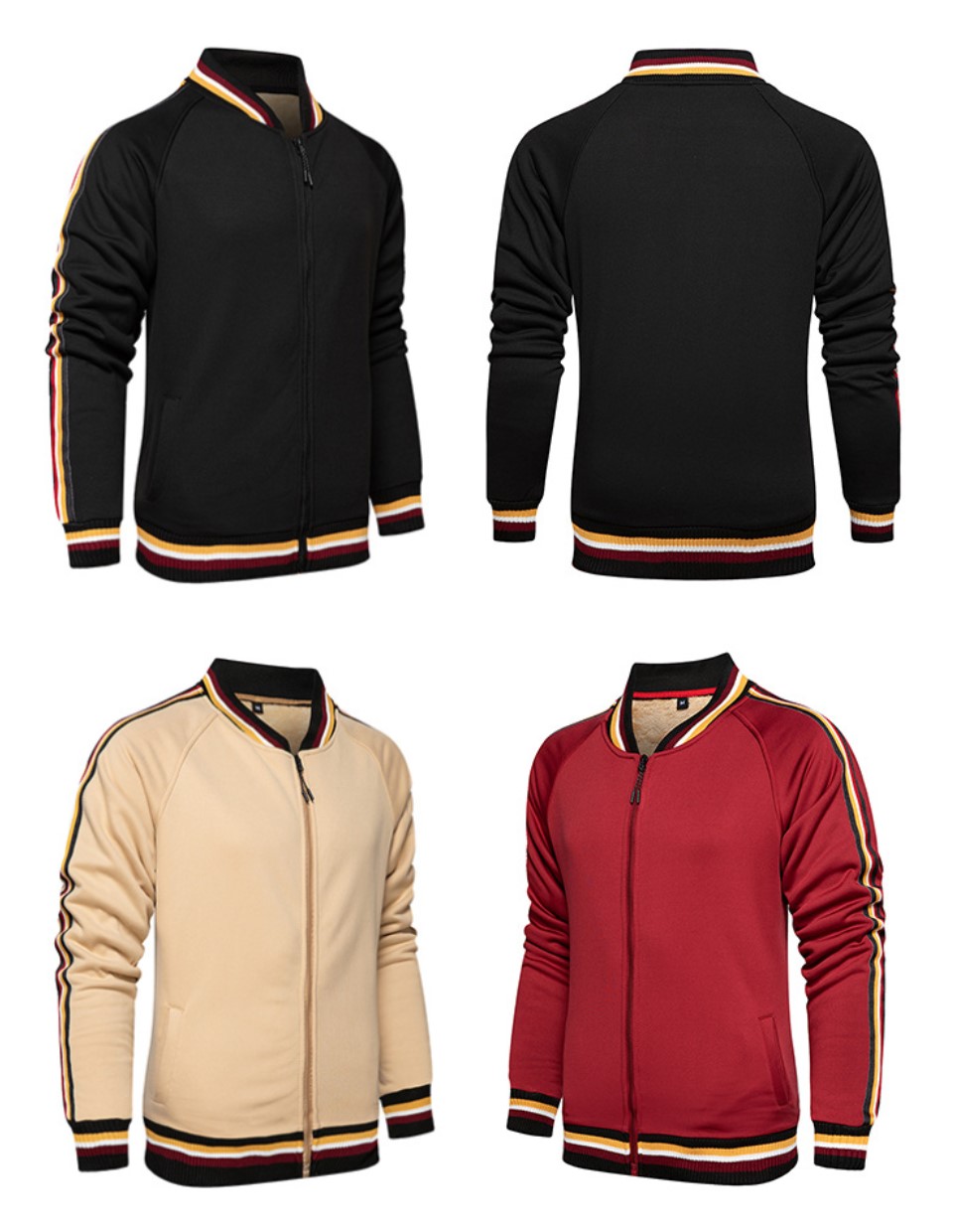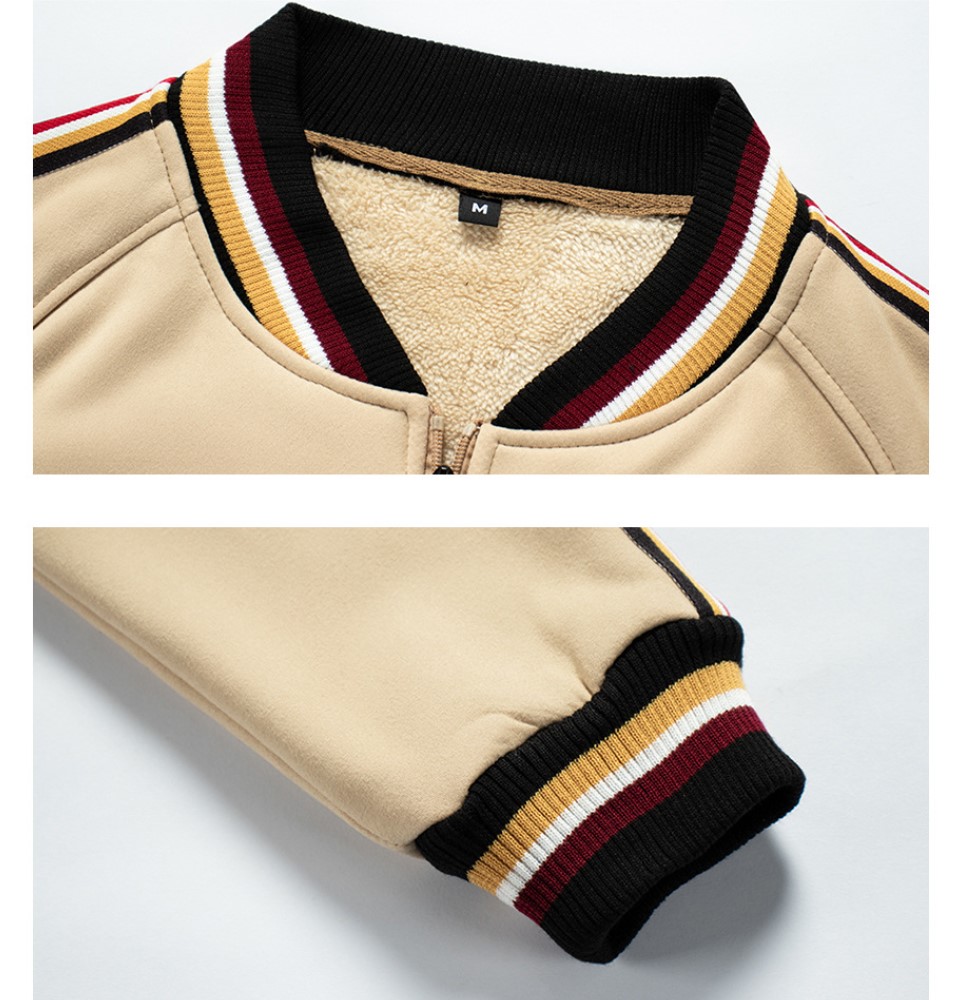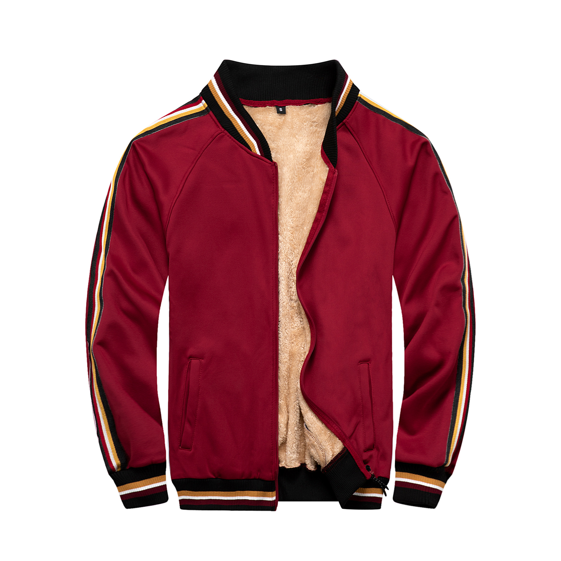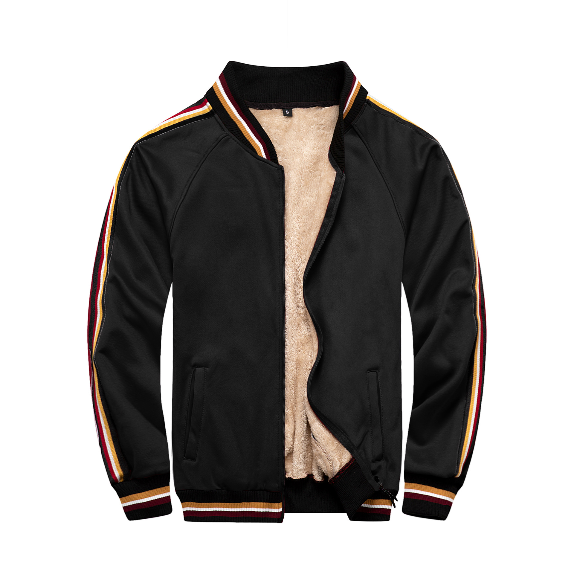 Mens winter zip jackets color block stripe sweatshirts warm fur lining coats