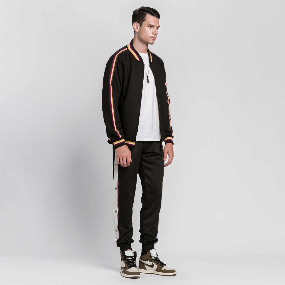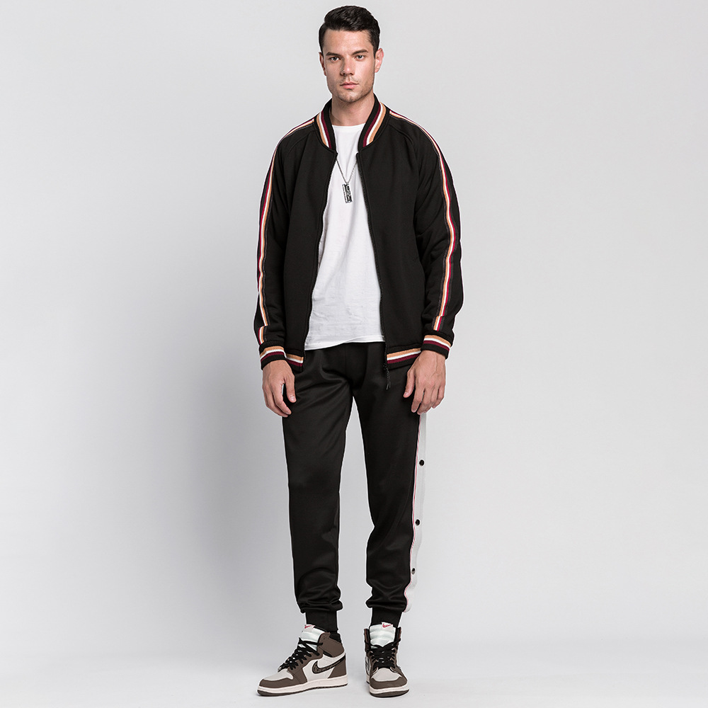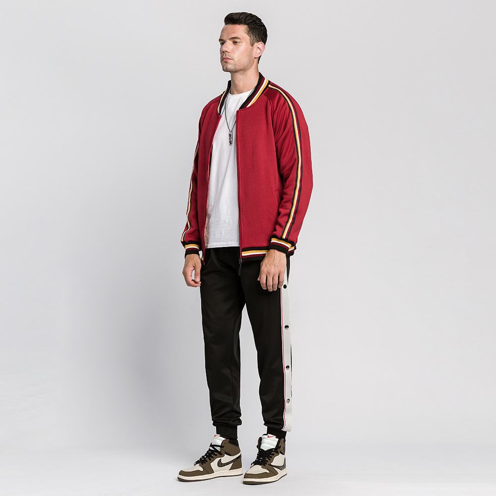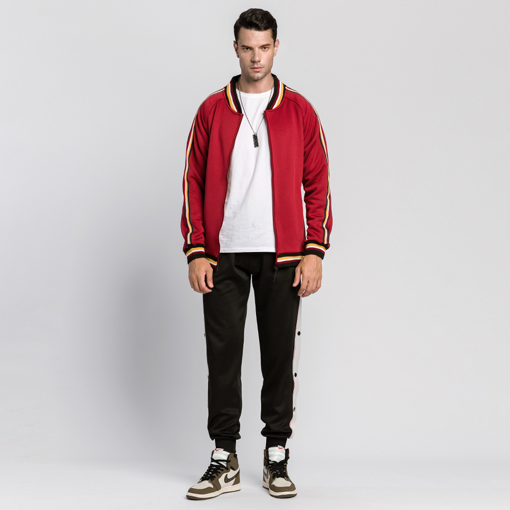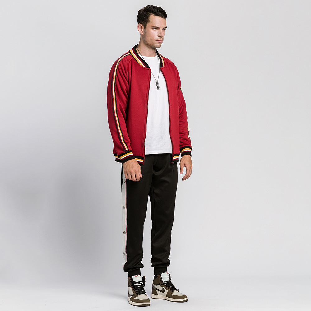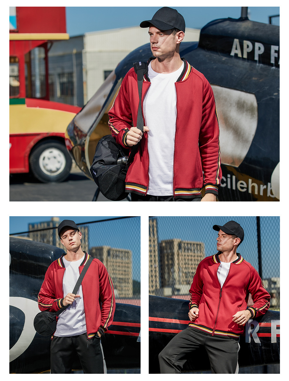 Mens winter zip jackets color block stripe sweatshirts warm fur lining coats