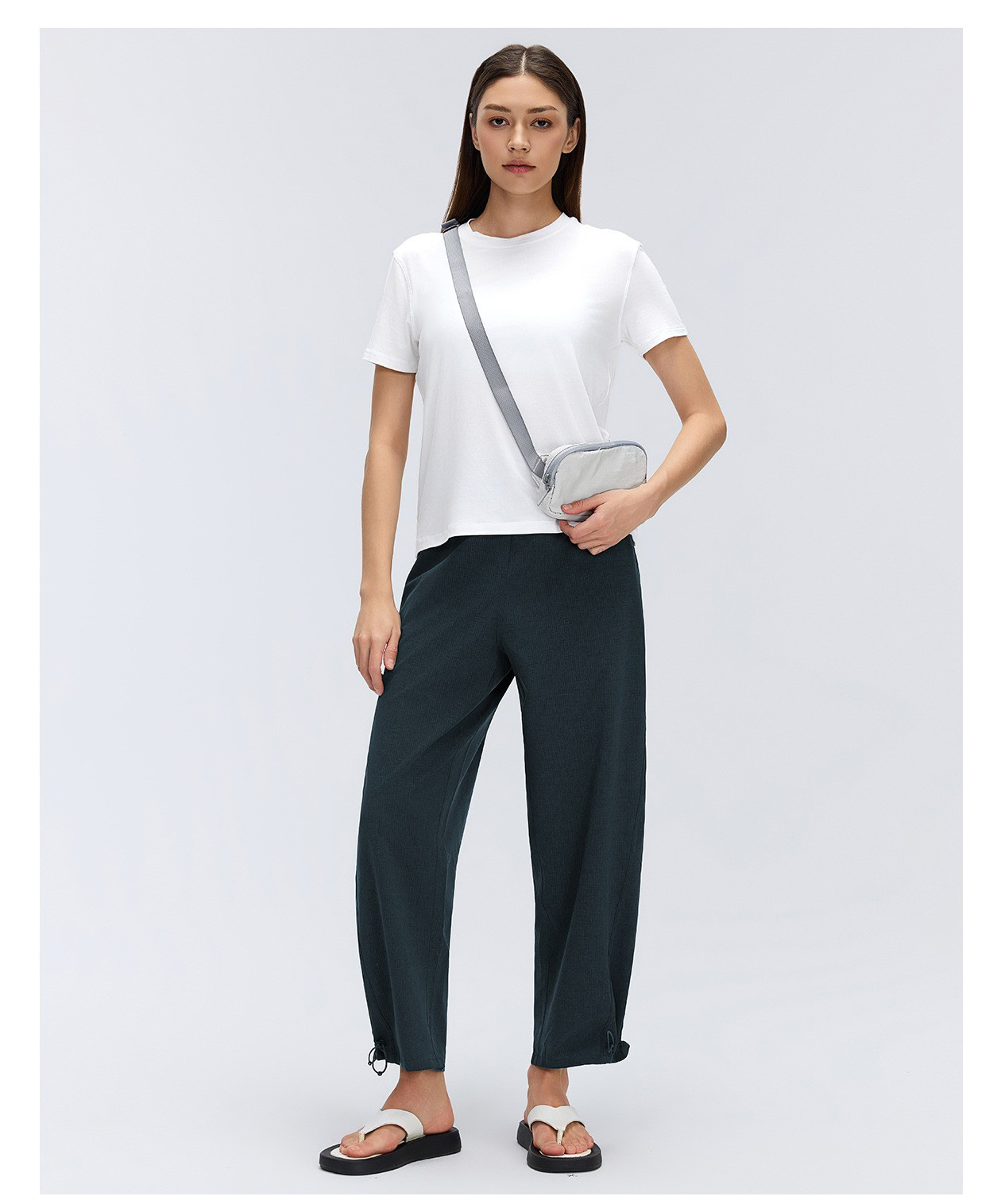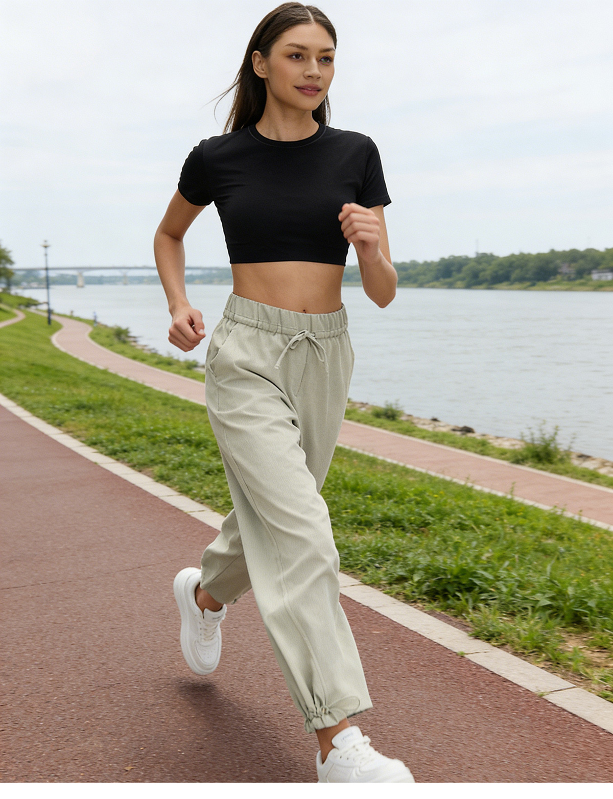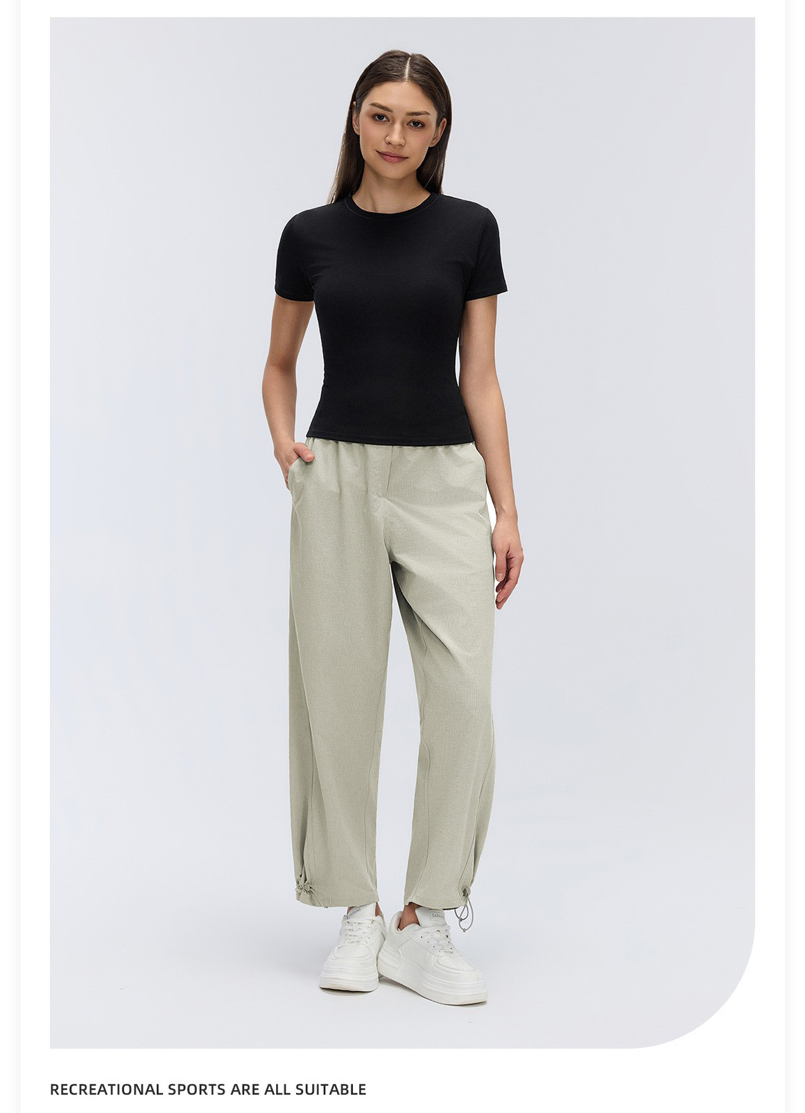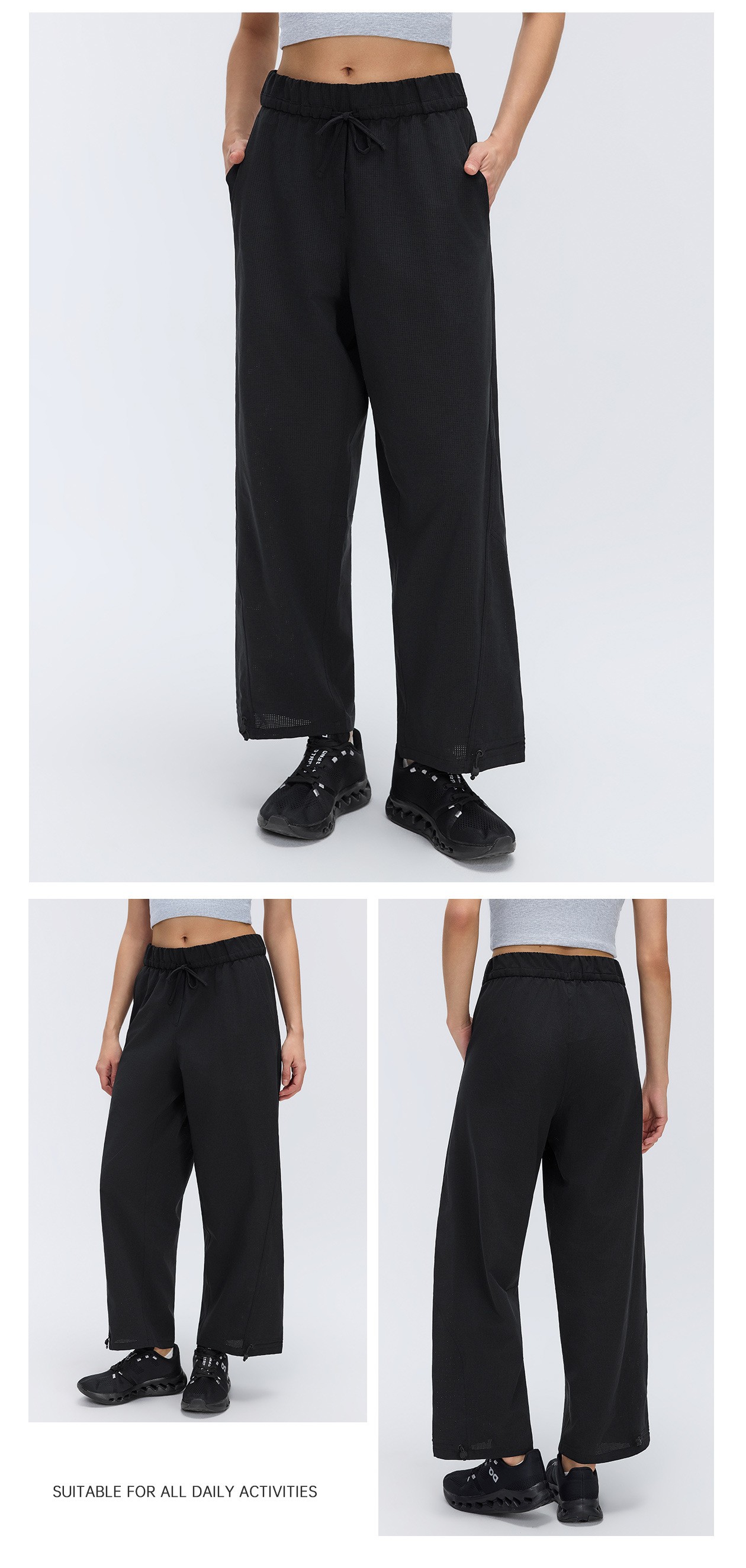 Women’s Casual Drawstring Ankle Pants Spring Summer Breathable Quick Dry Fitness Workout Cropped Trousers: These women’s casual drawstring ankle pants are perfect for spring and summer. Simple, versatile and lightweight, with quick-dry and breathable fabric, ideal for fitness, workout, running and daily casual wear. Elastic waist and adjustable drawstring ankle design ensure a comfortable fit. Omi Apparel Limited supports direct factory bulk customization. We accept custom logo, color, size and style. Stable quality, competitive price and on-time delivery. Choose us for reliable fitness apparel supply.