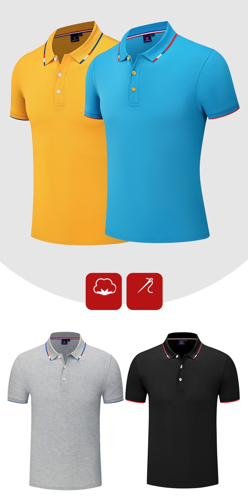 Unisex lapel silk cotton polo shirt school uniform workwear printed embroidery short sleeve tshirt