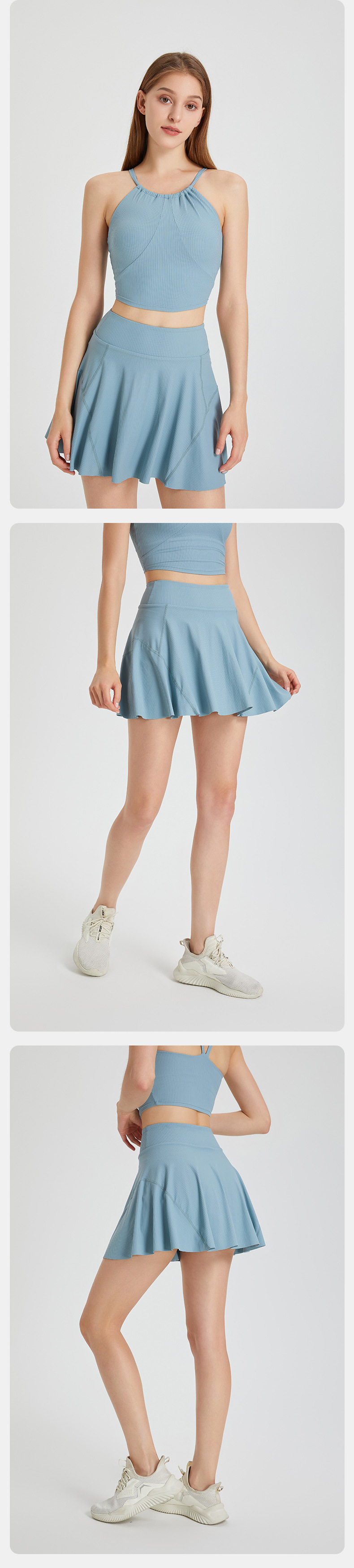 Women 2in1 high waist running sports skirt liner shorts tennis badminton fitness yoga pleated skirt