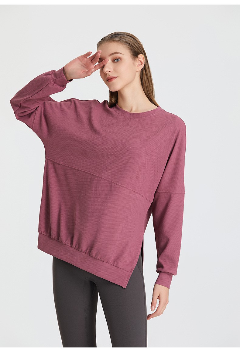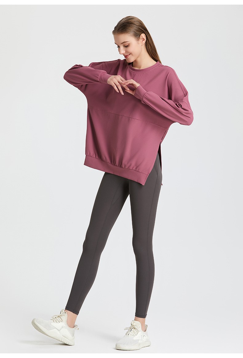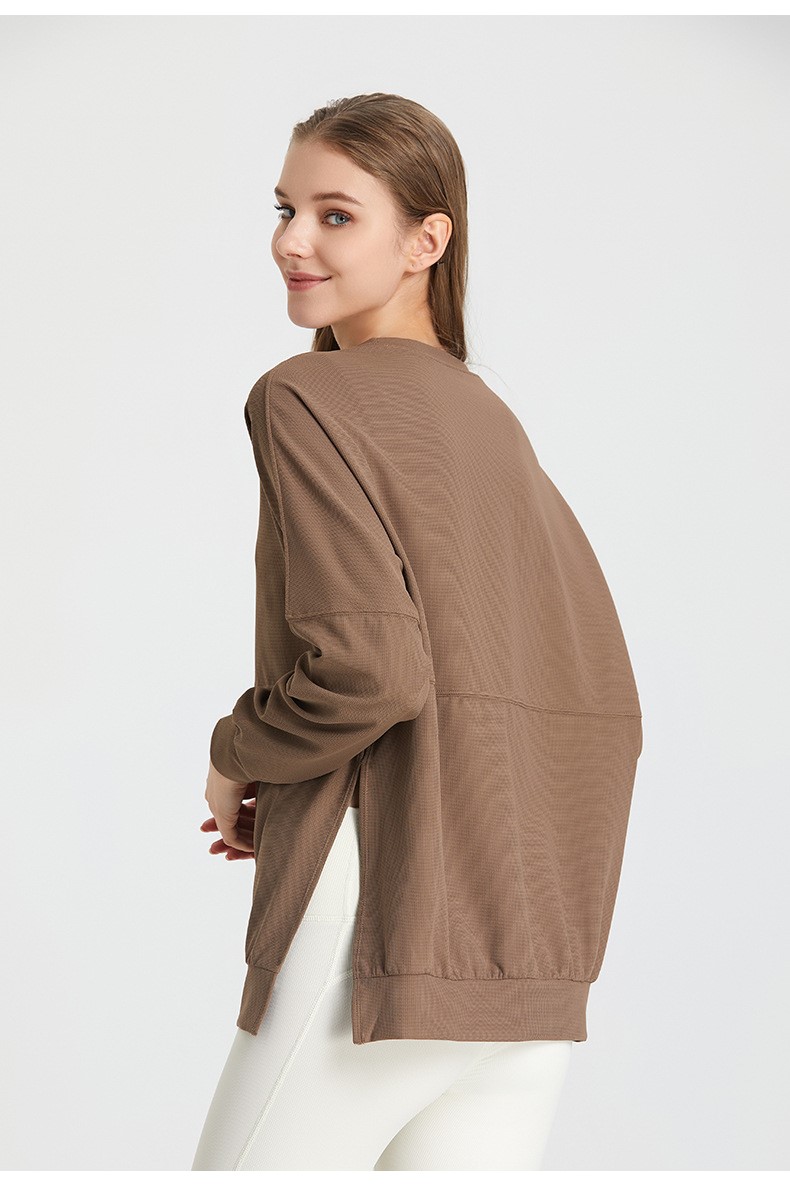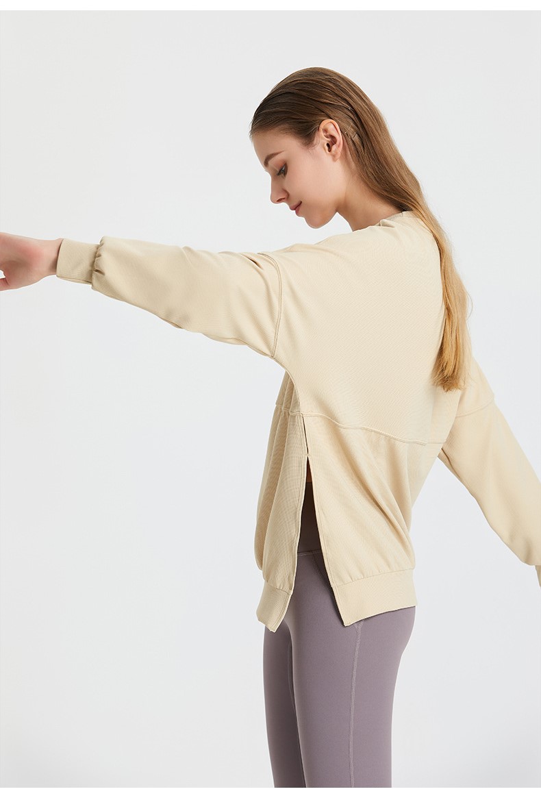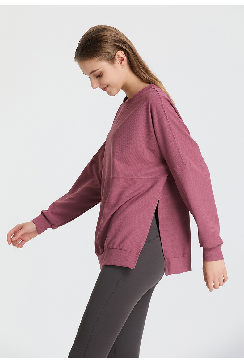 Women autumn loose waffle side split sports top casual running fitness yoga long sleeve tshirts