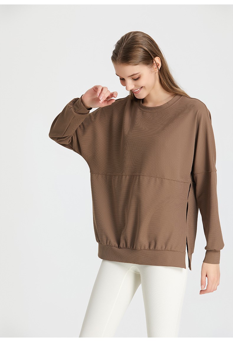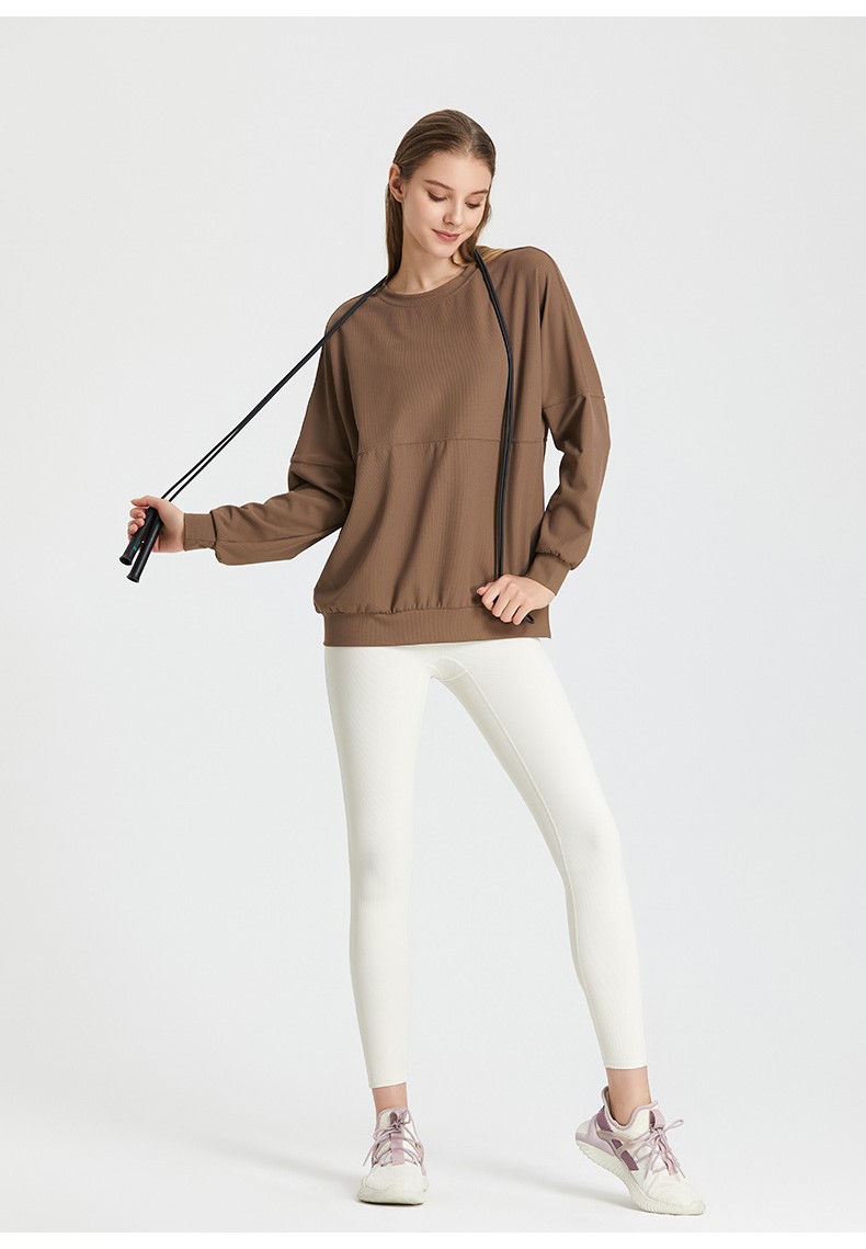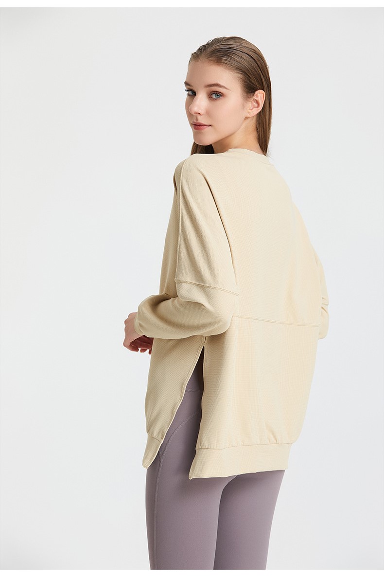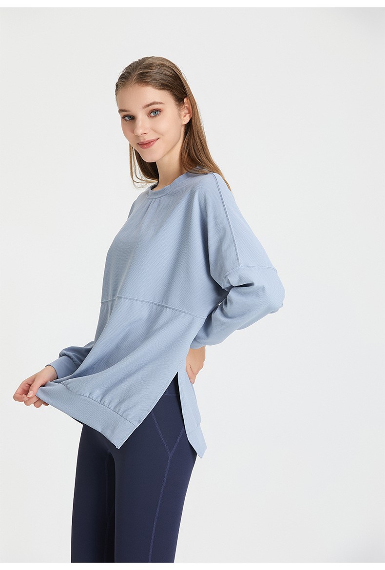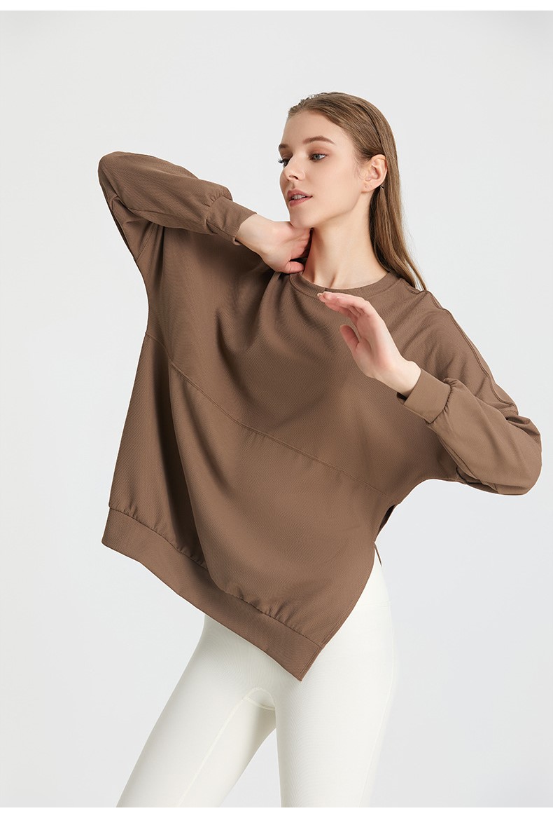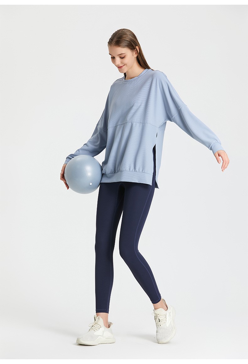 Women autumn loose waffle side split sports top casual running fitness yoga long sleeve tshirts