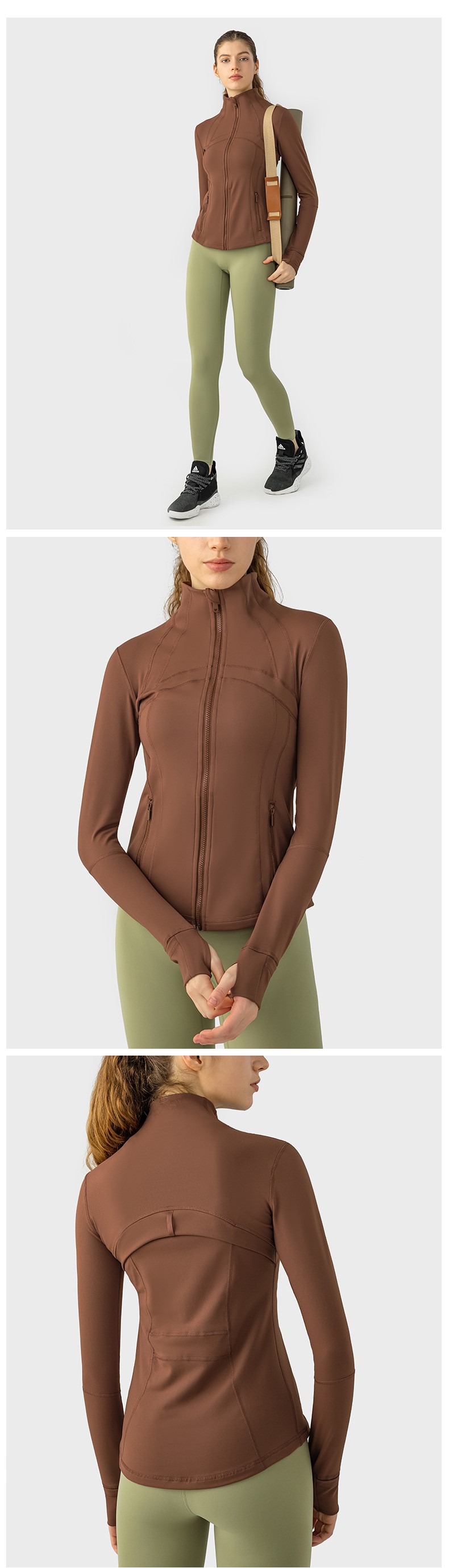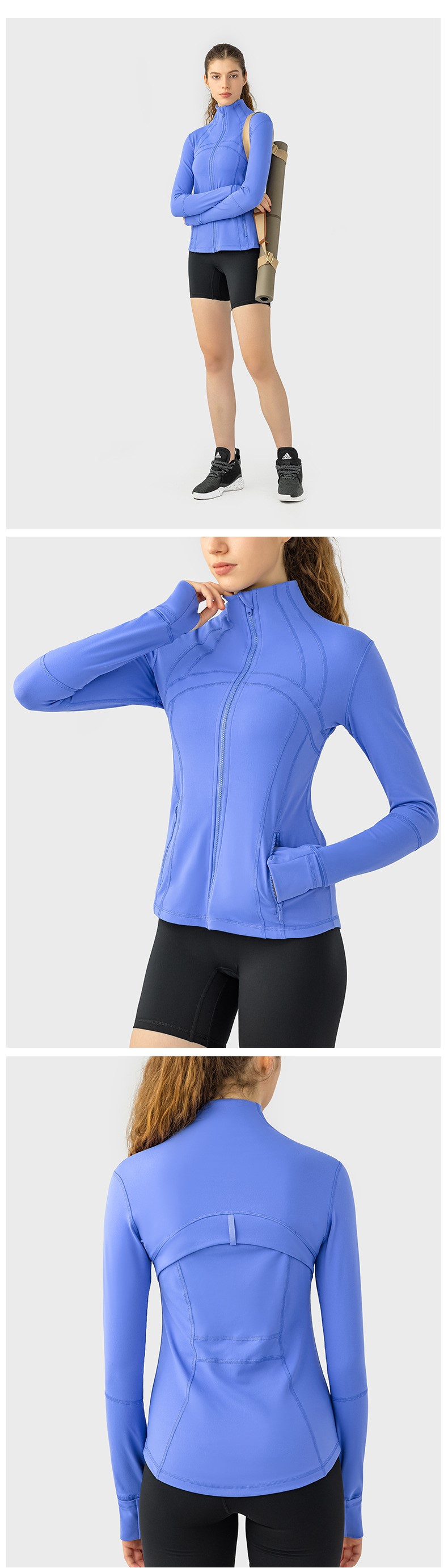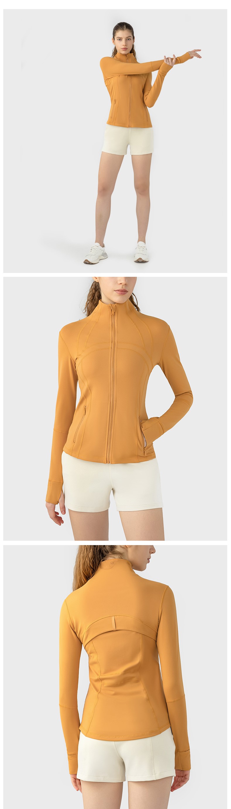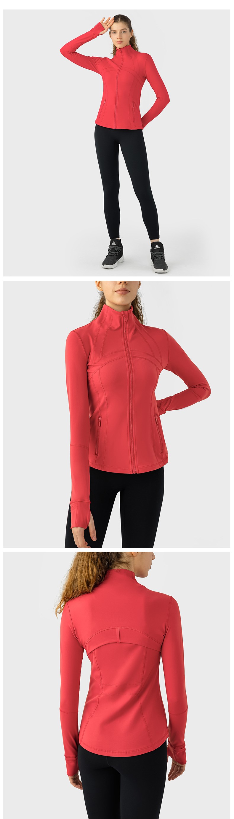 Women autumn winter yoga sports coat nylon spandex zip running fitness long sleeve gym jacket