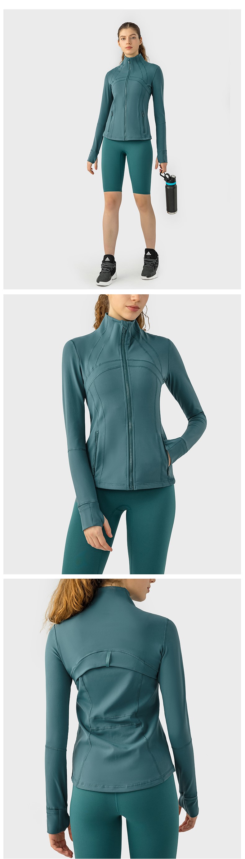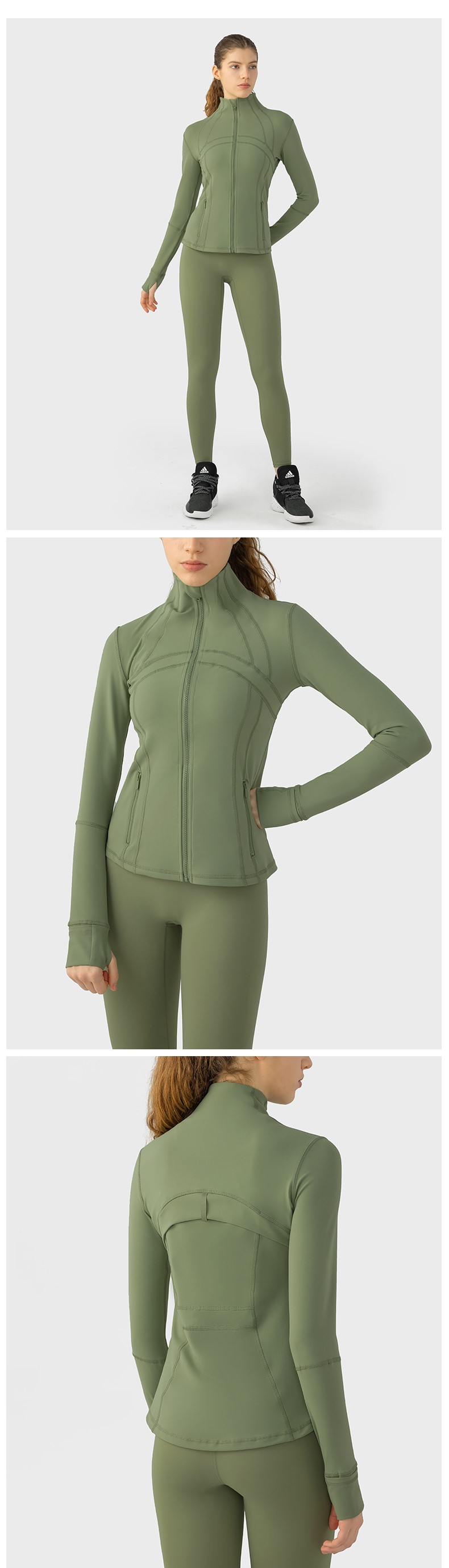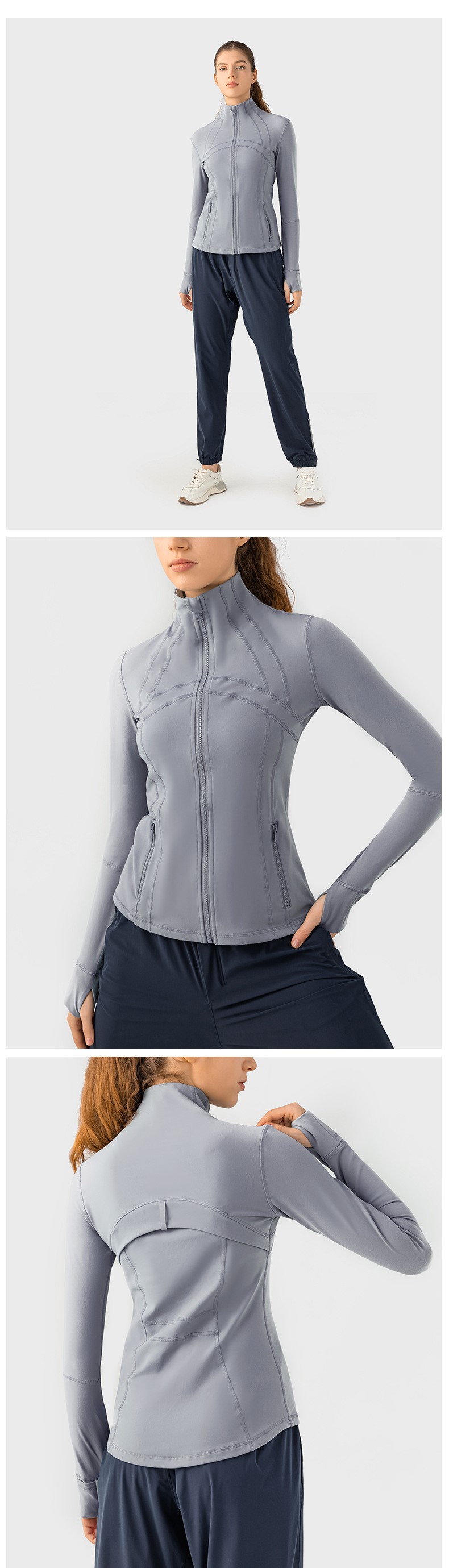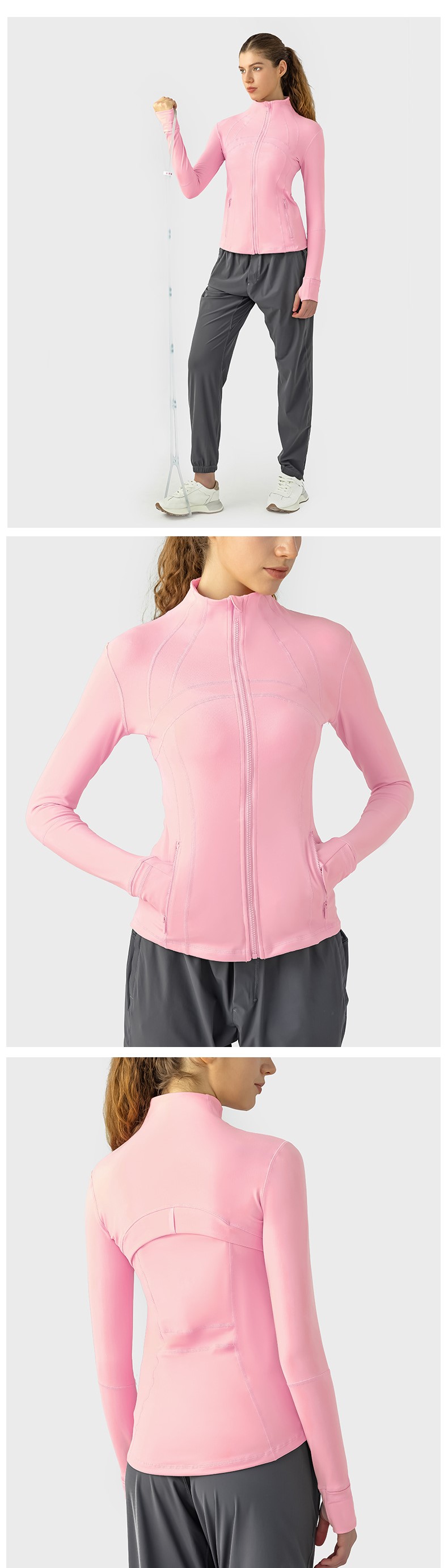 Women autumn winter yoga sports coat nylon spandex zip running fitness long sleeve gym jacket