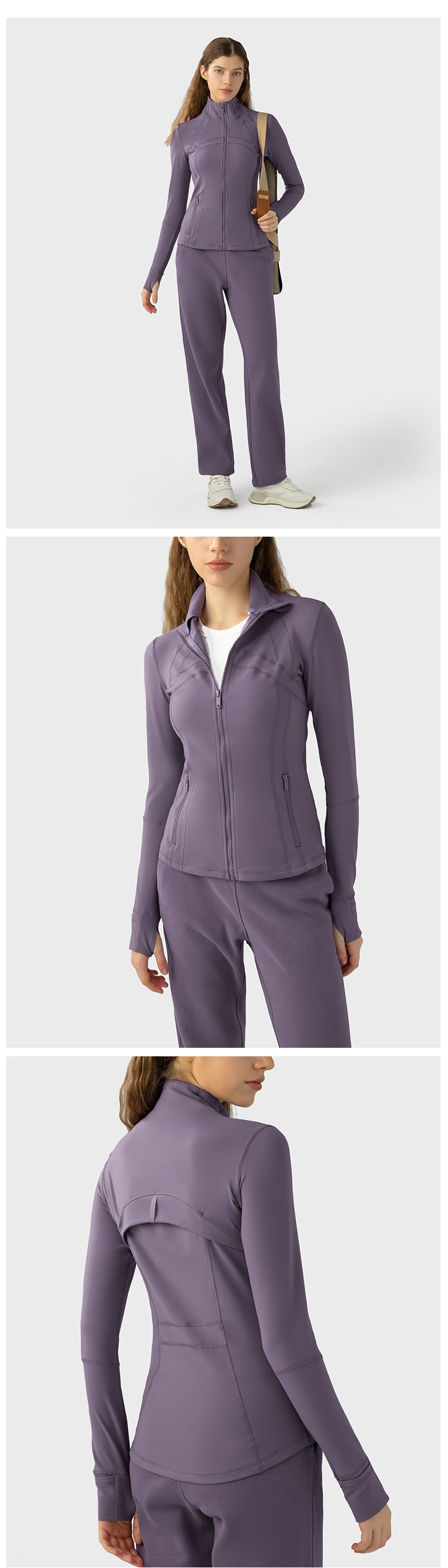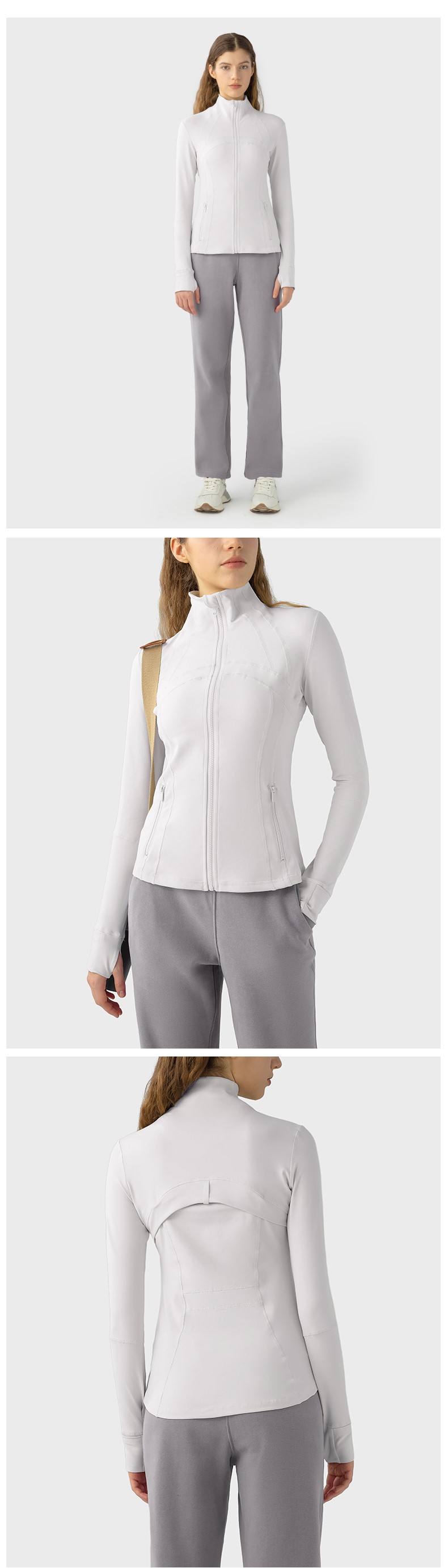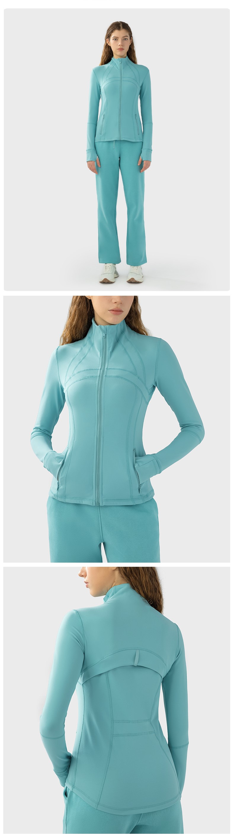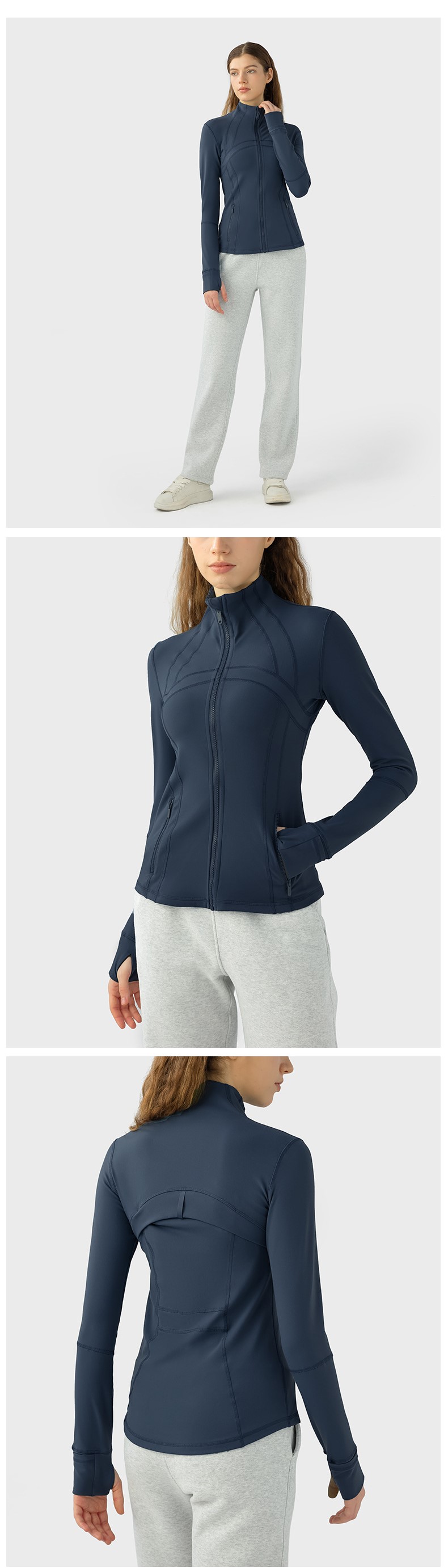 Women autumn winter yoga sports coat nylon spandex zip running fitness long sleeve gym jacket
