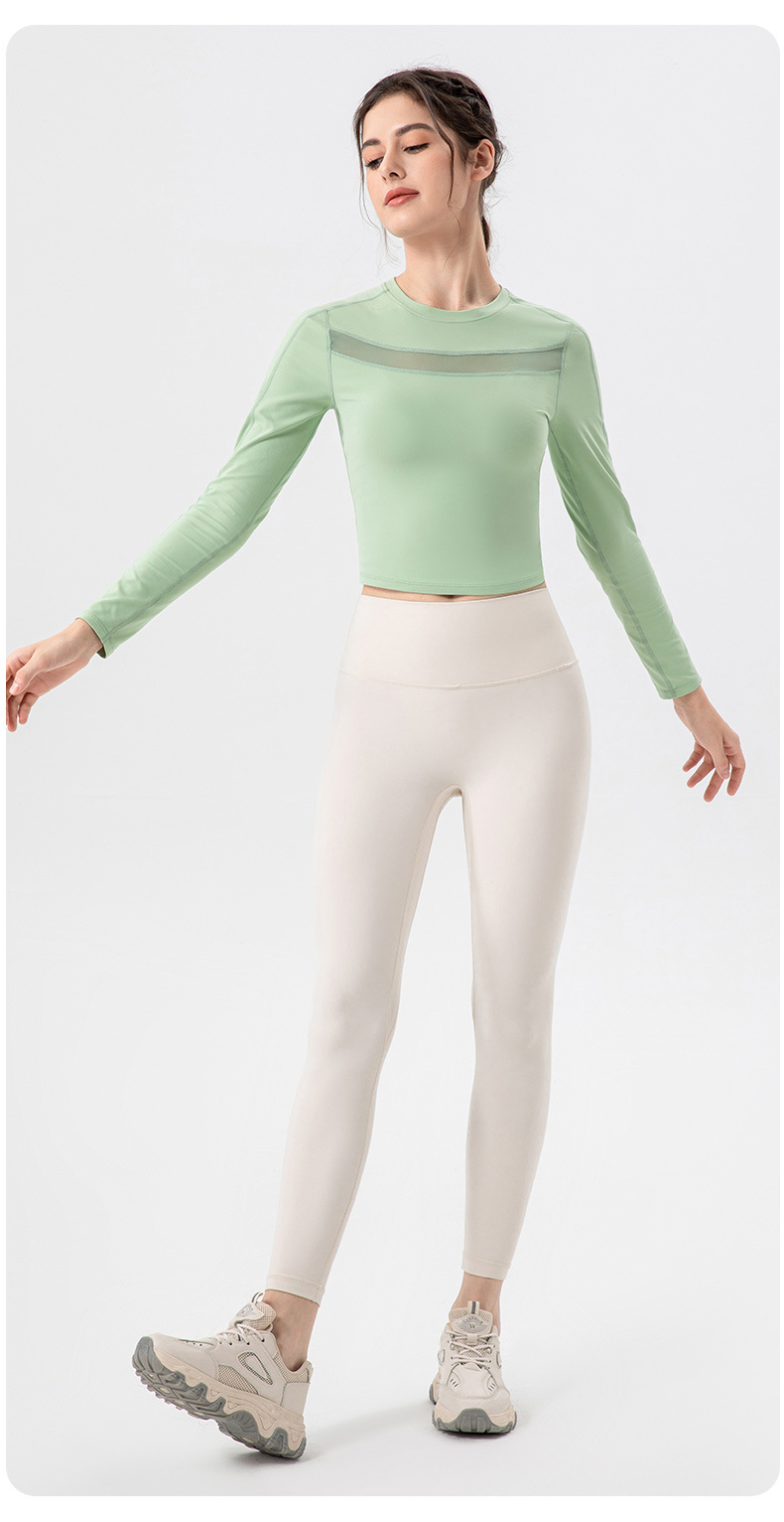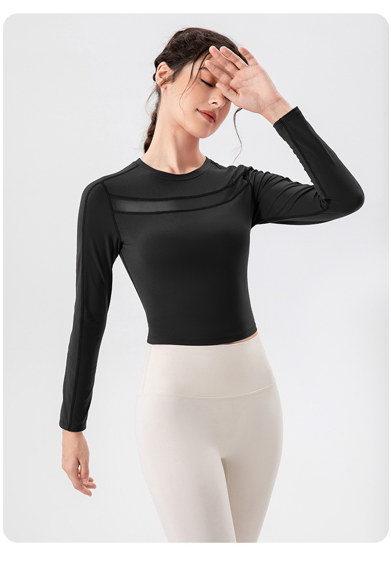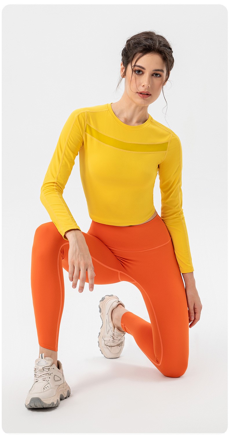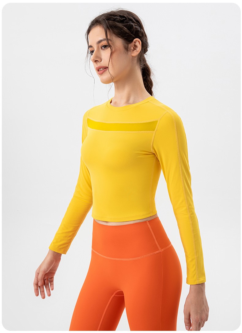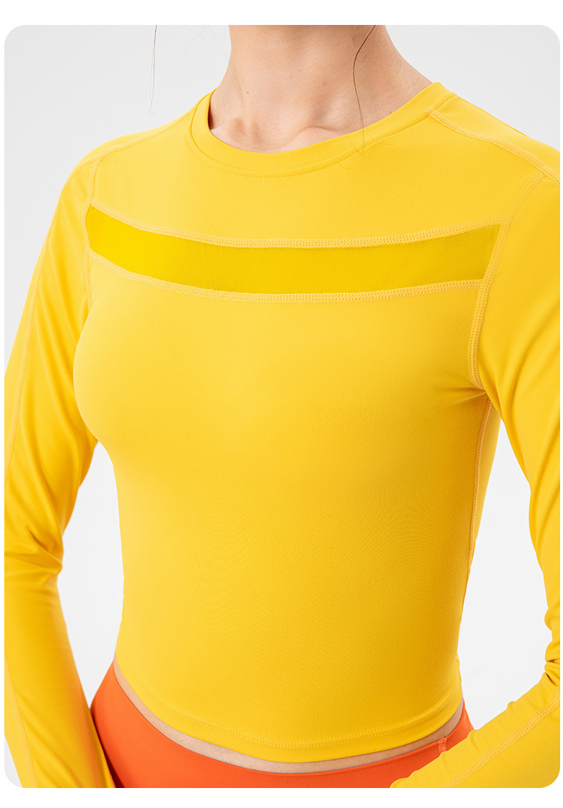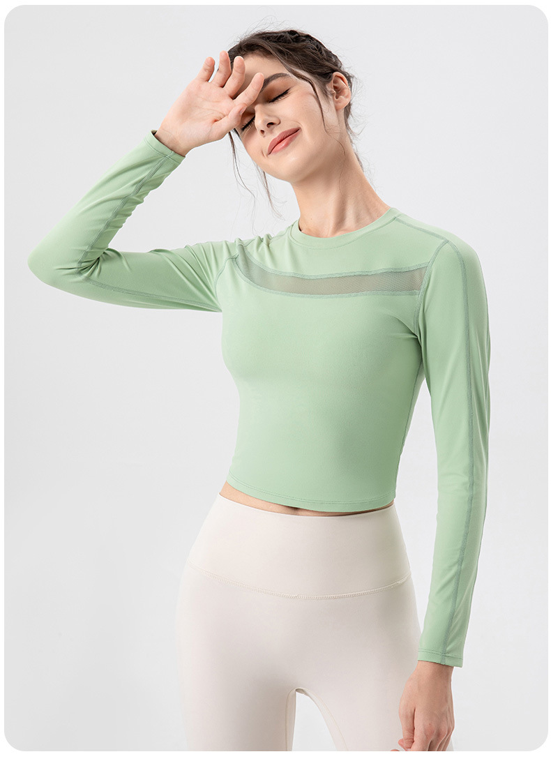Women autumn yoga long sleeve sweatshirt breathable mesh patchwork tights running crop top