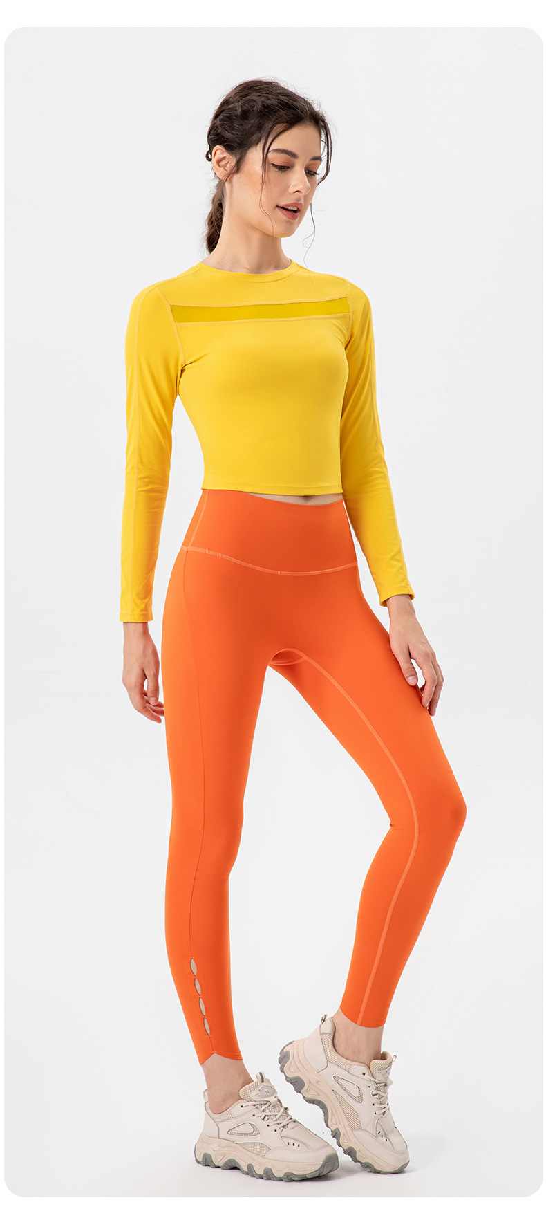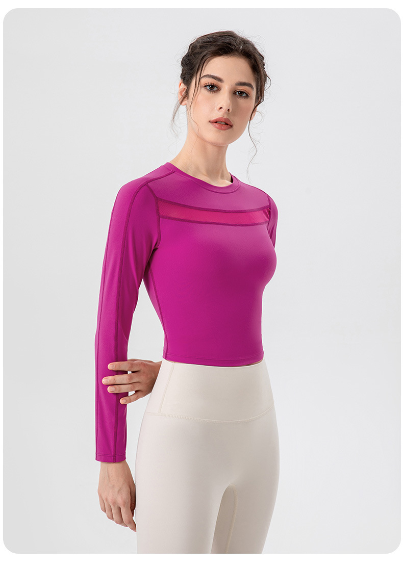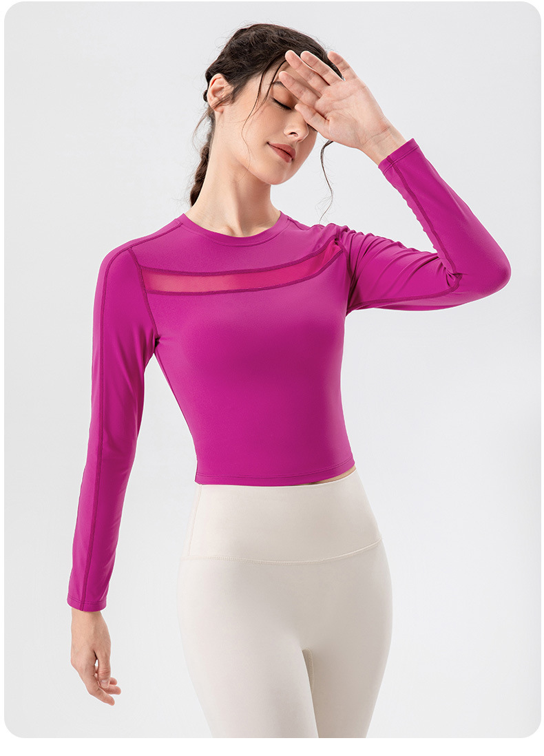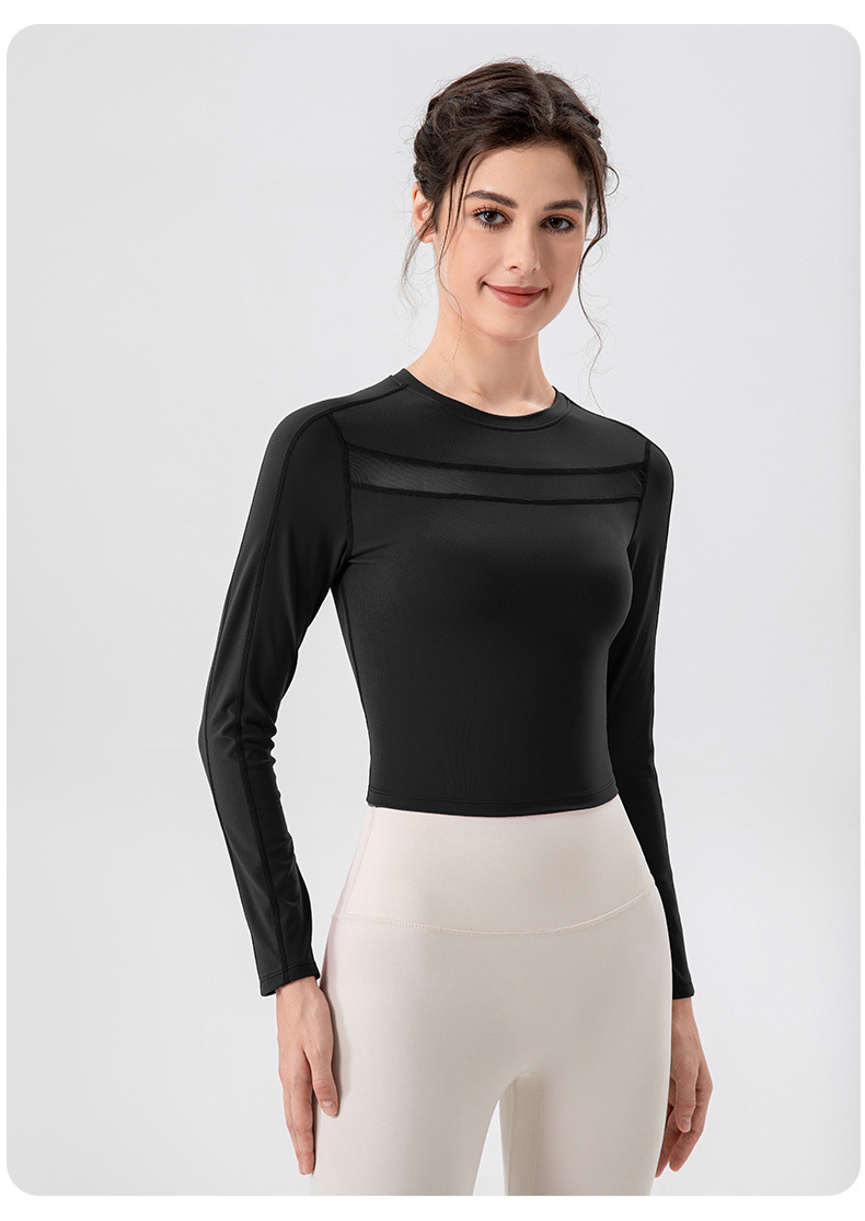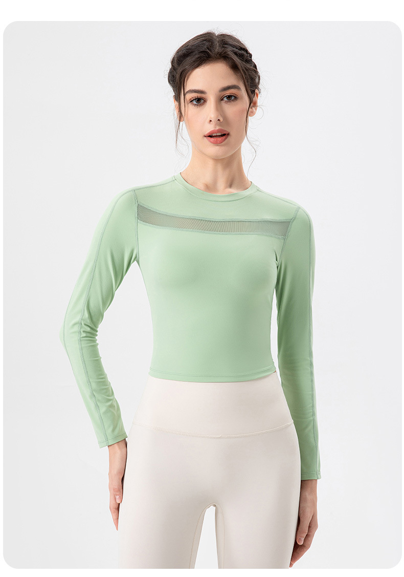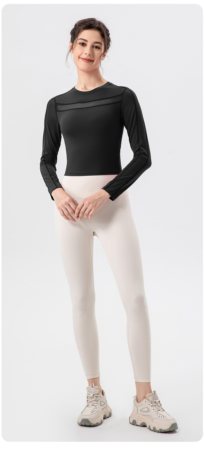 Women autumn yoga long sleeve sweatshirt breathable mesh patchwork tights running crop top