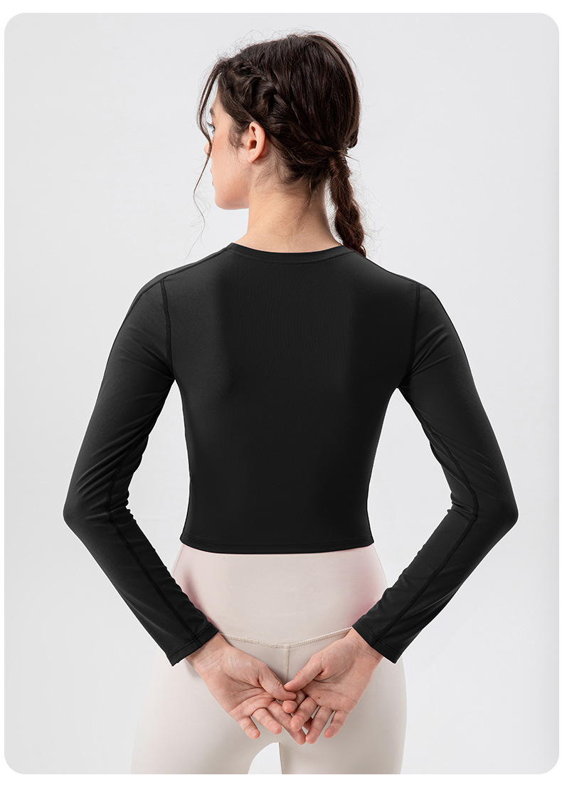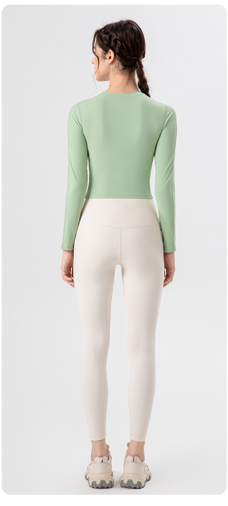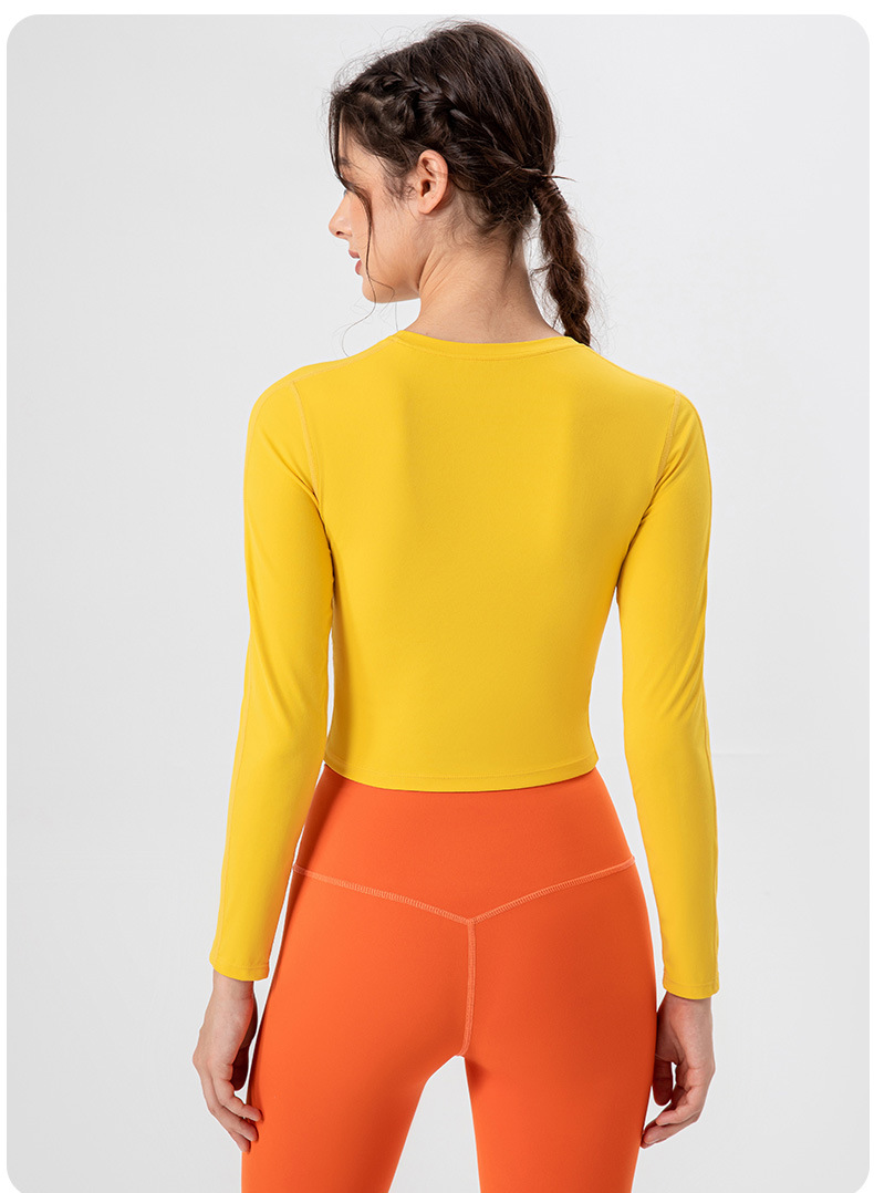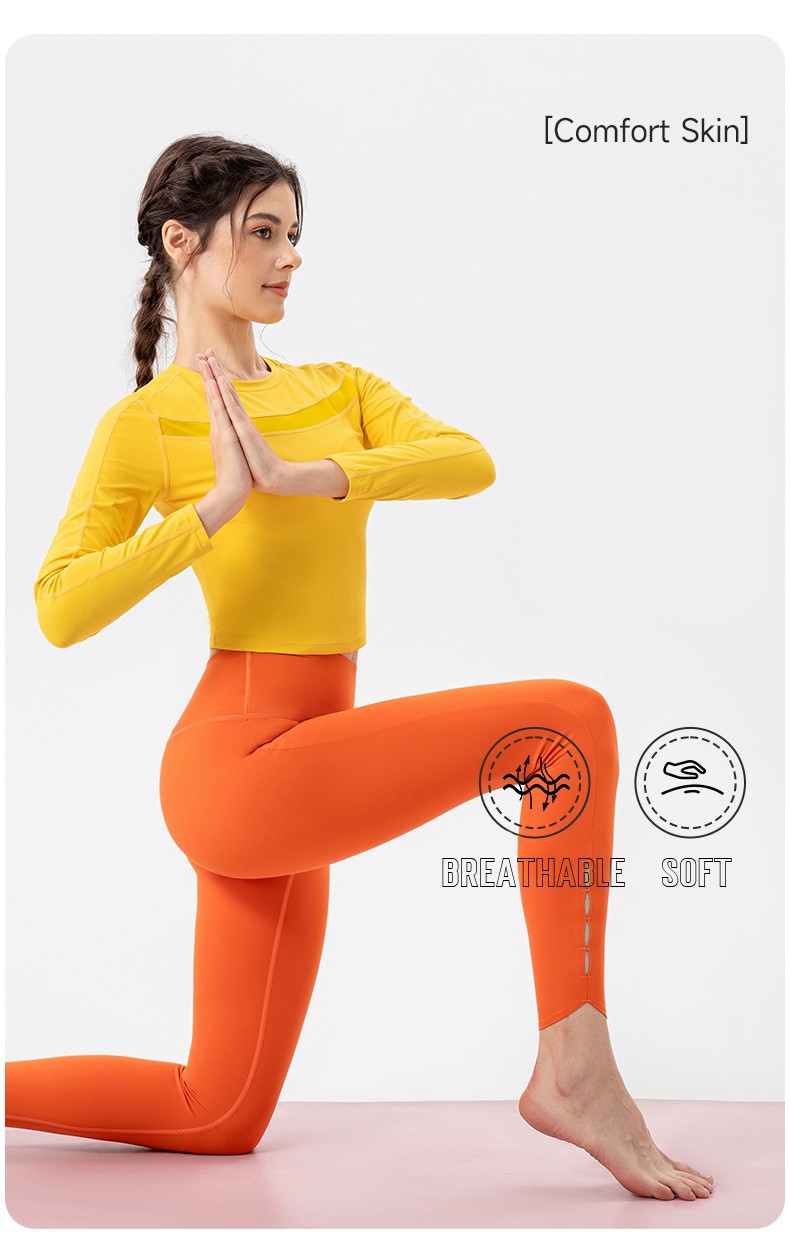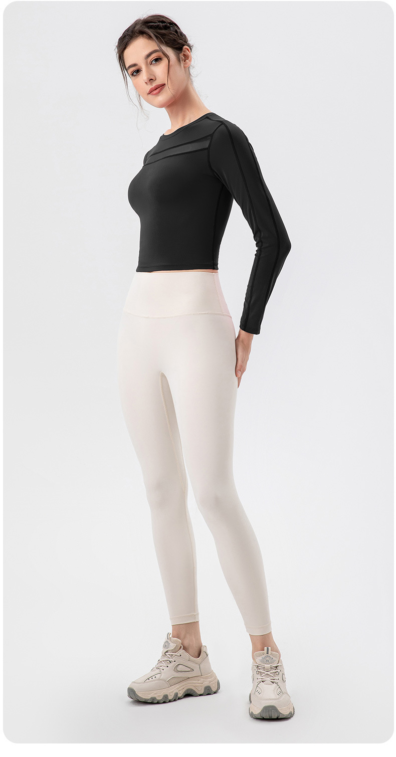 Women autumn yoga long sleeve sweatshirt breathable mesh patchwork tights running crop top