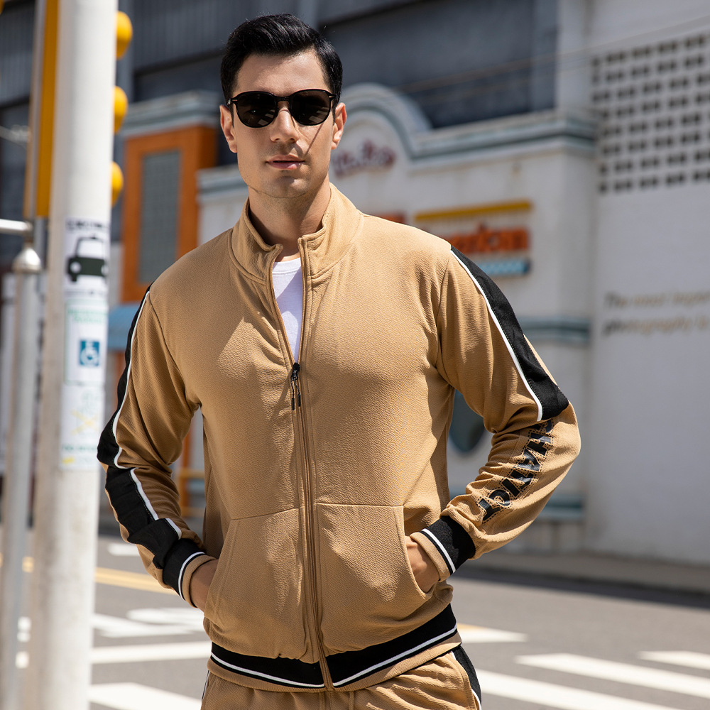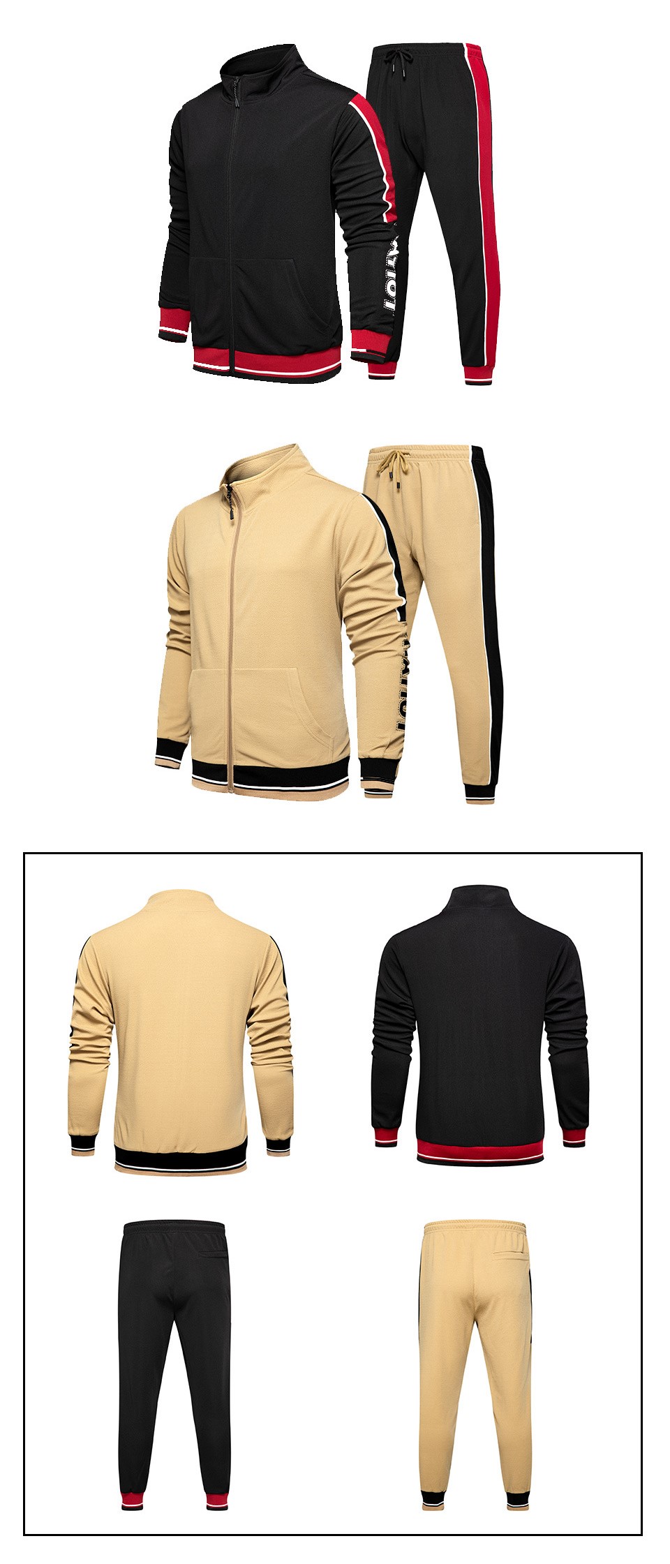 Men color block tracksuits zip up jackets stripe drawstring trackpants running fleece sweatsuits