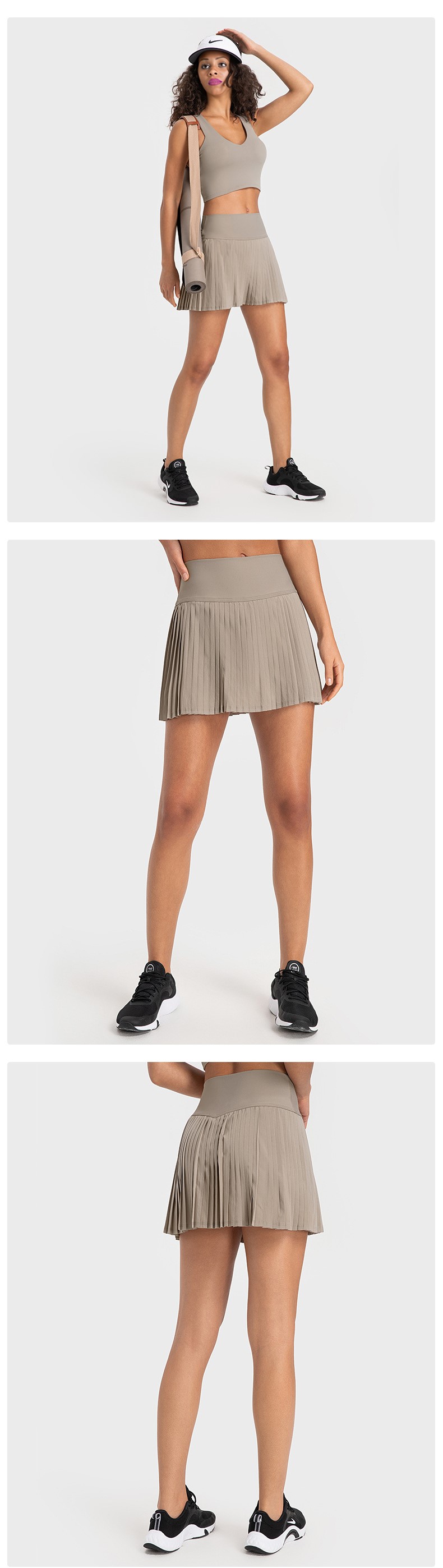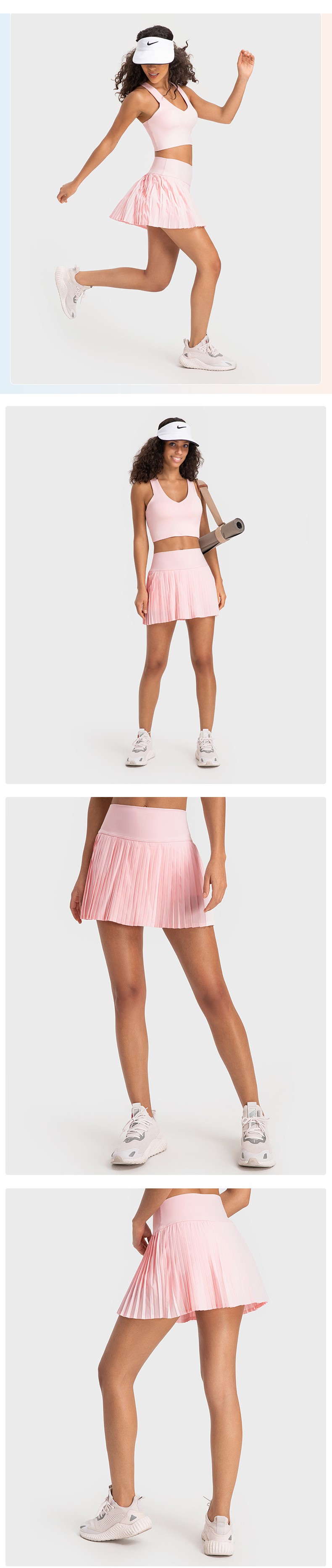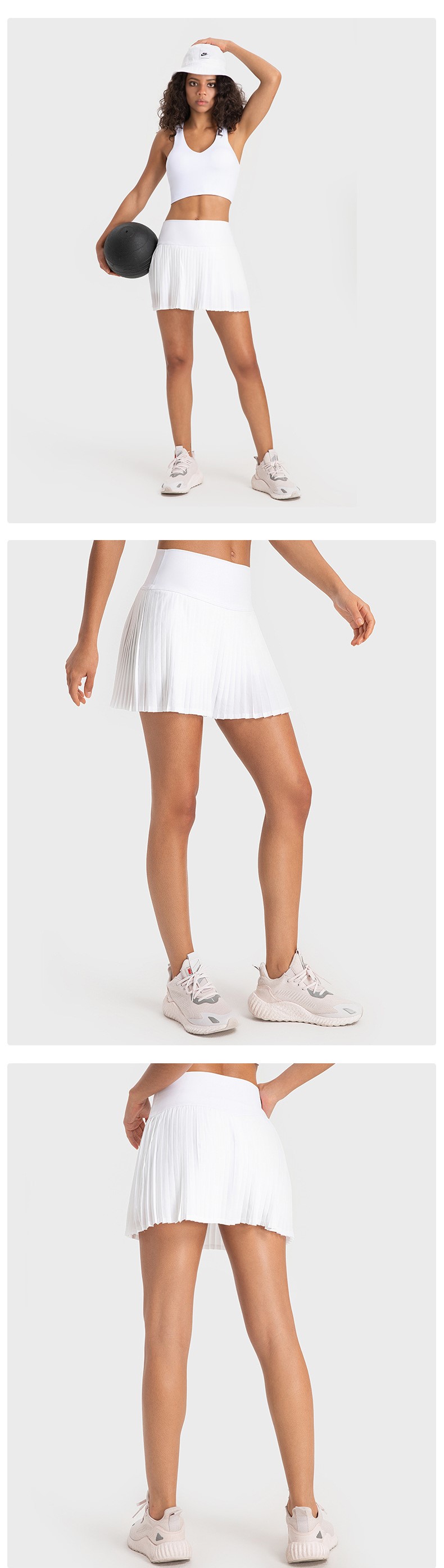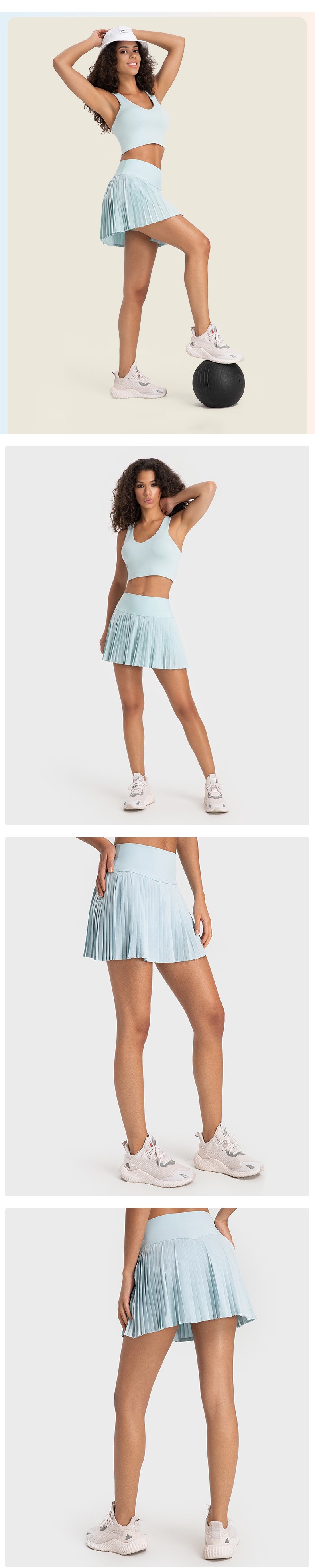 Women cool stretch high rise tummy control fashion pleated skirt 2 in 1 tennis shorts with pocket