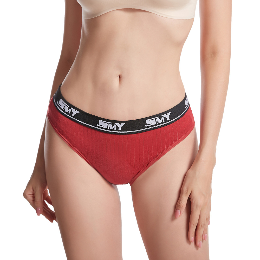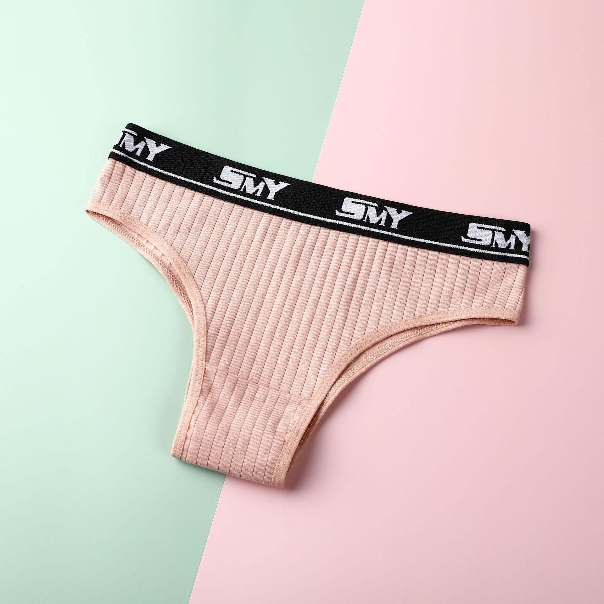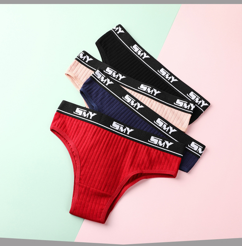 Women cotton underwear custom logo waistband rib briefs butt lift panties breathable triangle shorts