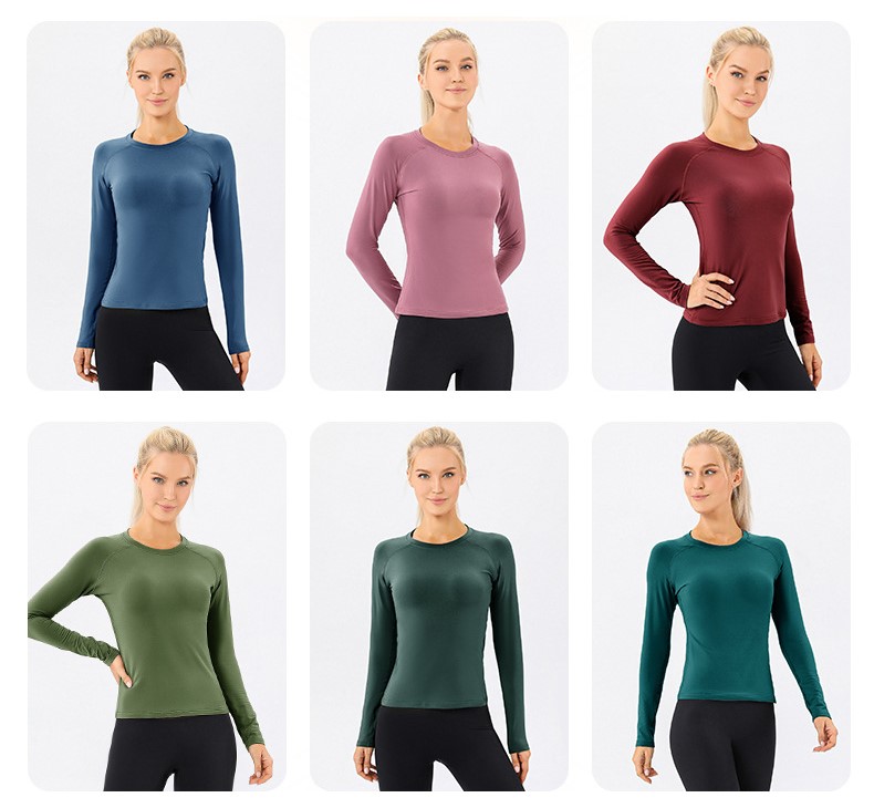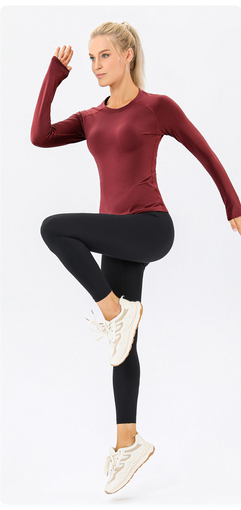 Women fall winter warm sports long sleeve stretch slim fit running top tracking sweatshirts