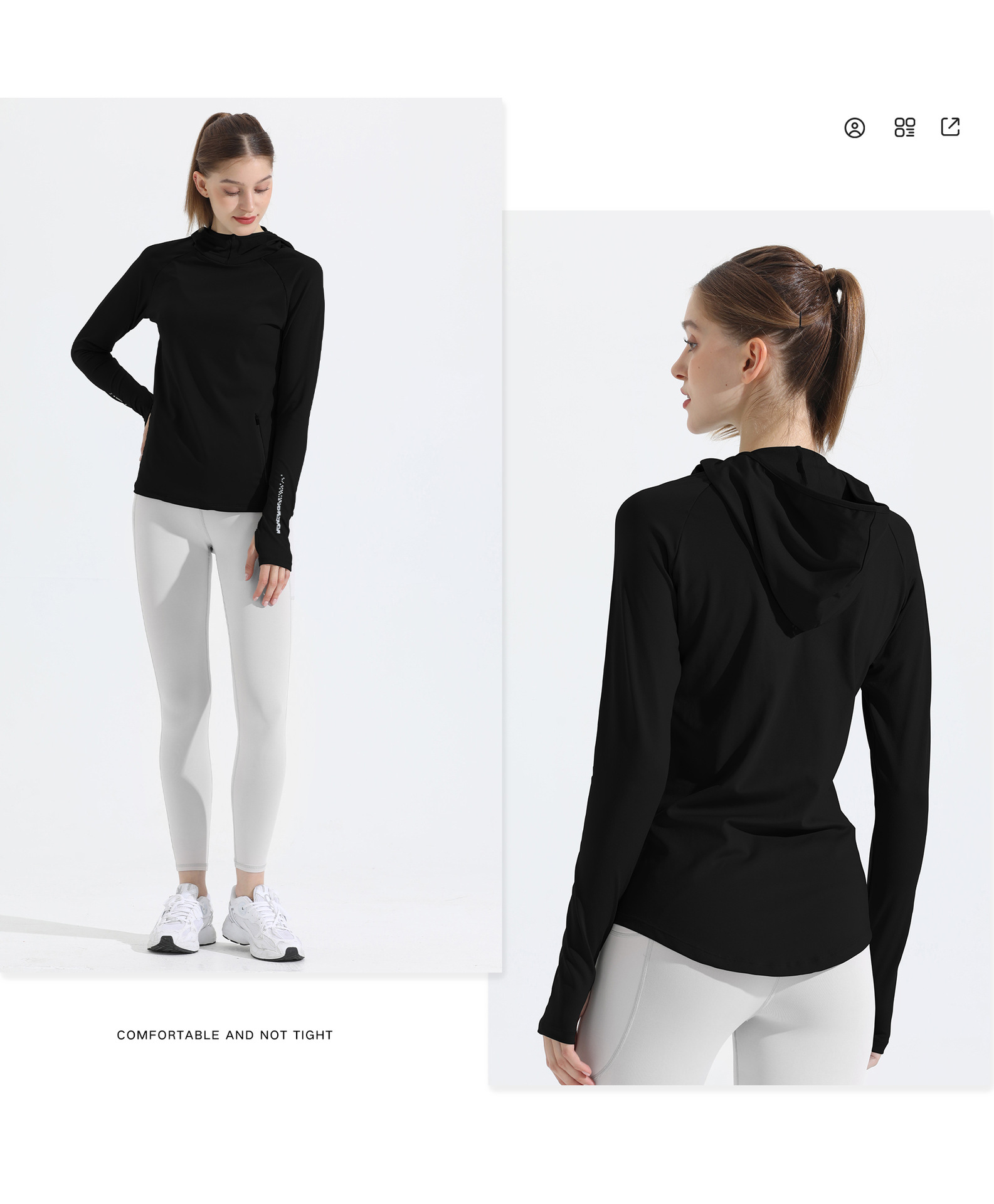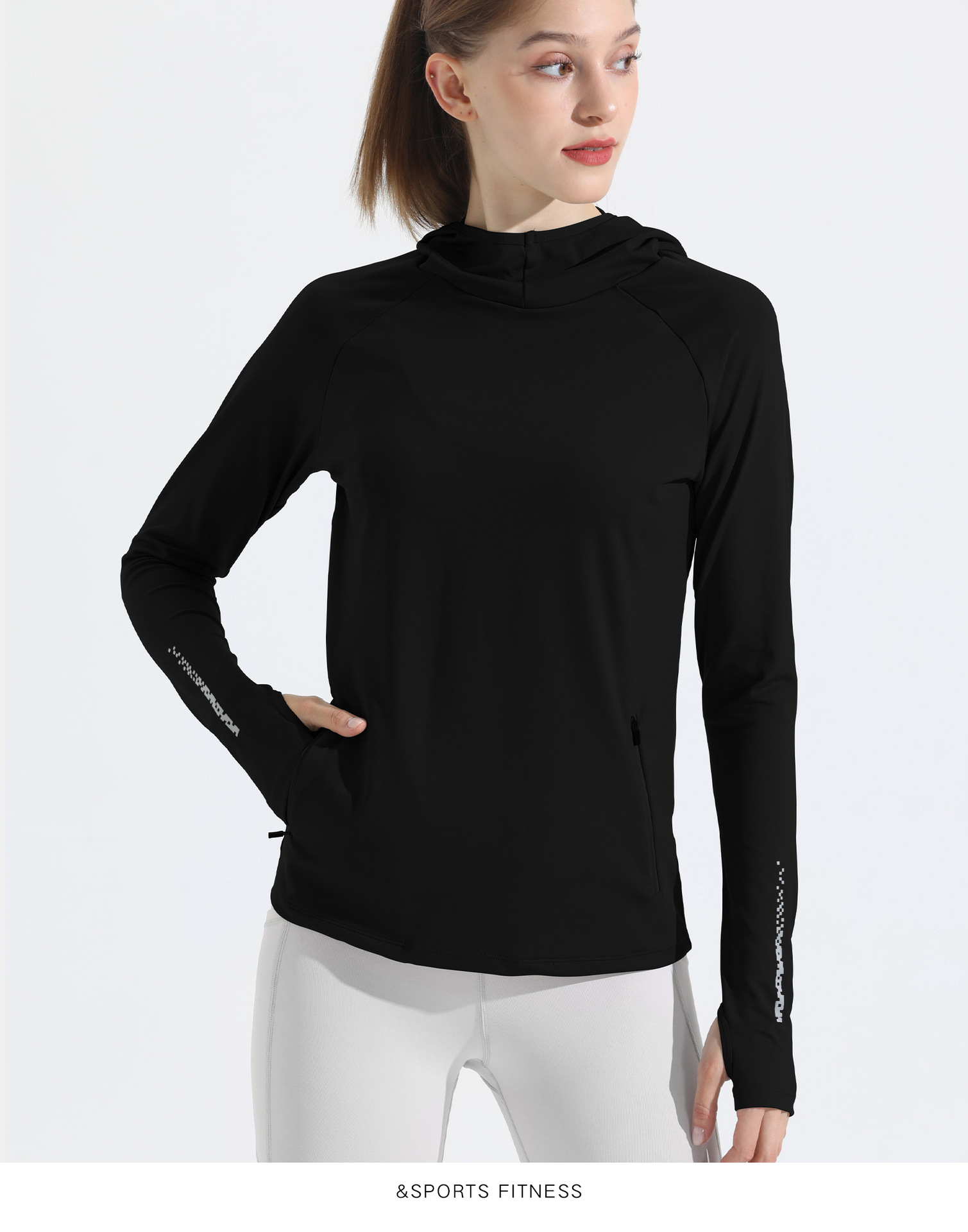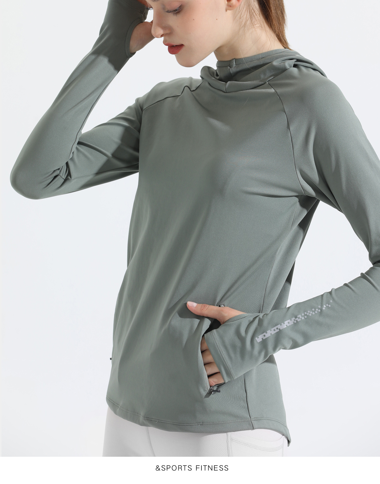 Women fitness hooded long sleeve sweatshirts outdoor running workout gym slim fit active top