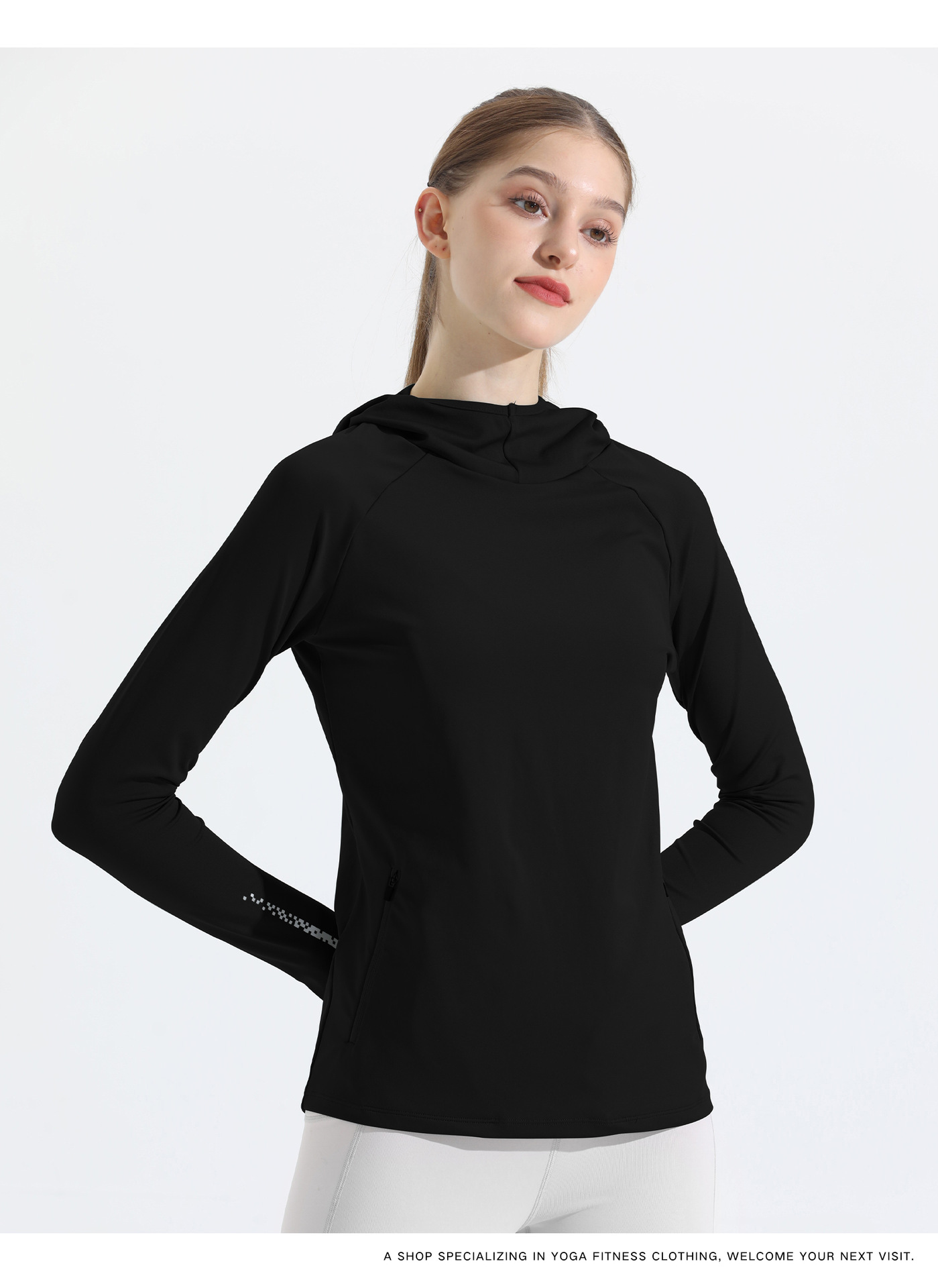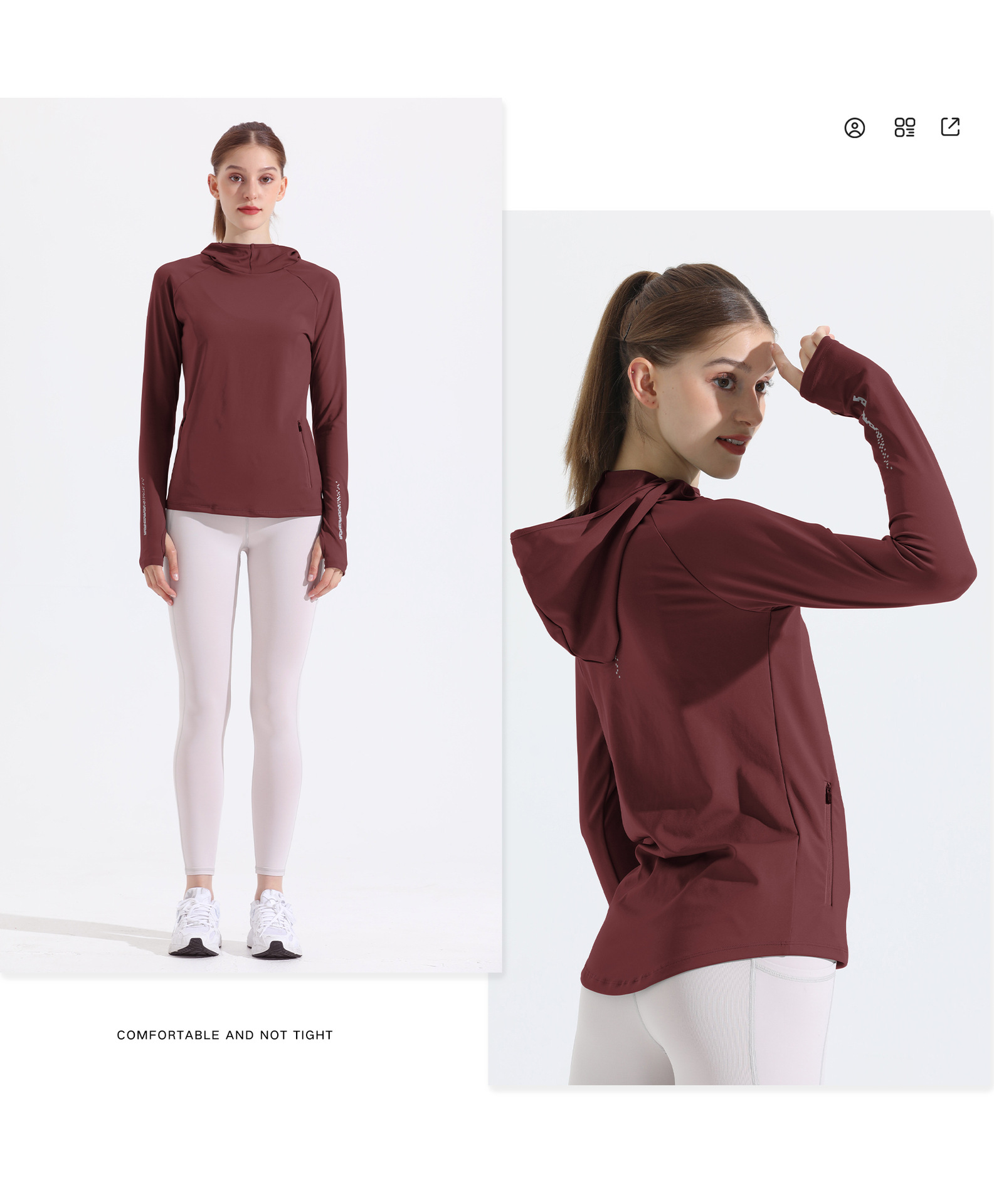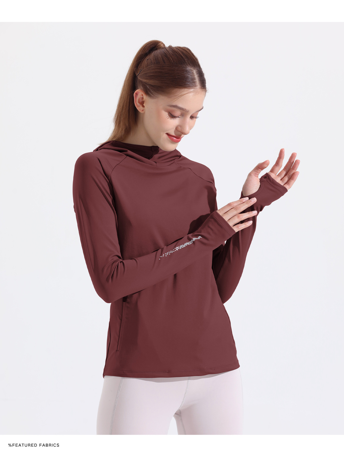 Women fitness hooded long sleeve sweatshirts outdoor running workout gym slim fit active top