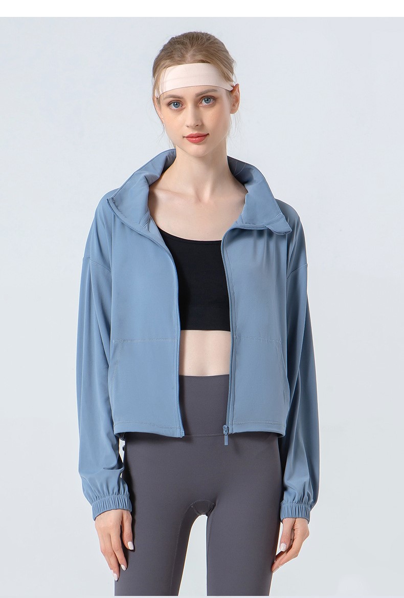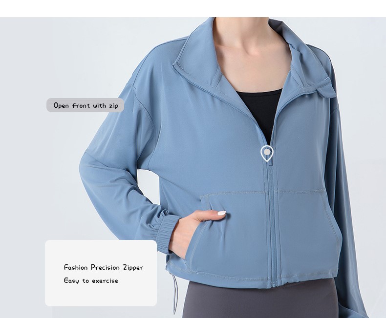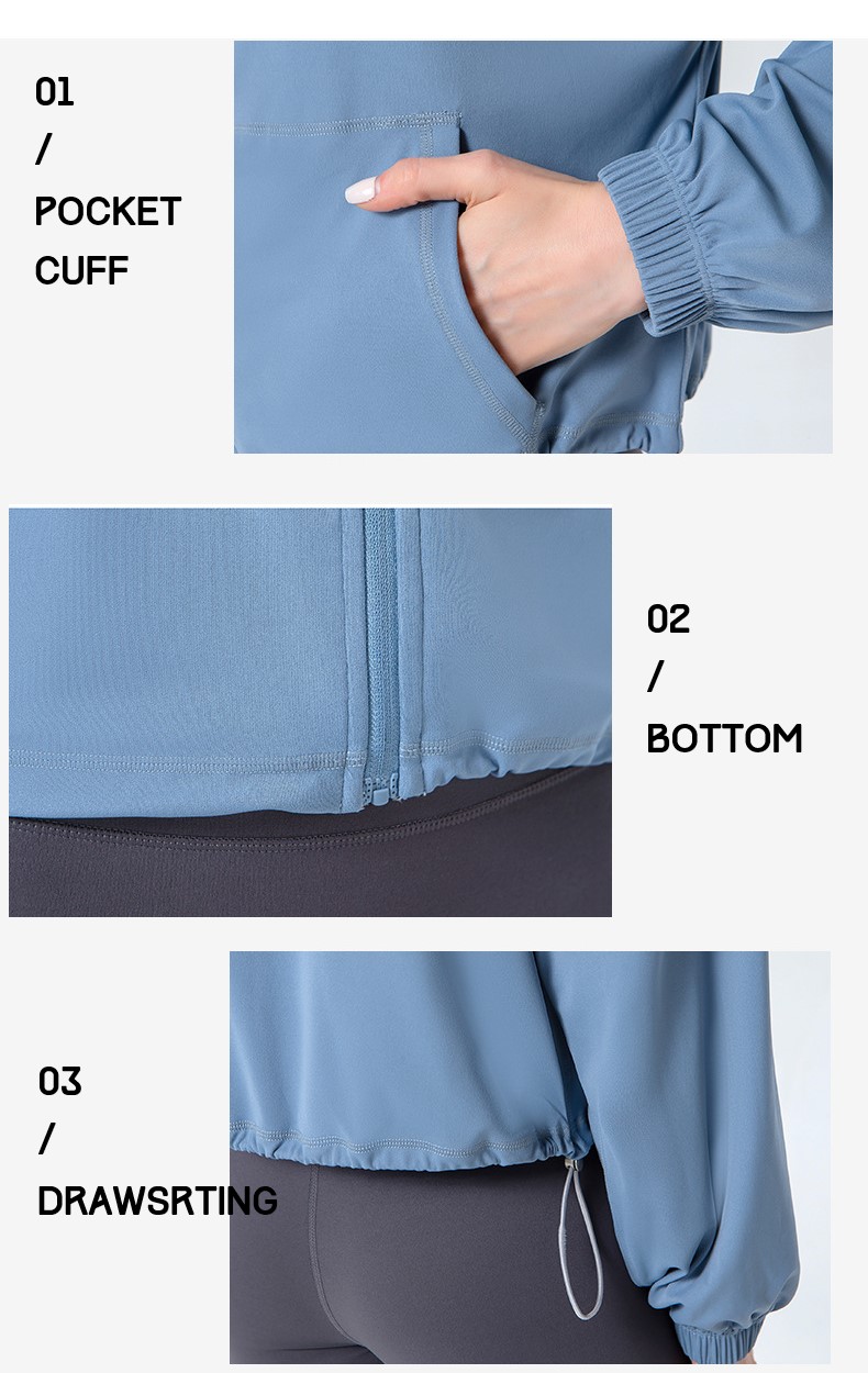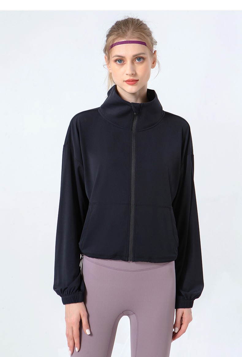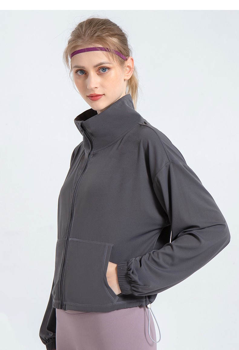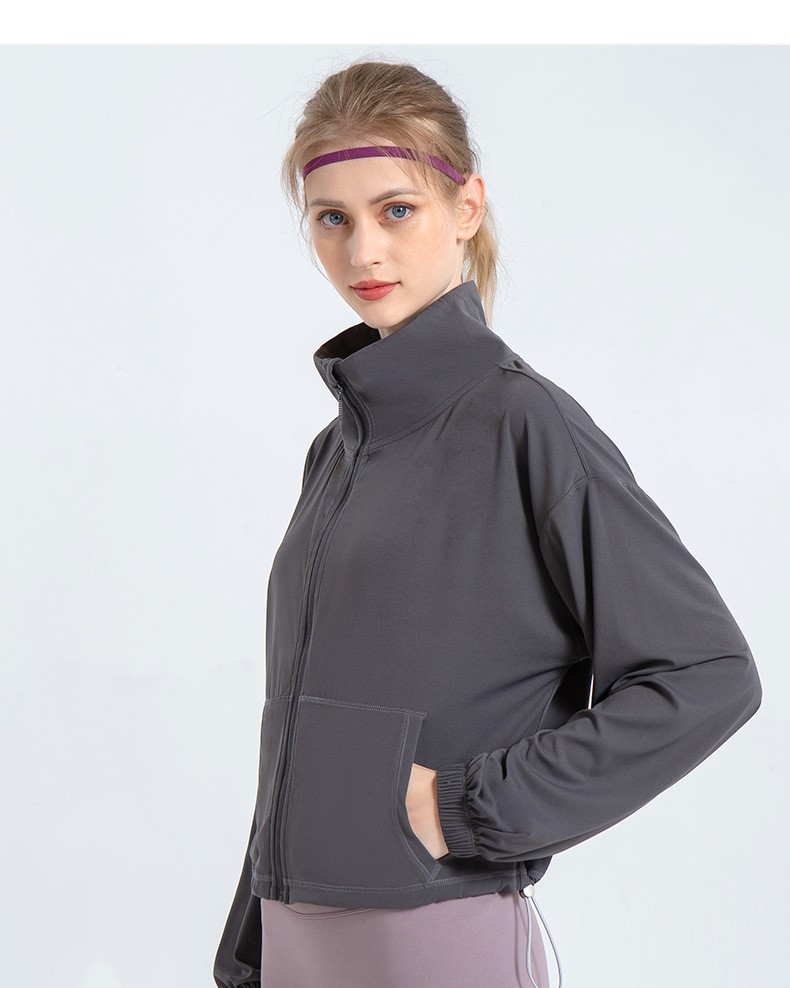 Women full zip jacket stand neck drawstring workout sweatshirts loose running fitness coat
