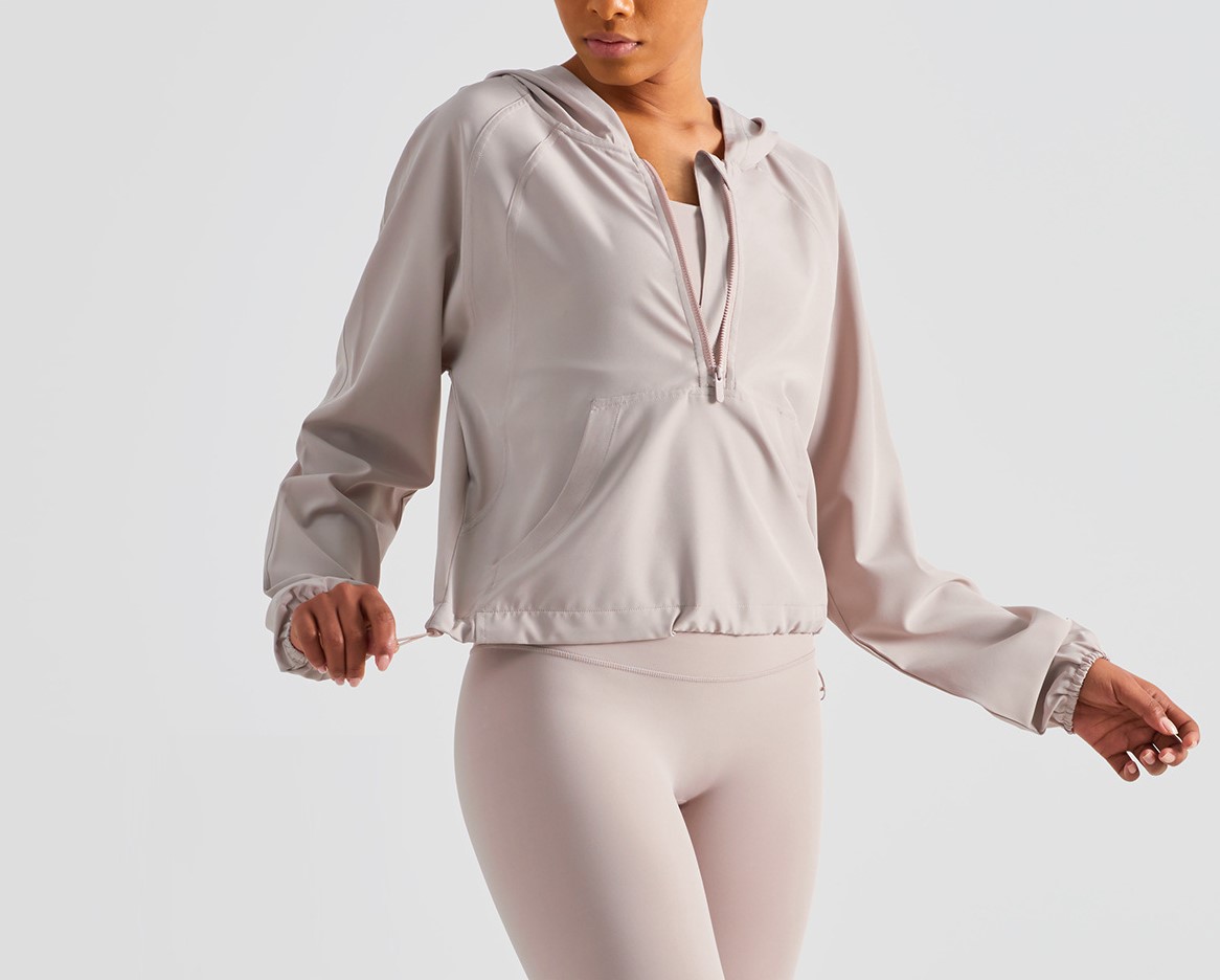 Women half zip hooded outdoor jackets lightweight quick dry breathable adjust hem loose hoodie