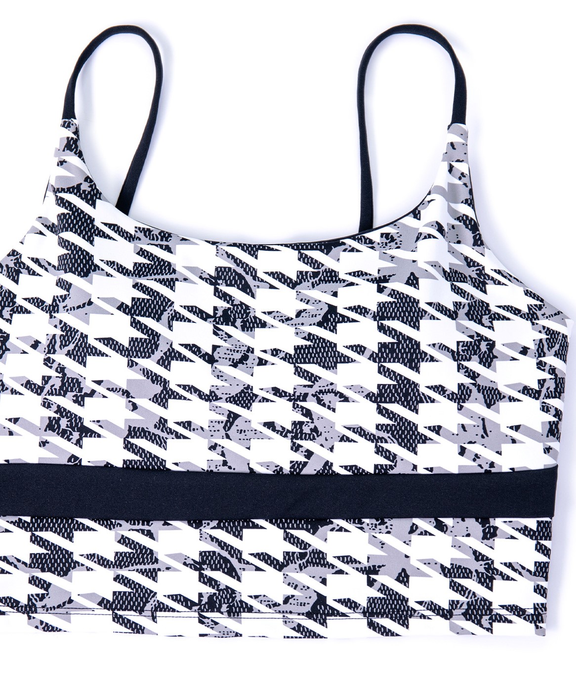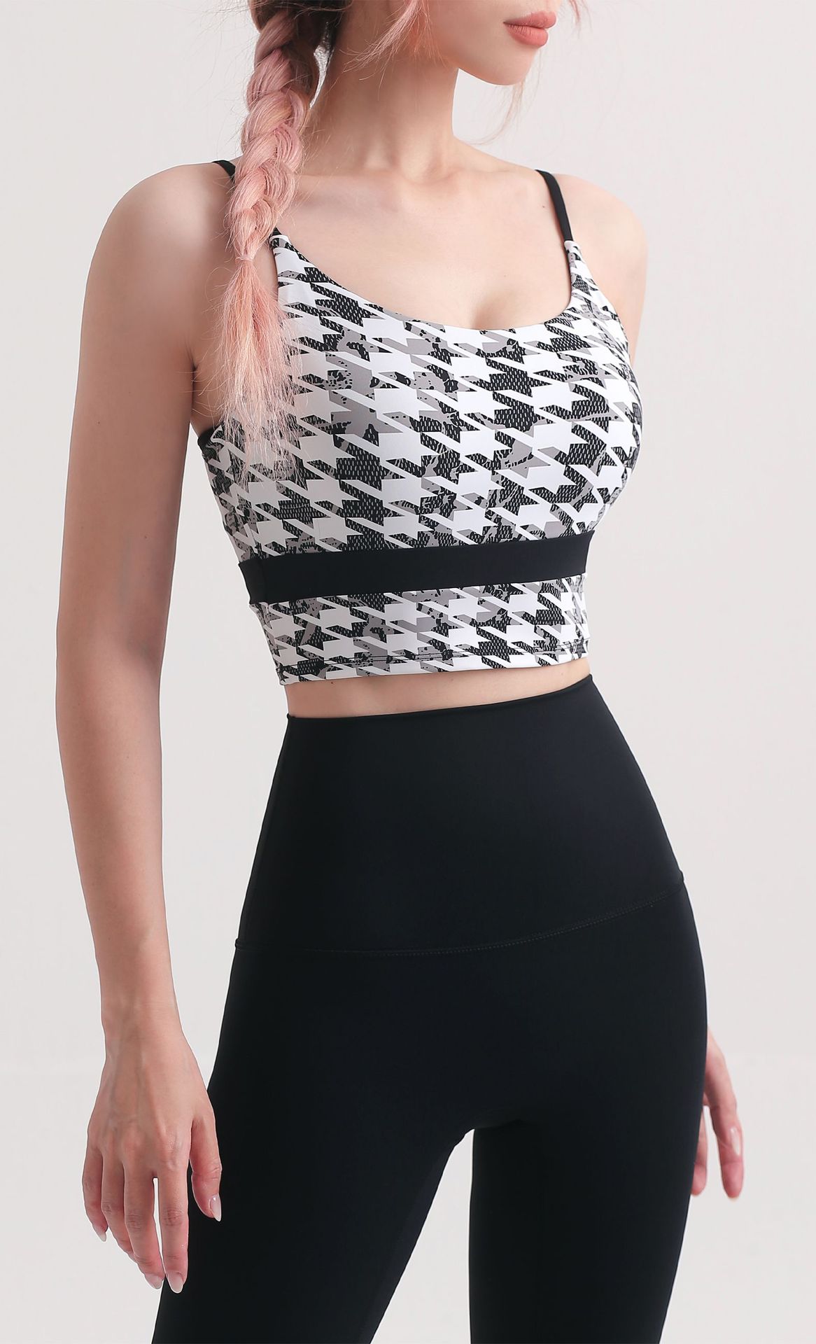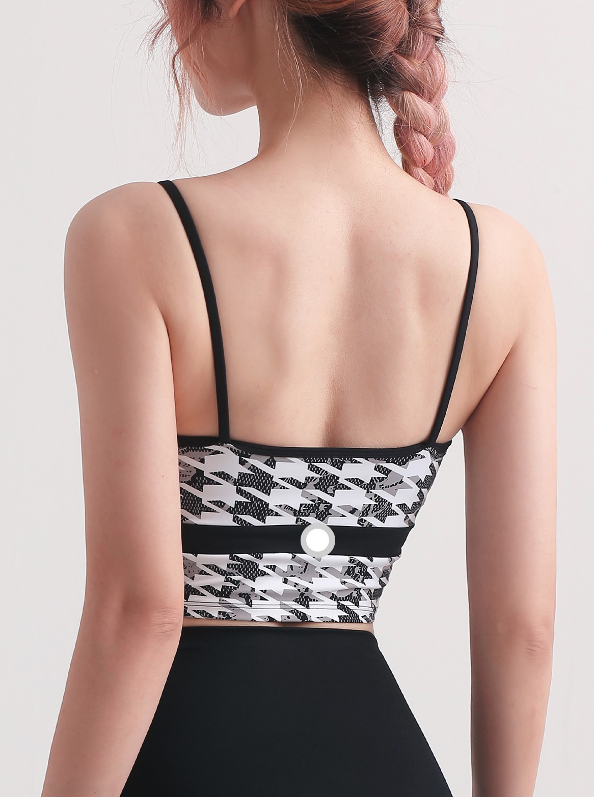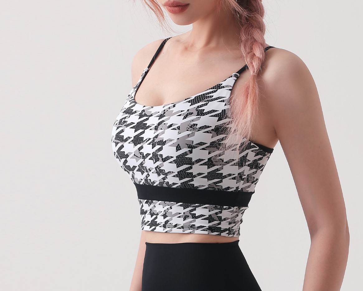 Women houndstooth printed spaghetti straps sports bra color block fitness workout tank crop tops