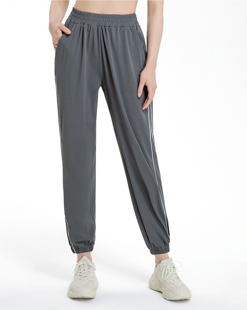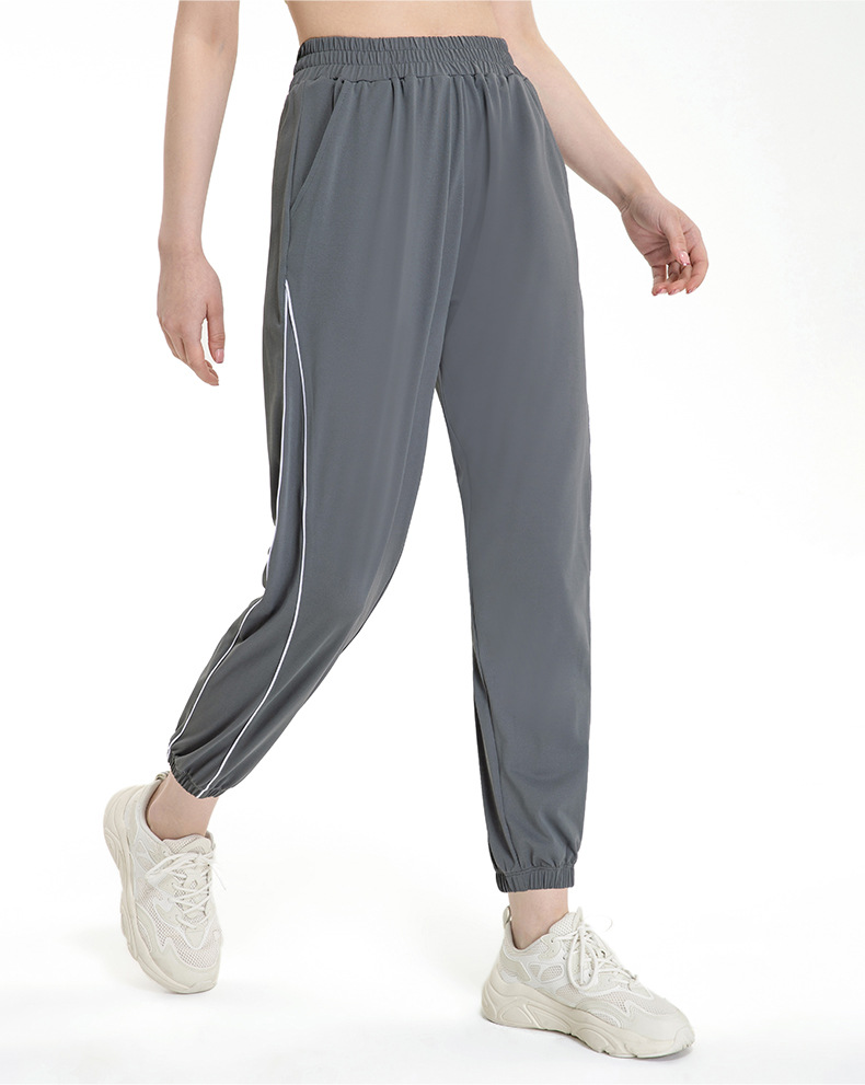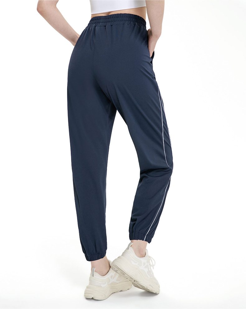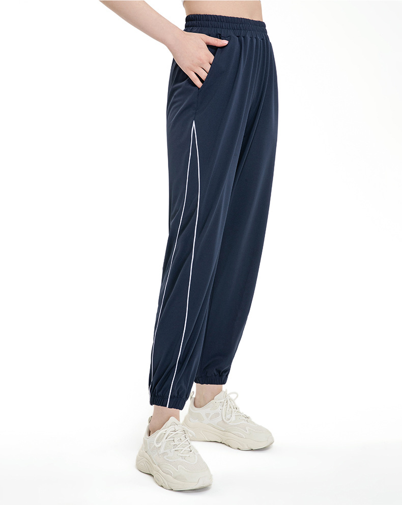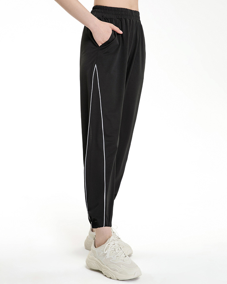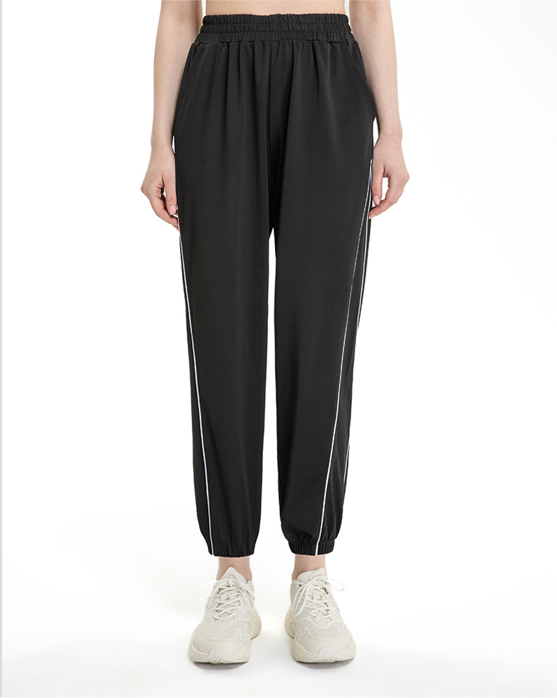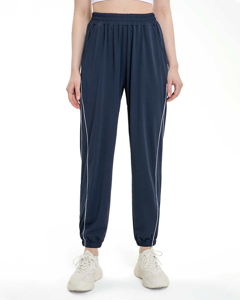 Women jogger pants colorblock piping high waisted lastic waistband loose casual running sweatpants