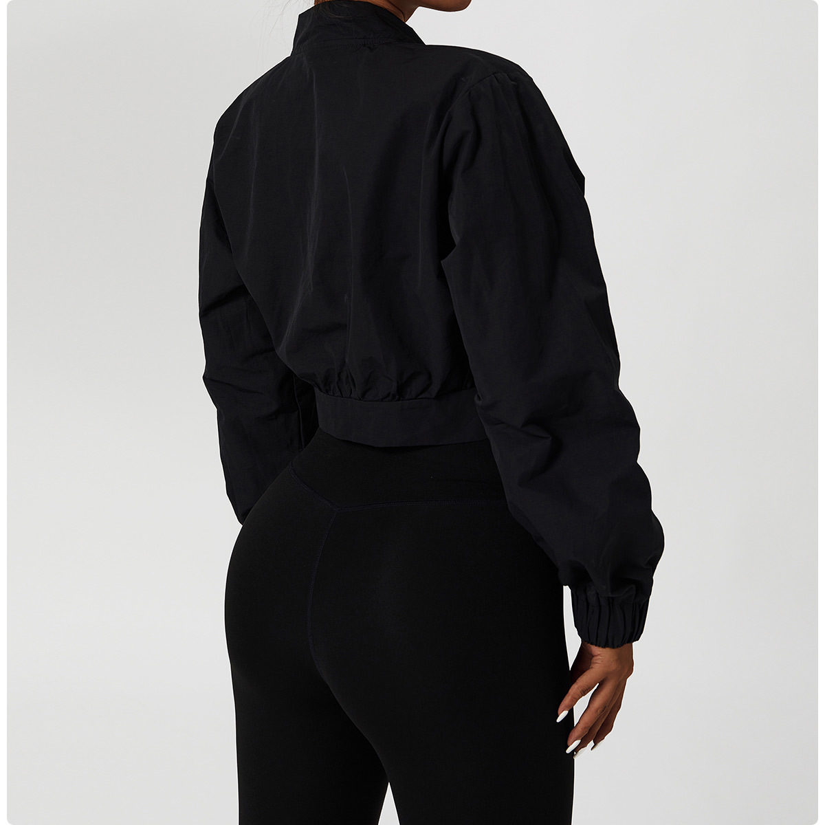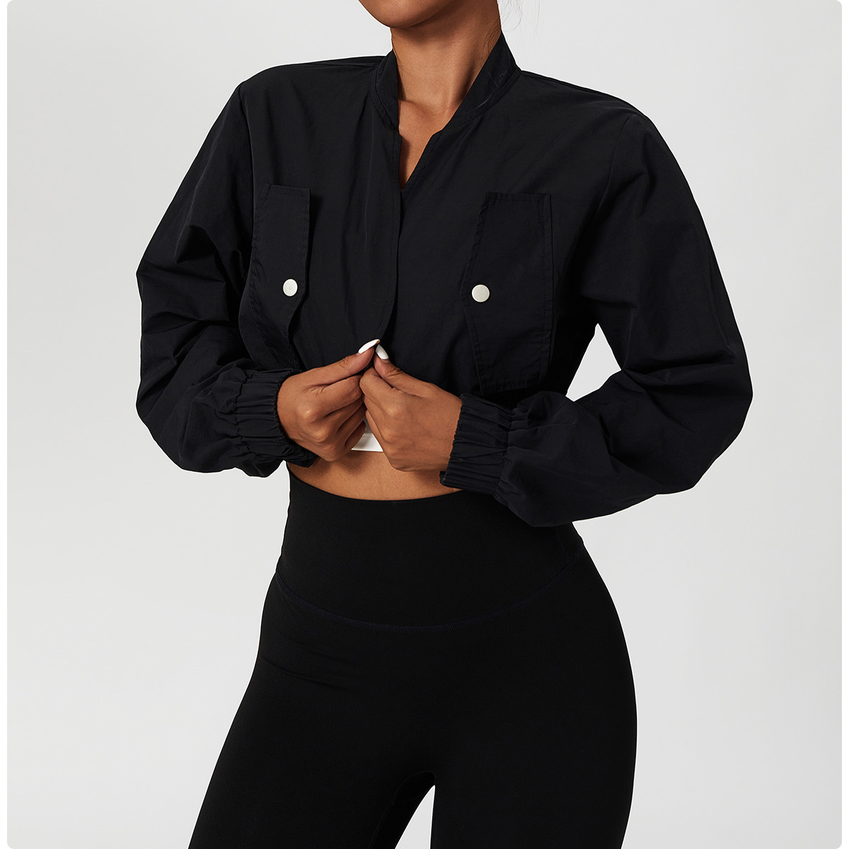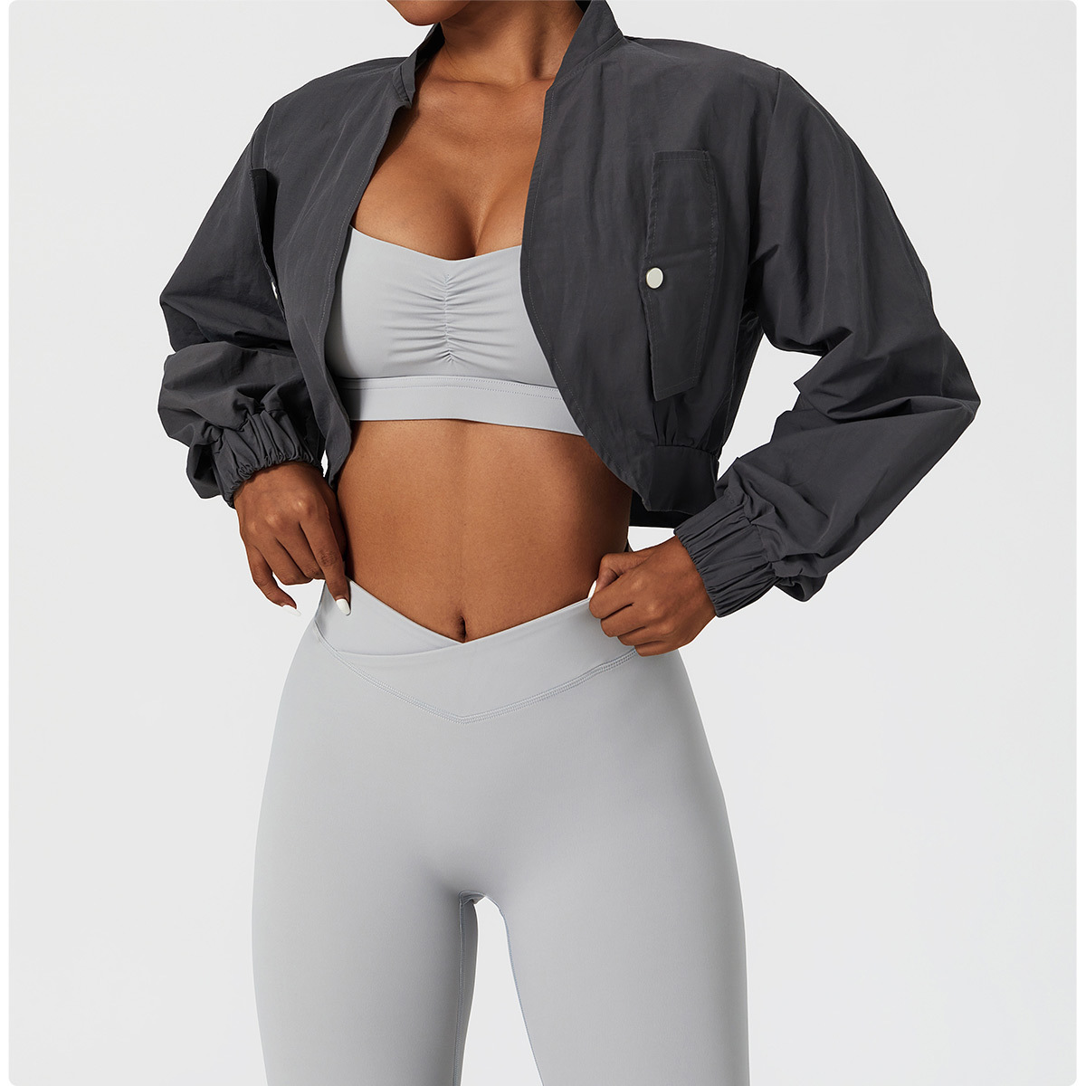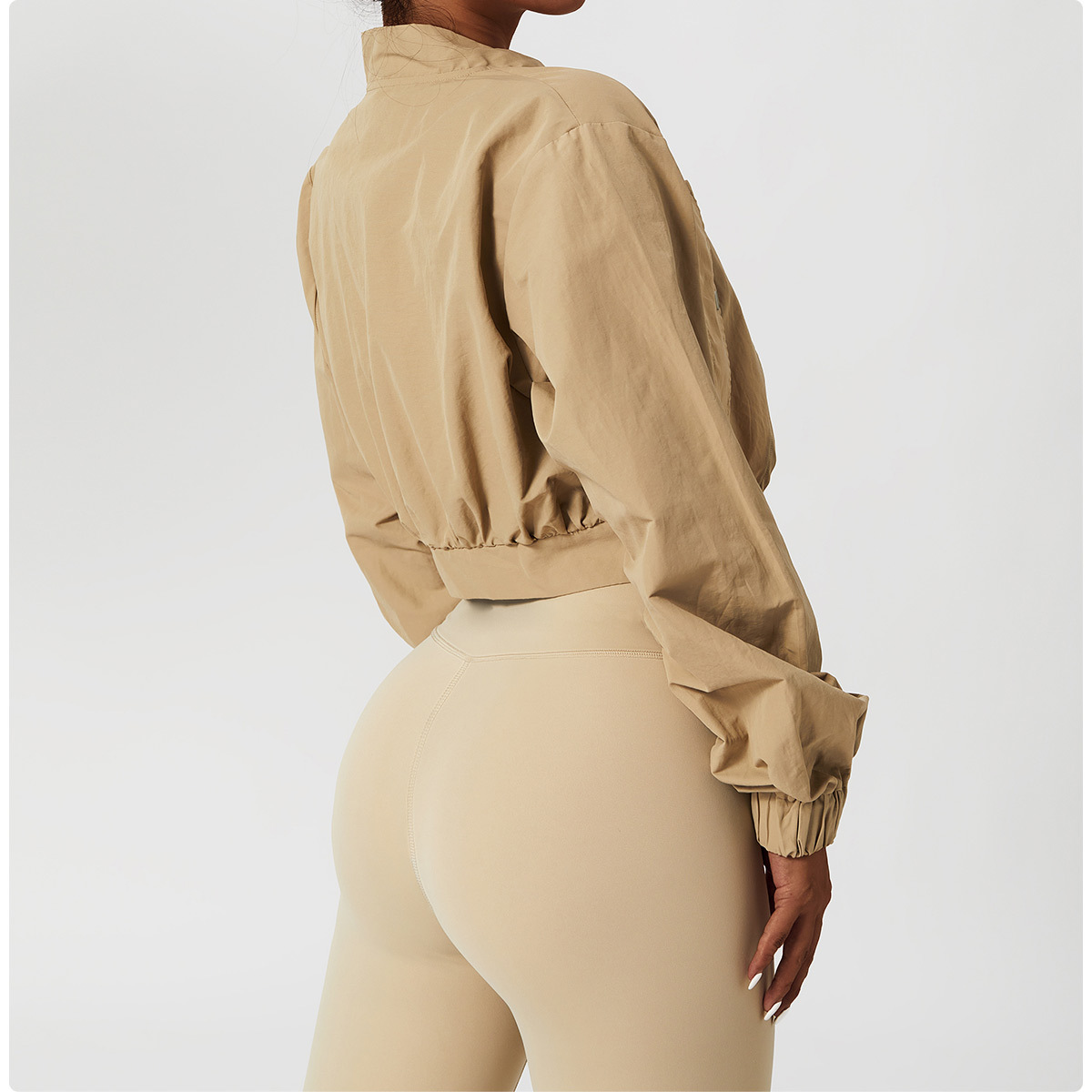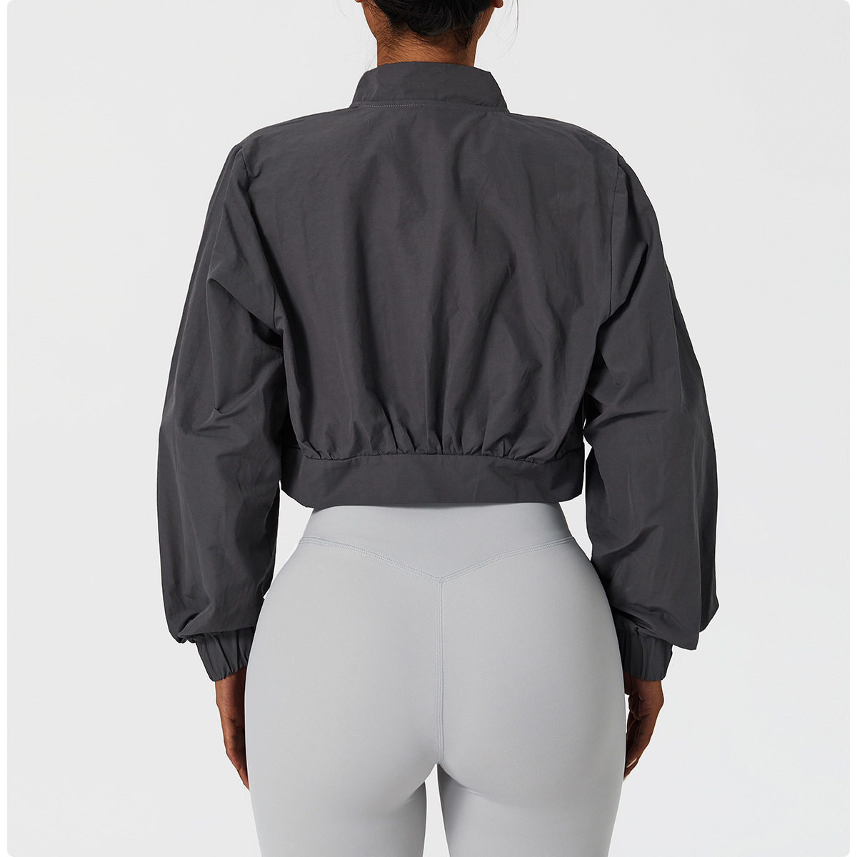 Women long sleeve quick dry sports zip coat sunscreen waistcoat stand collar jacket crop sweatshirt