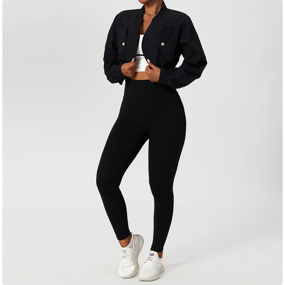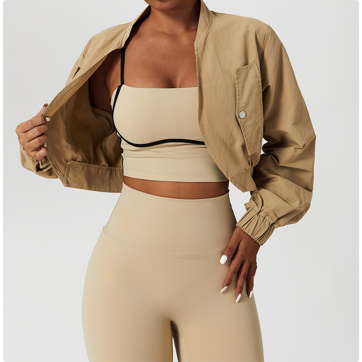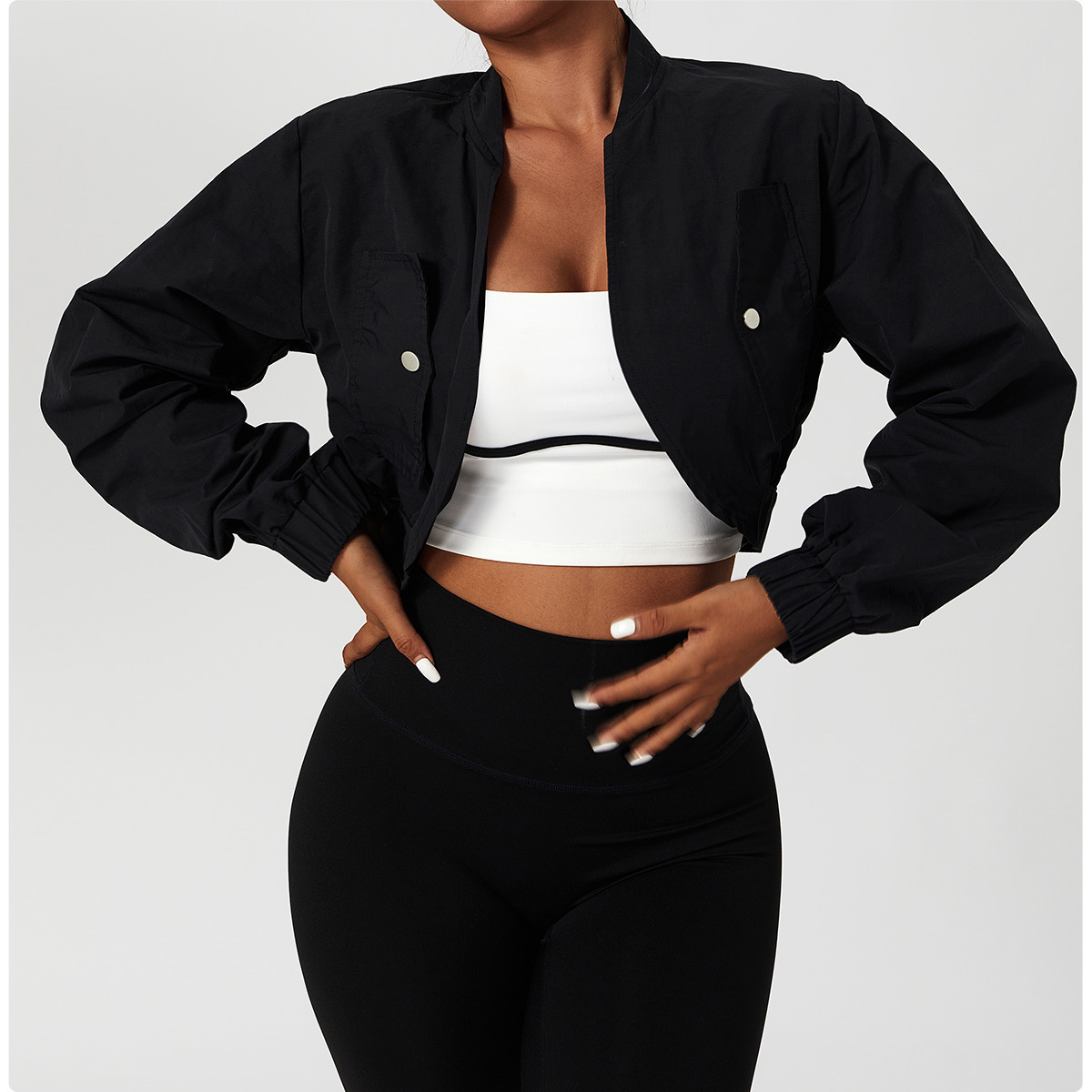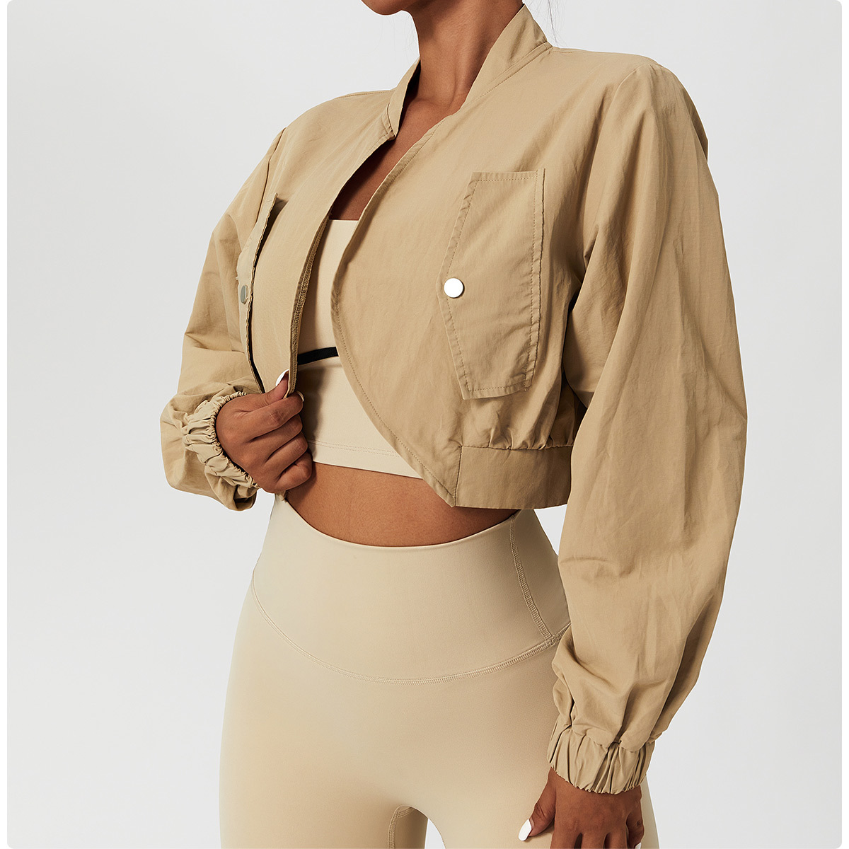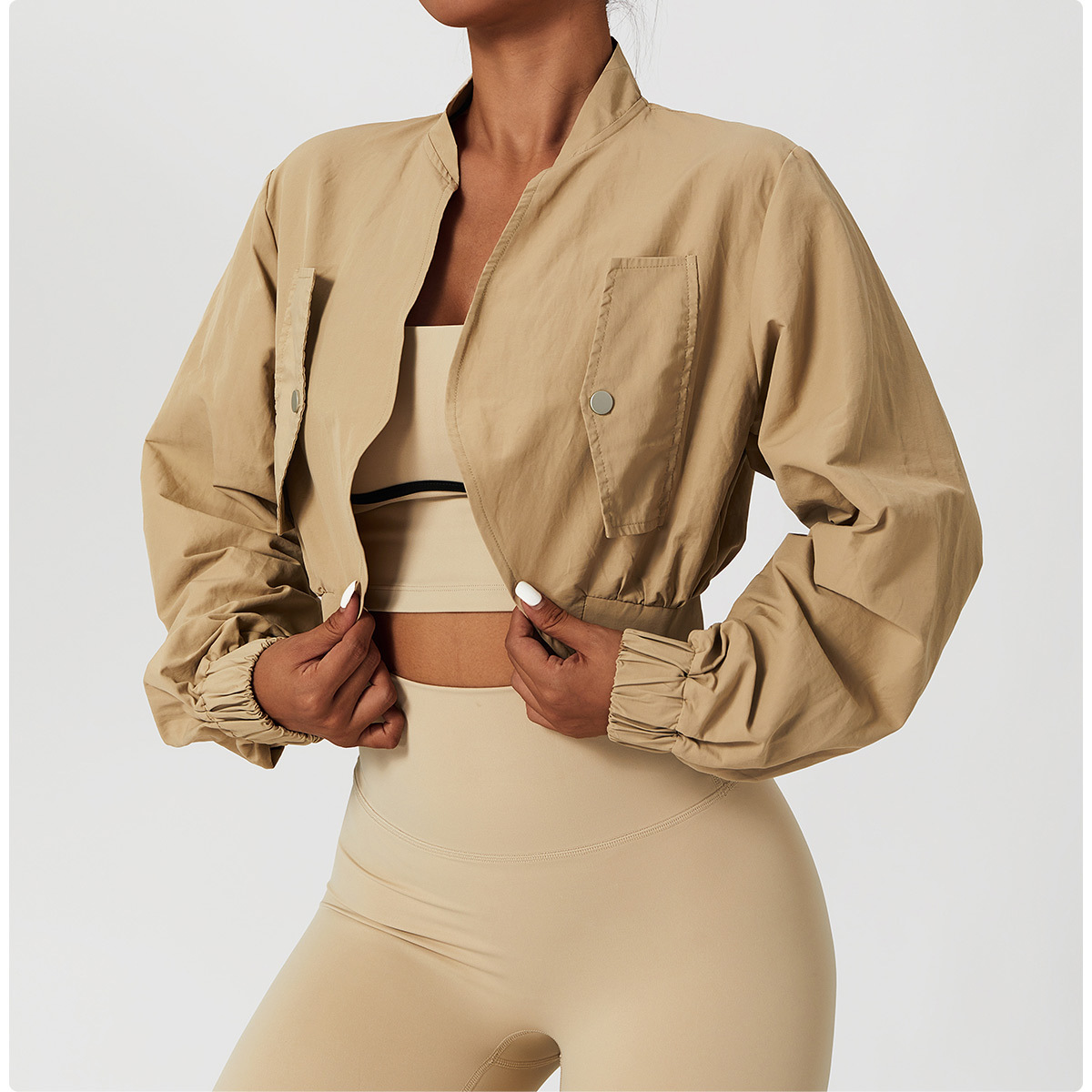 Women long sleeve quick dry sports zip coat sunscreen waistcoat stand collar jacket crop sweatshirt