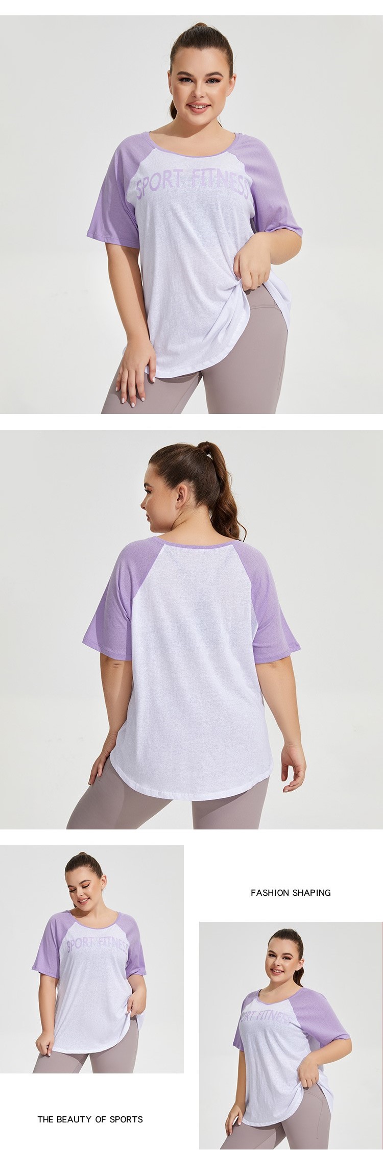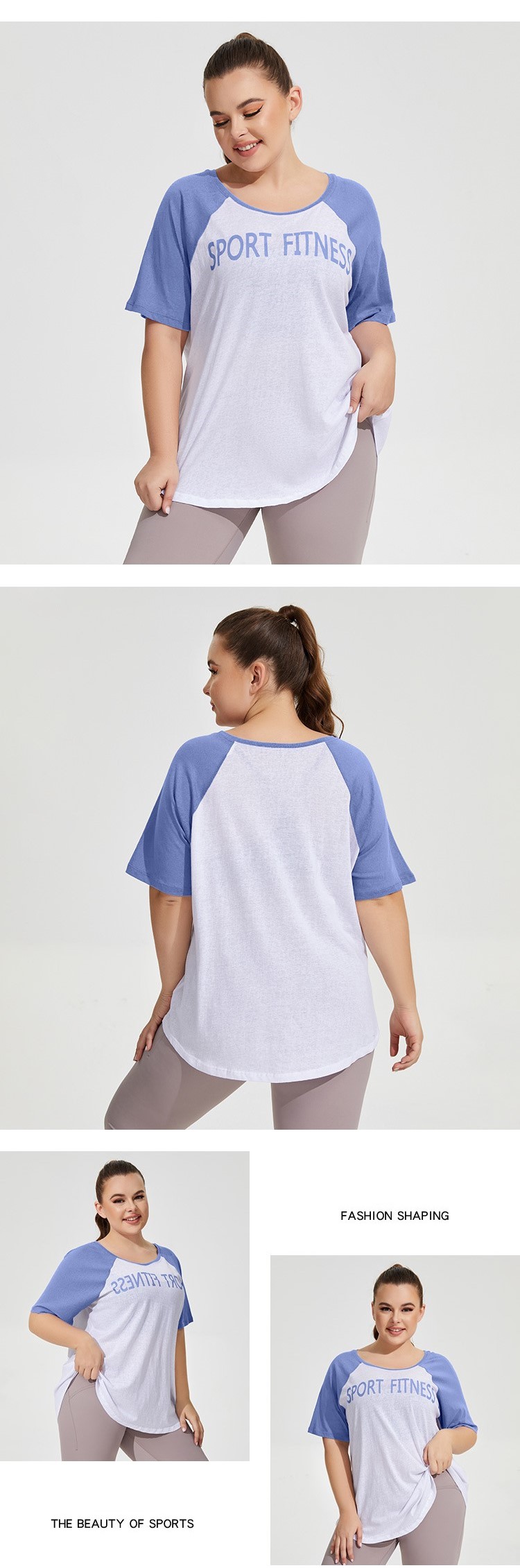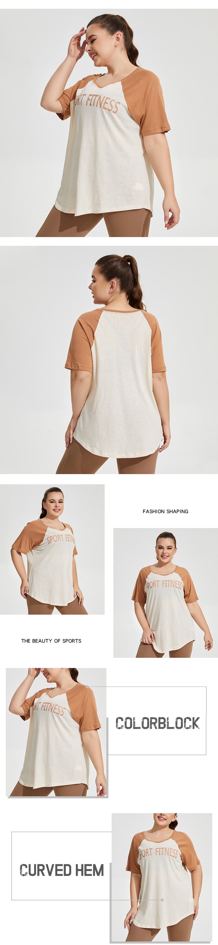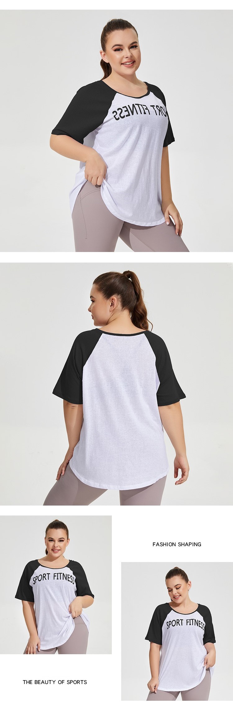 Women loose breathable eco-friendly yoga short sleeve top oversized colorblock fitness tshirt