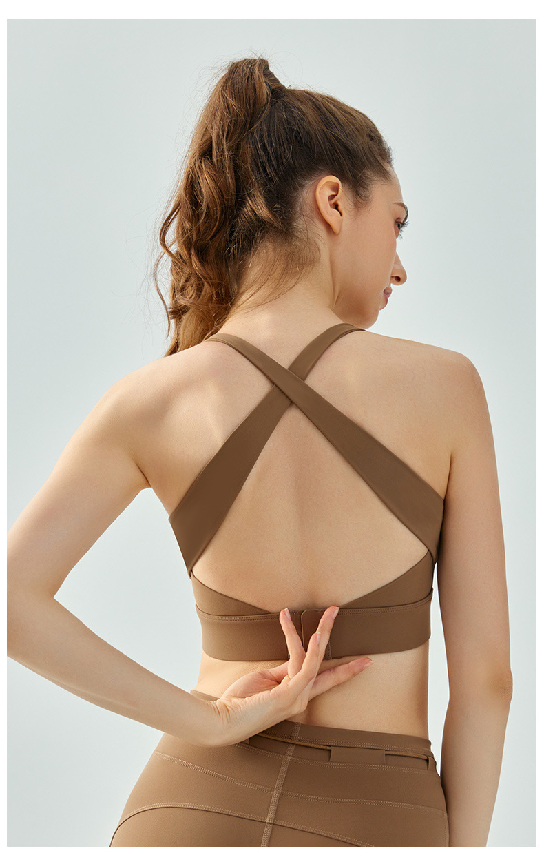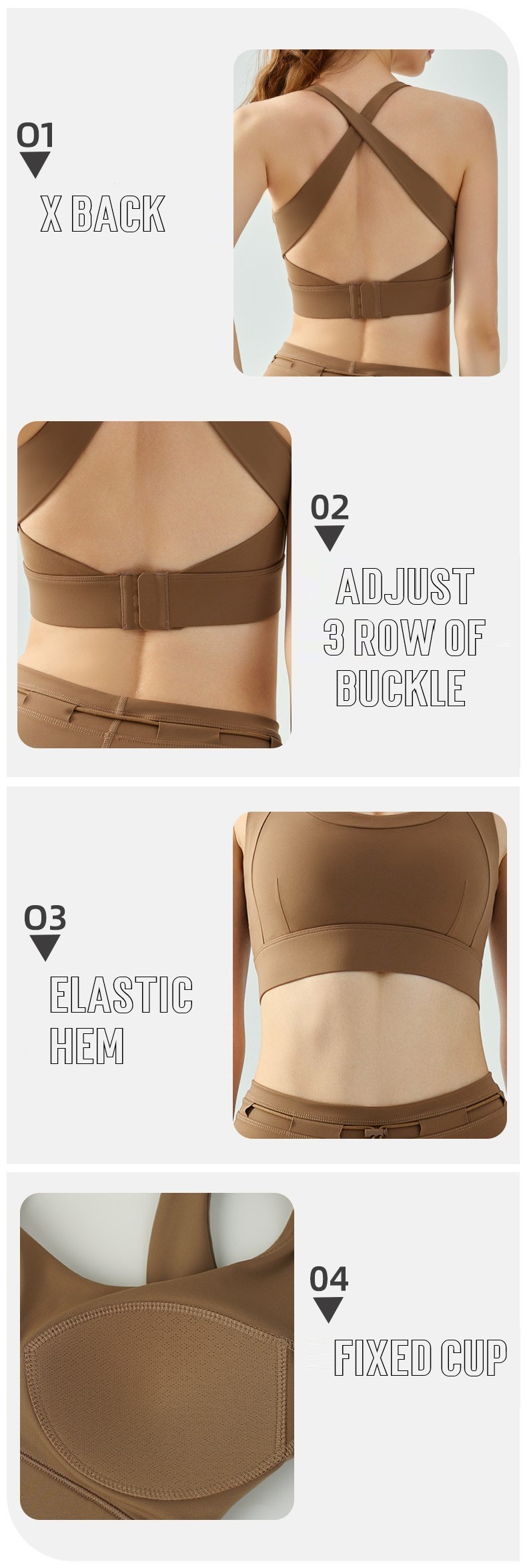 Women loose breathable sports bra adjustable 3 row of buckle x back fixed cup fitness gym top