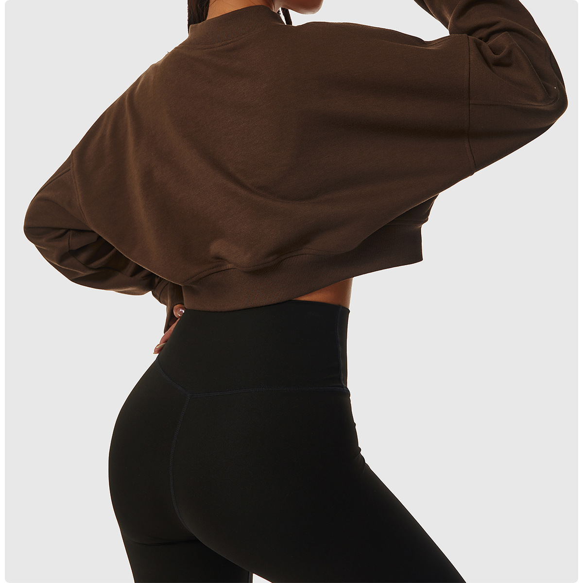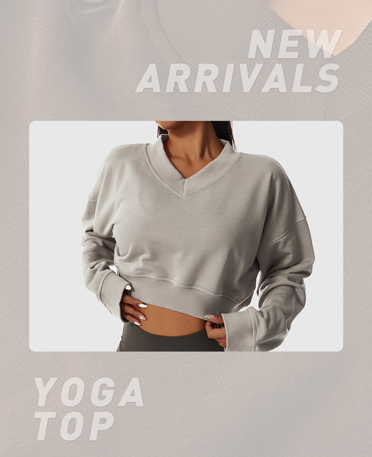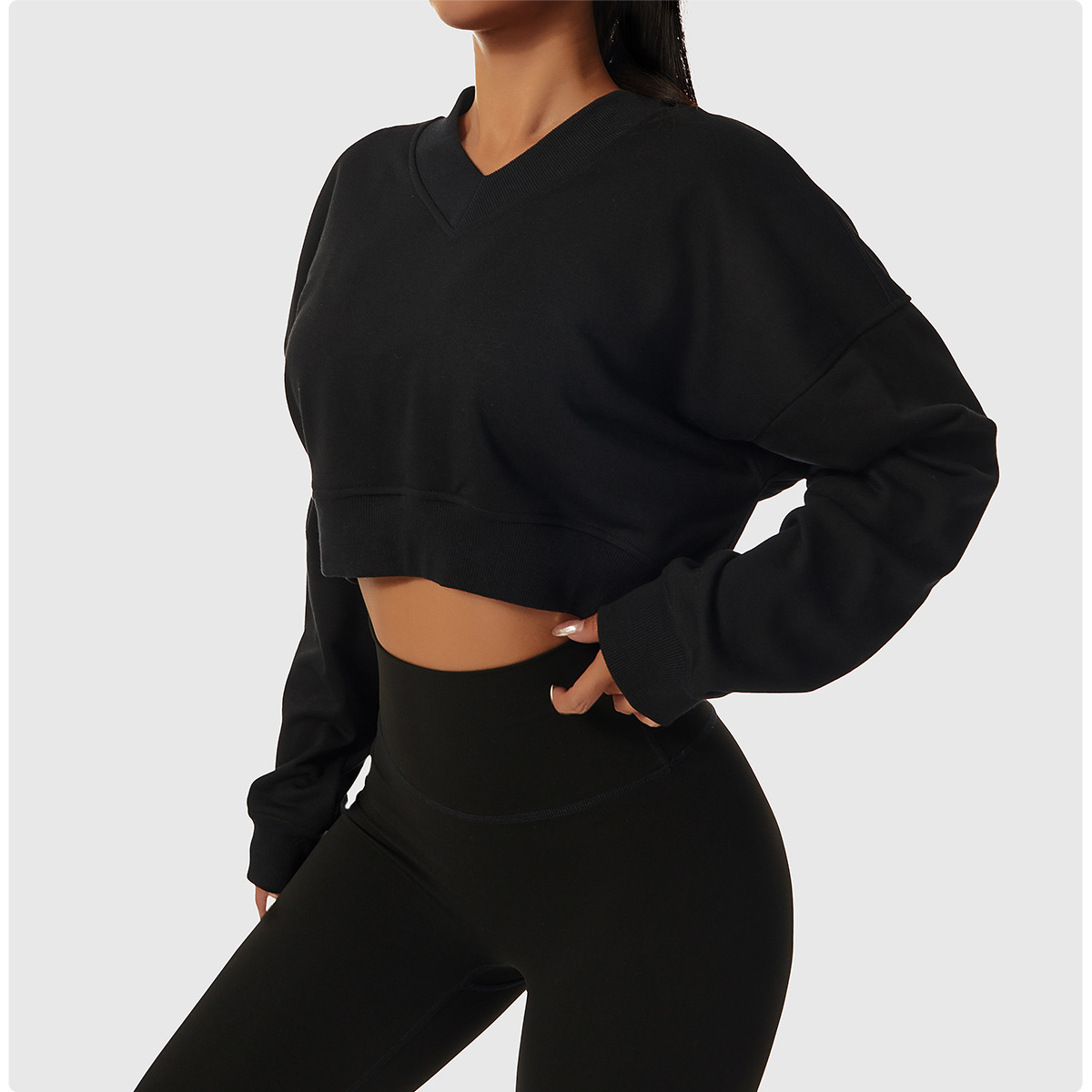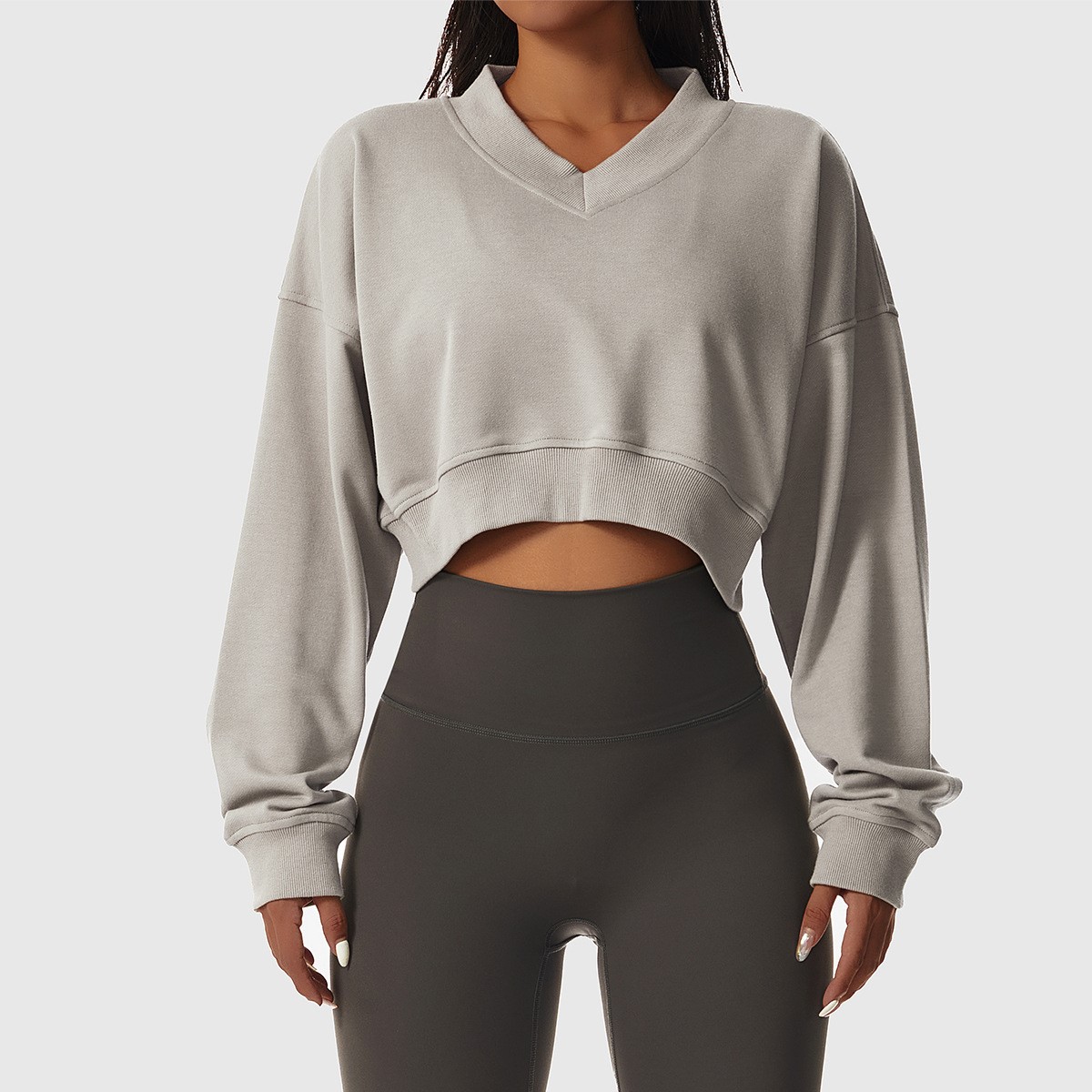 Women loose long sleeve sports sweatshirts outdoor fitness v neck pullover casual fashion crop top